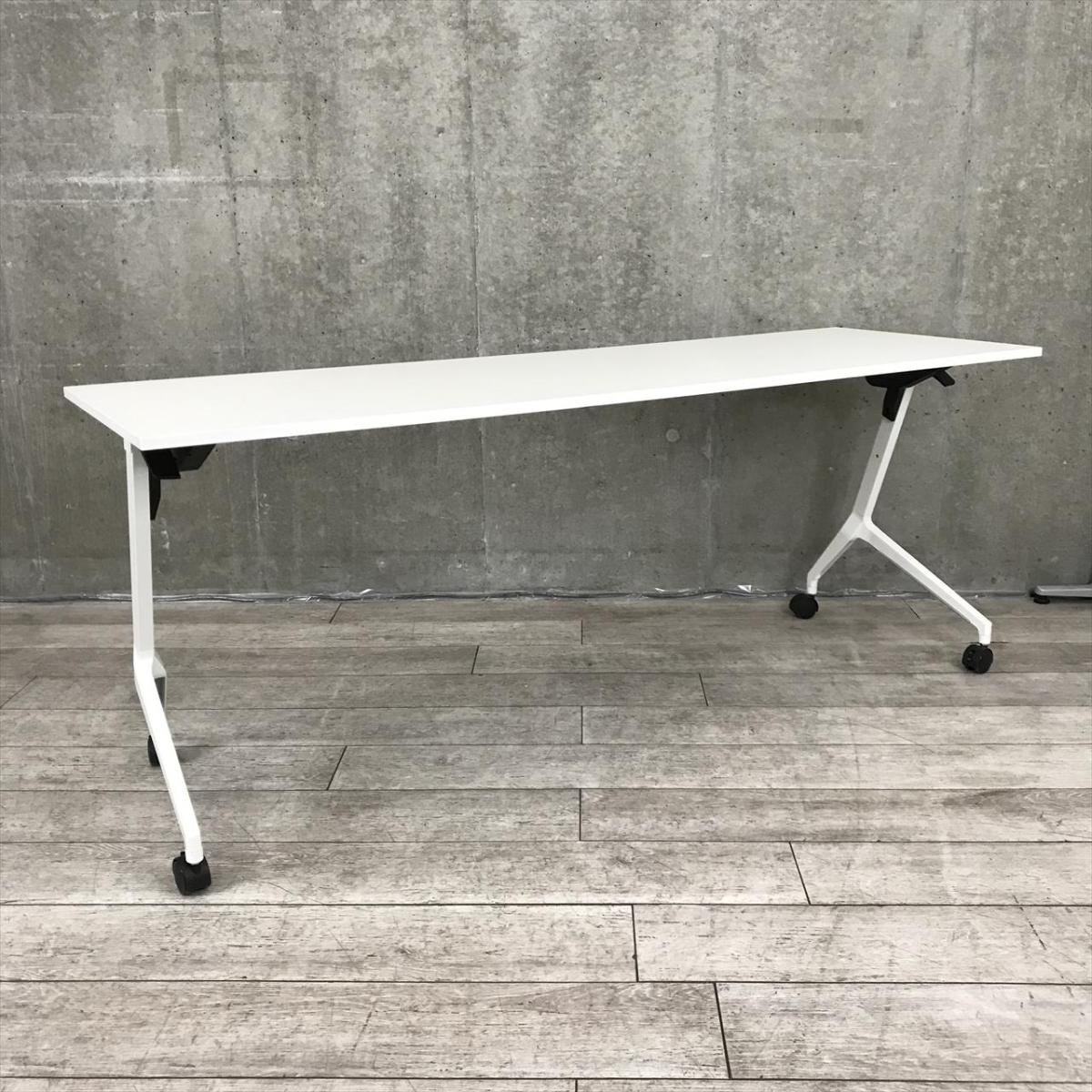 【会議室の作成や増設に!平行スタックで省スペース!】■イトーキ(ITOKI) スレントシリーズ サイドスタックテーブル 折り畳み W1800㎜ ■幕板なし ■キャスター付 ■ホワイト 【会議やセミナーで大活躍!】在庫がある店舗一覧