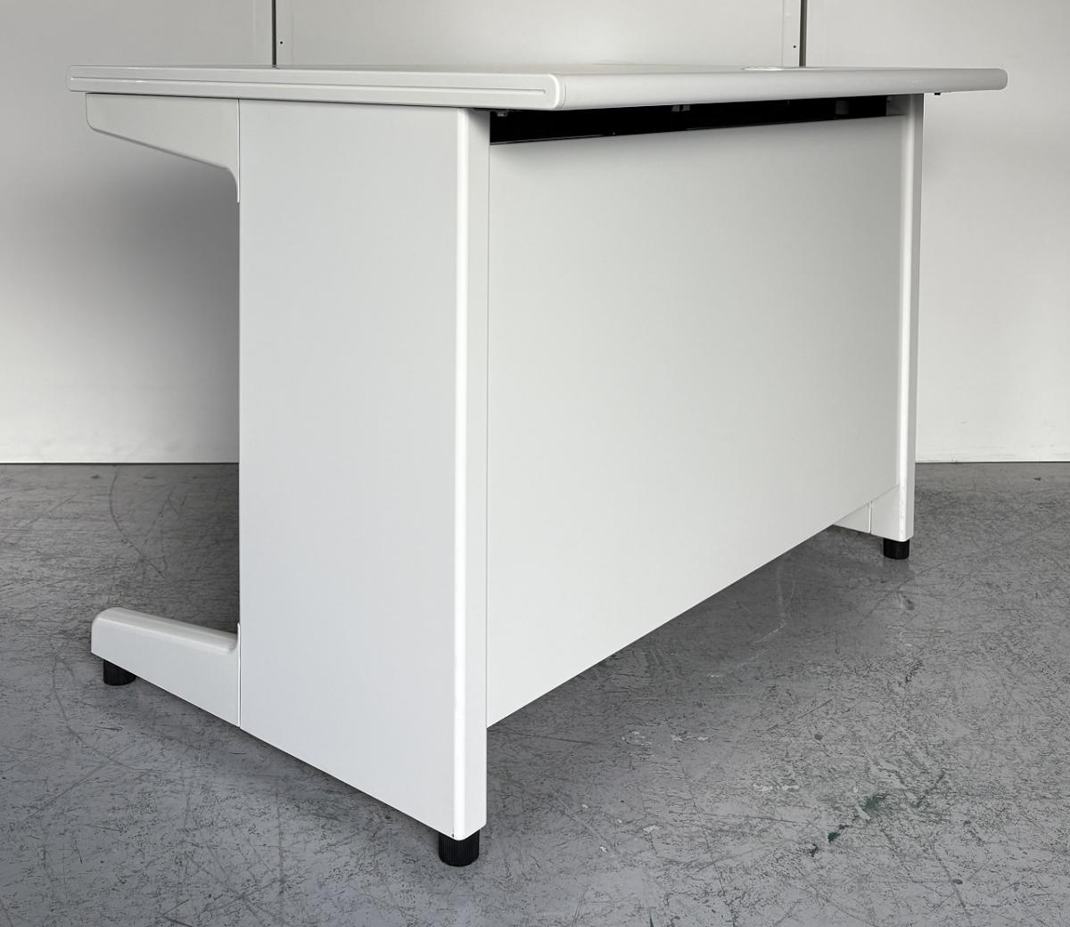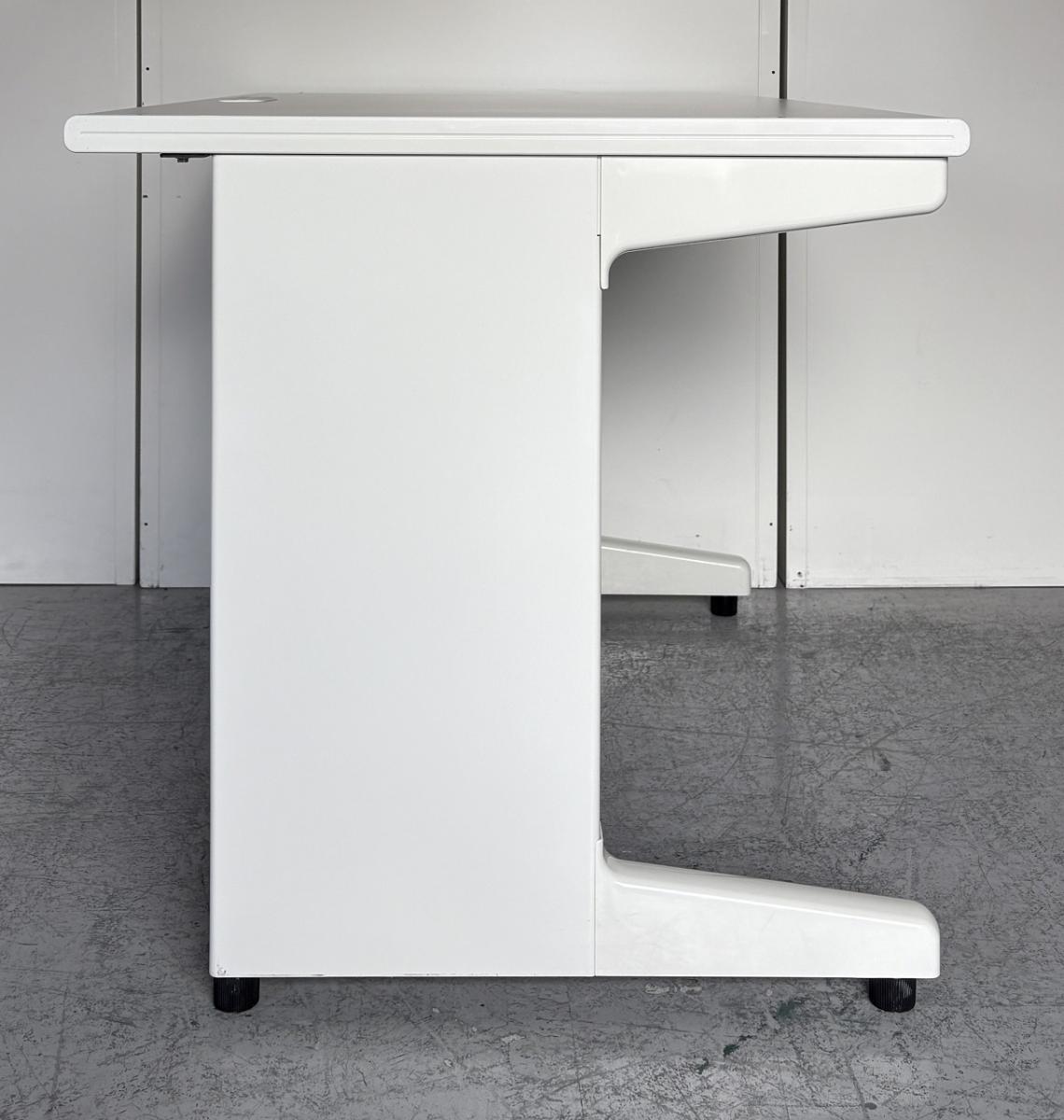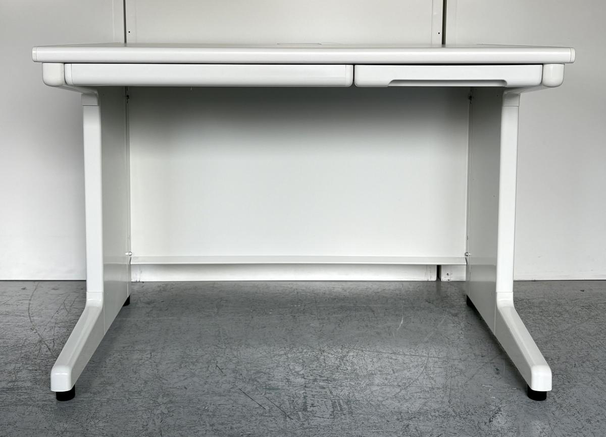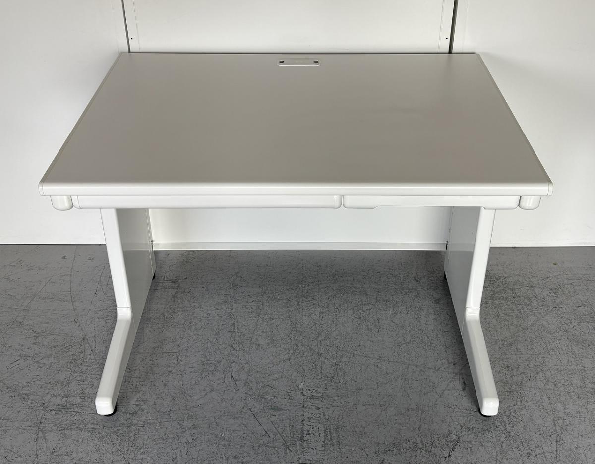 【定価約5万円】【今や希少品?!W1000mmのちょうどよいコンパクトサイズ!】■プラス(PLUS)製 LAシリーズ 平机 引き出し付 W1000㎜ ■ホワイト ■配線口 ※日焼けあり