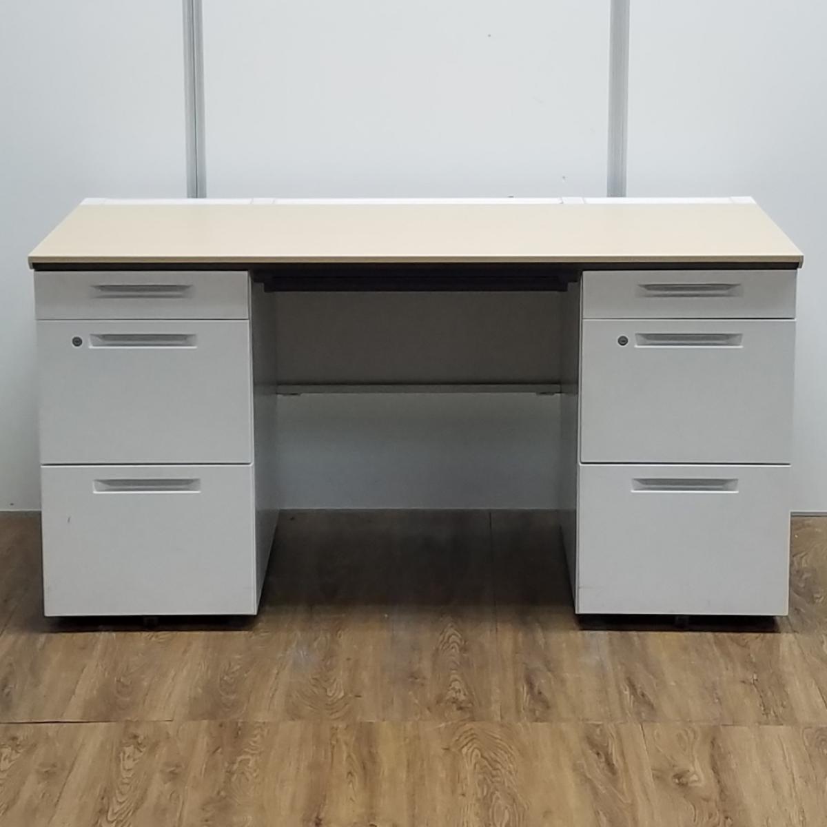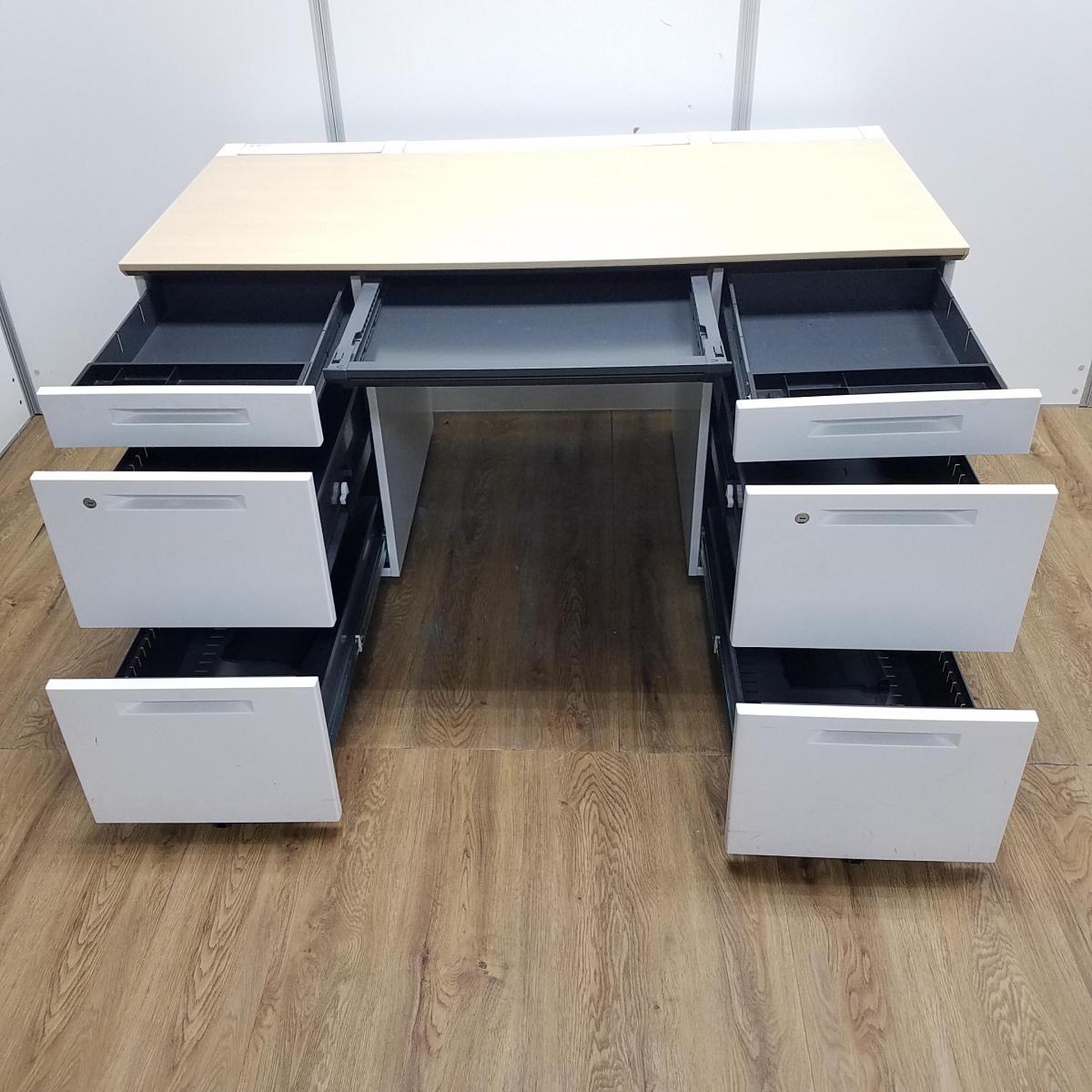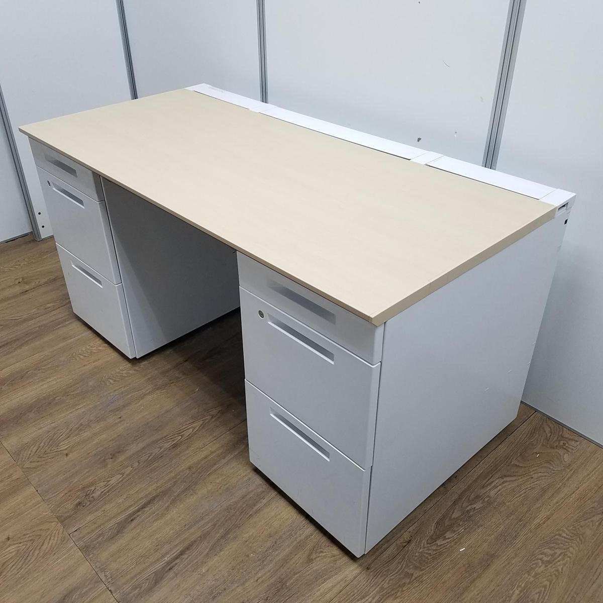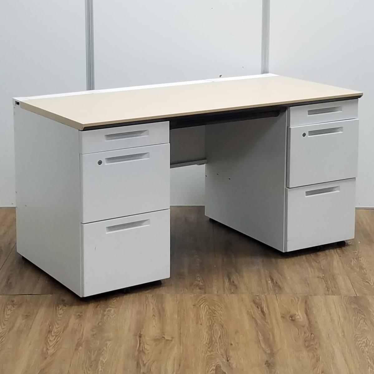 【商品入替のため、残り1台限り】コクヨ製 iSシリーズ ナチュラル天板 W1400サイズ 上長席におすすめ! 収納量抜群の両袖机! ワークスペース広々! W1400サイズのナチュラル天板デスク W1400両袖机!!- 京都東寺店