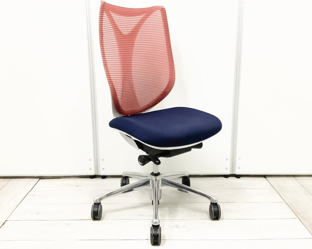 【人間工学から生まれた最先端のワーキングチェア!】■オカムラ サブリナチェア 肘掛け無 背:レッド / 座:ダークブルー ■流れるような美しいフォルム!姿勢に心地よくフィット!【K10】