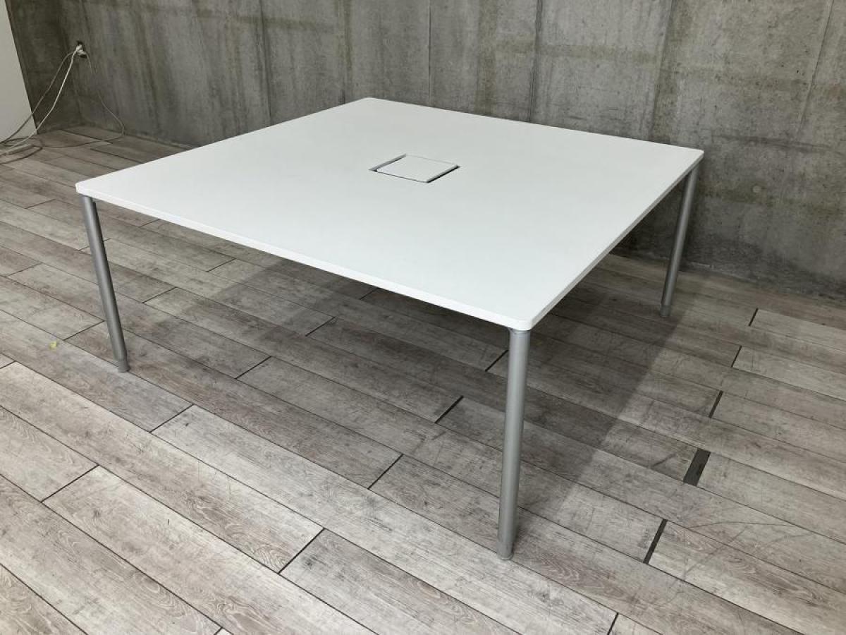 【スタイリッシュなミーティングテーブル!ワークデスクとしても使用可能!】 ■オカムラ製 角テーブル ■W1600mm ■配線口 ■ホワイト- 名古屋本店