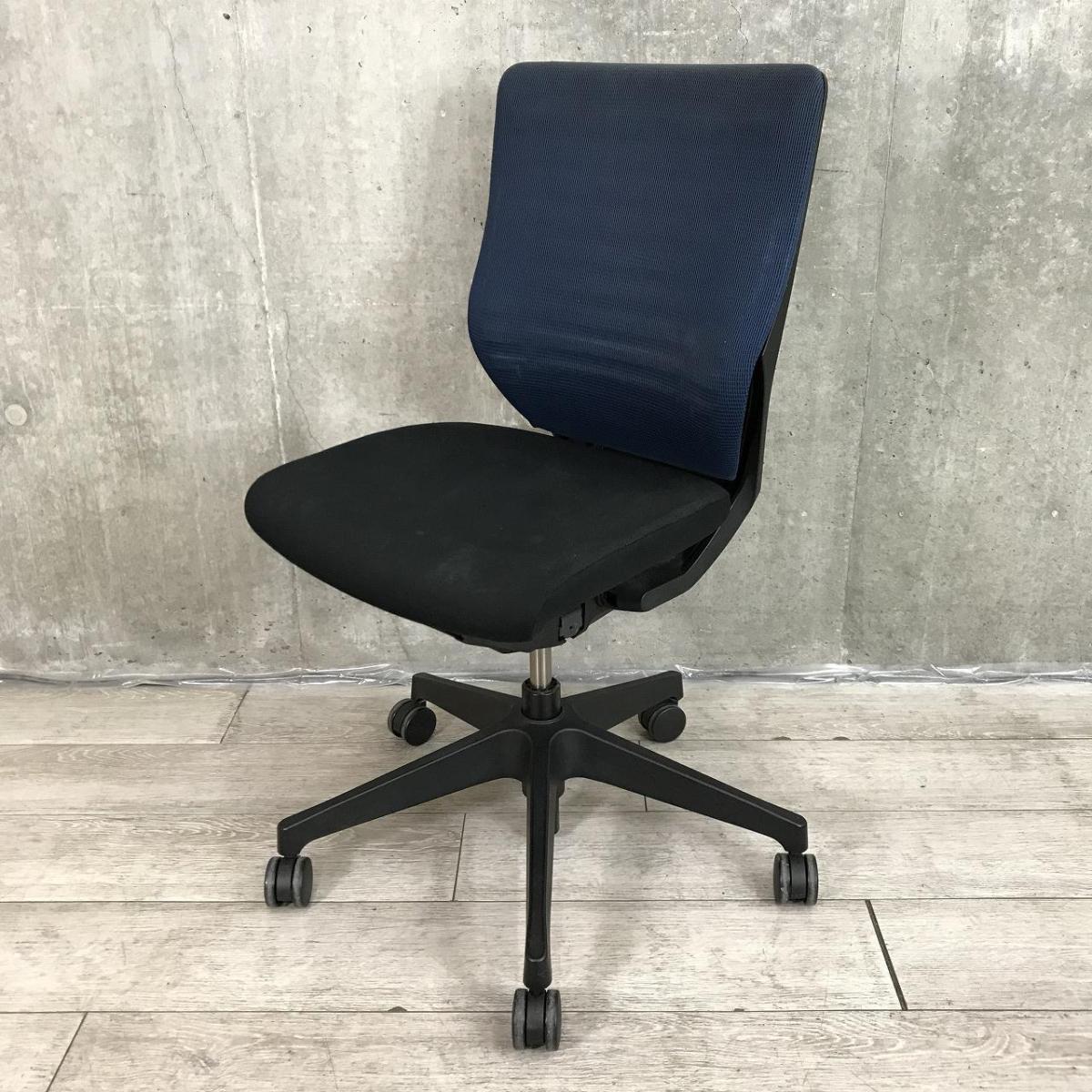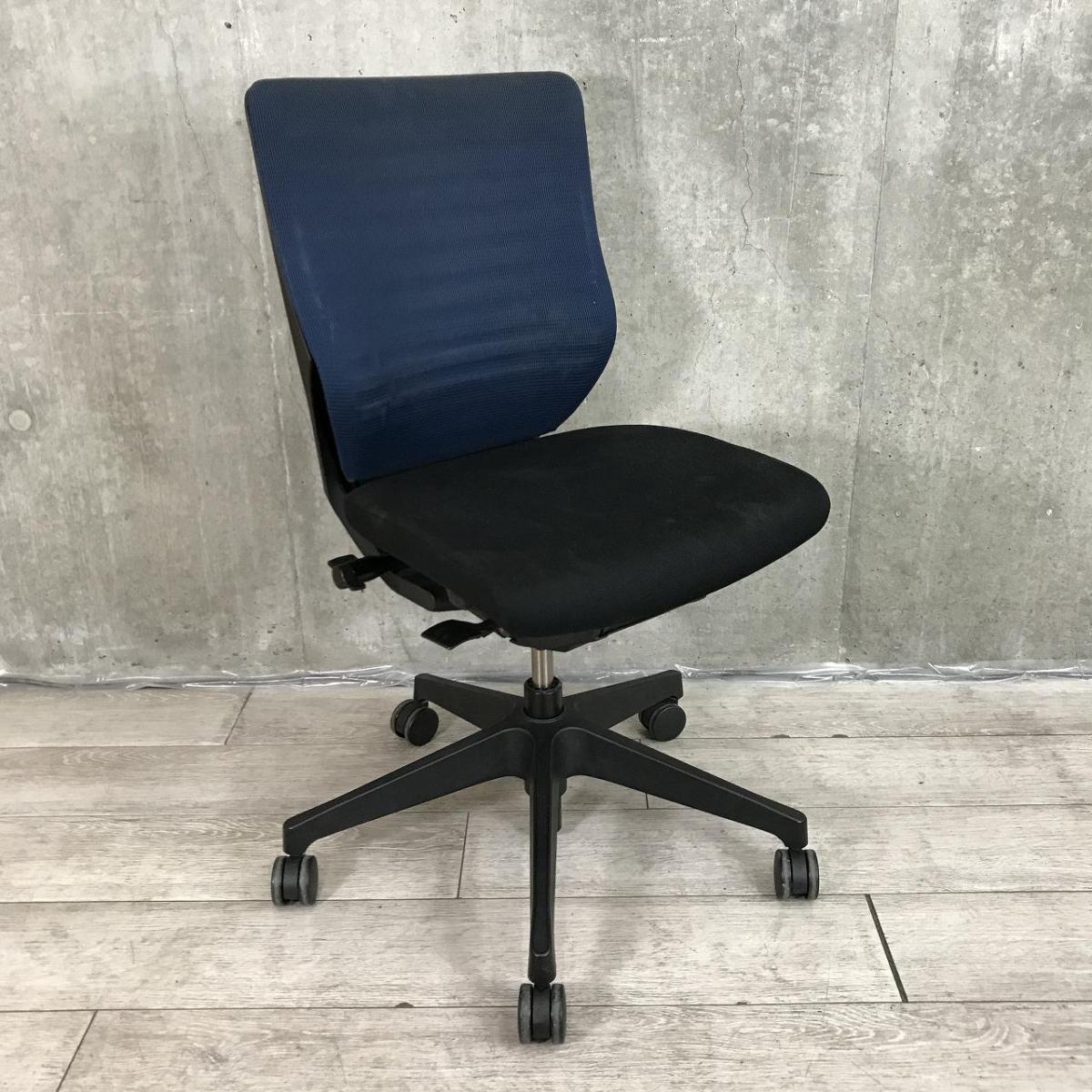 姿勢の変化をサポート!操作レスで体格にマッチする定番チェア ■イトーキ/エピオス(epios)/ネイビーブルー 肘無し ローバック ■背面クロス