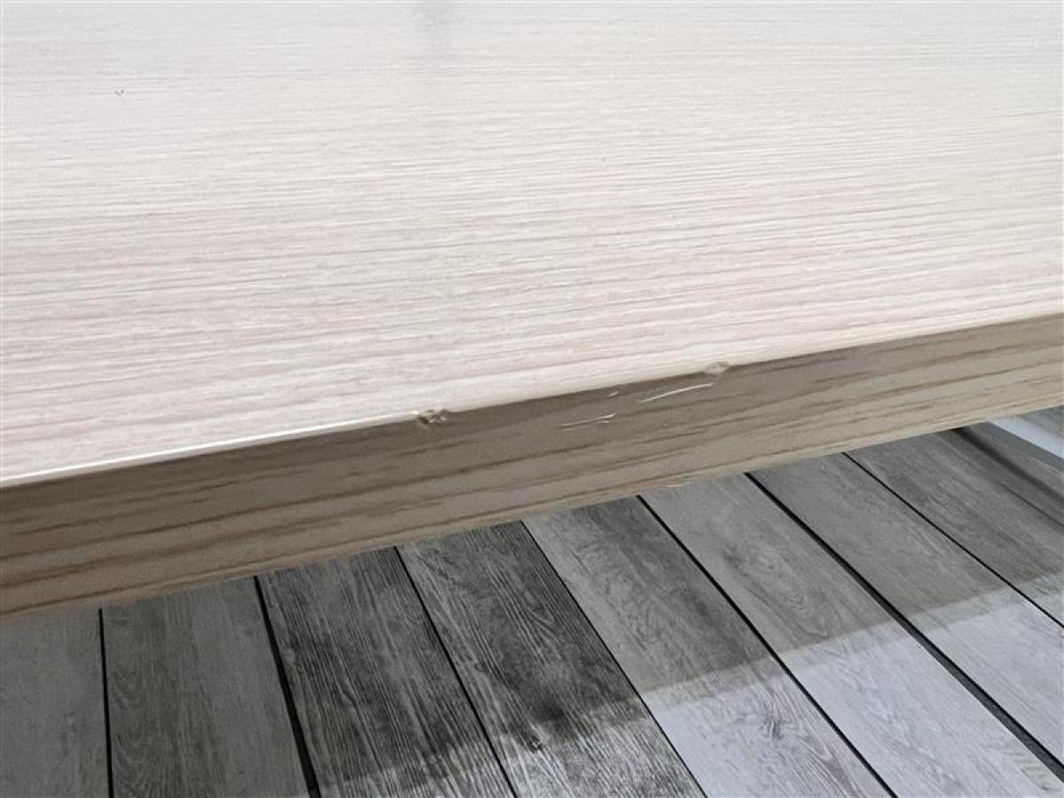 - あり黄ばみ・変色が広い範囲にうっすらある、または濃い黄ばみ・変色が一部ある。(例、天板、幕板、棚板、サイド部分、脚部等にある。)