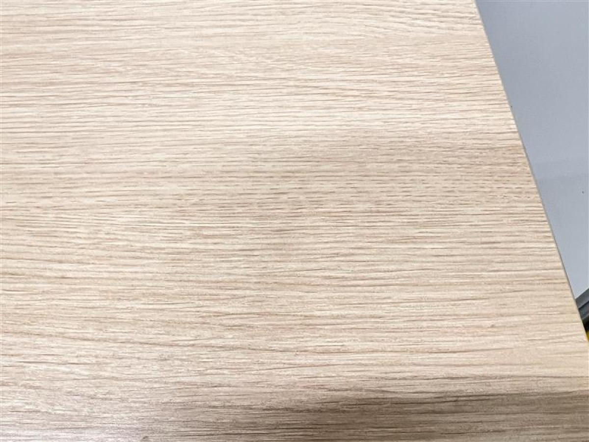 明るいナチュラル天板にホワイト脚は