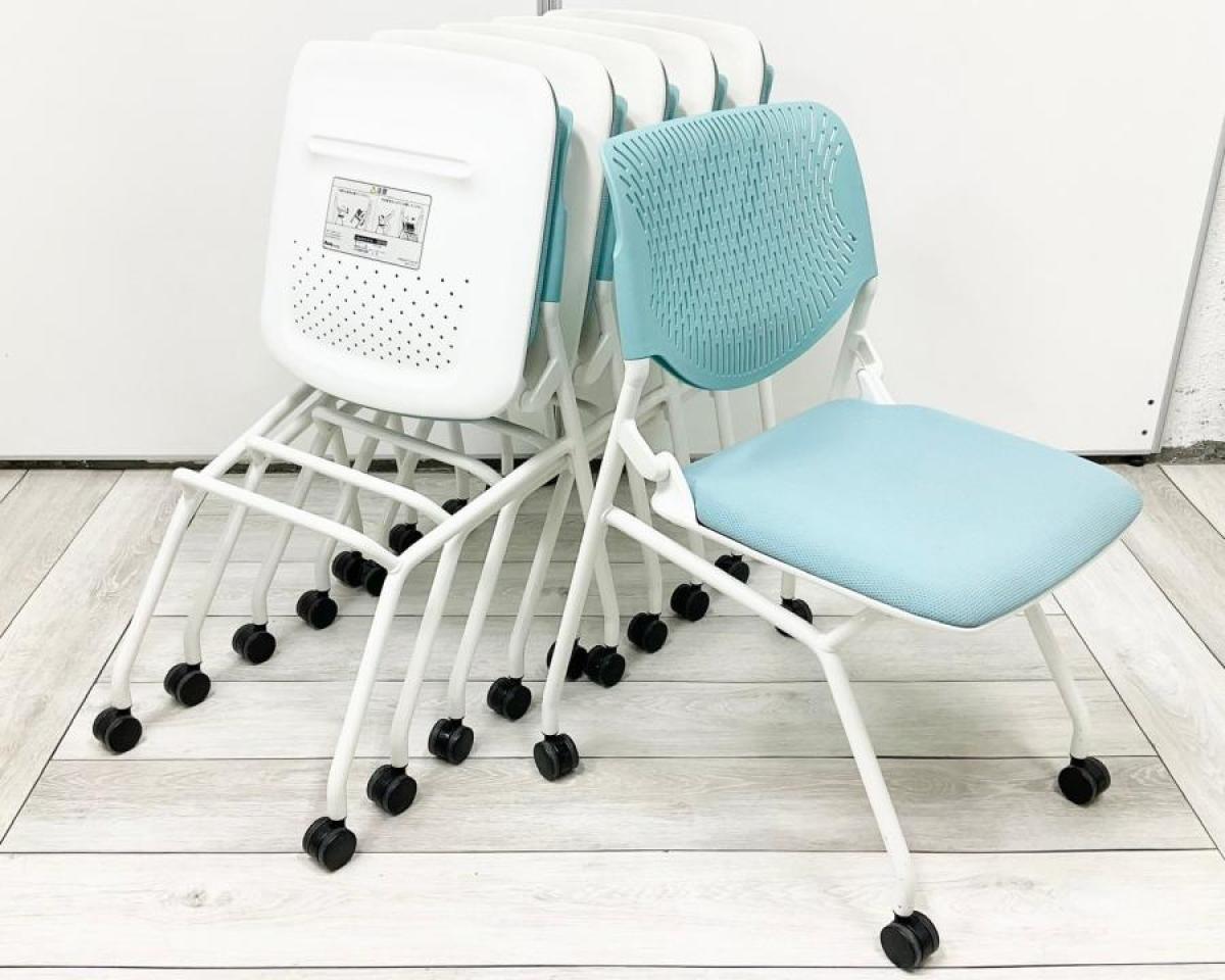 【おしゃれなカラー】オカムラ製ネスティングチェア/ルナシリーズ/会議用/折り畳み椅子/事務用品/福岡/安い/中古- 福岡博多店