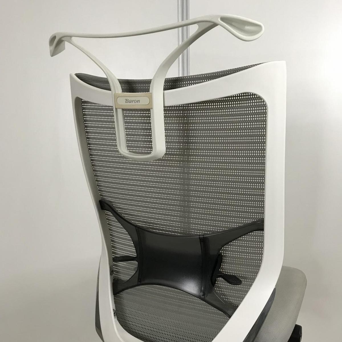 発売当時、既に人気を博していたオカムラの高級チェア、コンテッサから手元で座高調整ができるスマートオペレーション機能を取り除くなどしてリーズナブルにしたのがバロンです。その際に少しだけコンパクト化されました。そのことが、日本人の体格、日本のオフィス、家庭環境に適し、国内で多くのシェアを獲得する要因の一つになったのではないかと思います。