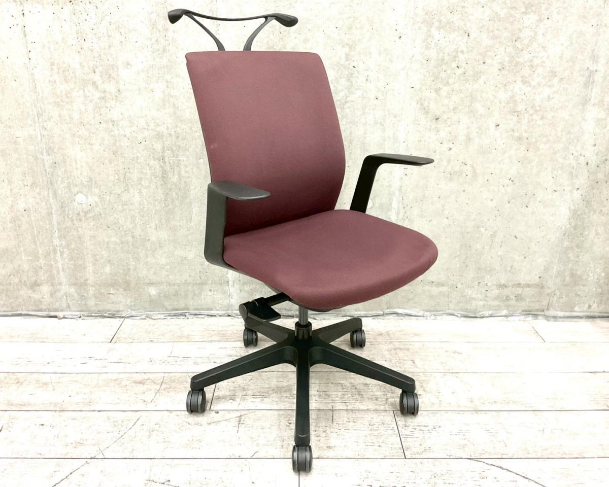 【在庫入替セール品】【ワークスタイルにフィットする、座る人を選ばないマルチパーパスシーティング】■オカムラ(okamura) オムネス(omnes)チェア 肘付き ローバック ■固定肘 ■ハンガー付き ■レッド【弊社使用欄:A01011634】【KN】- 在庫数