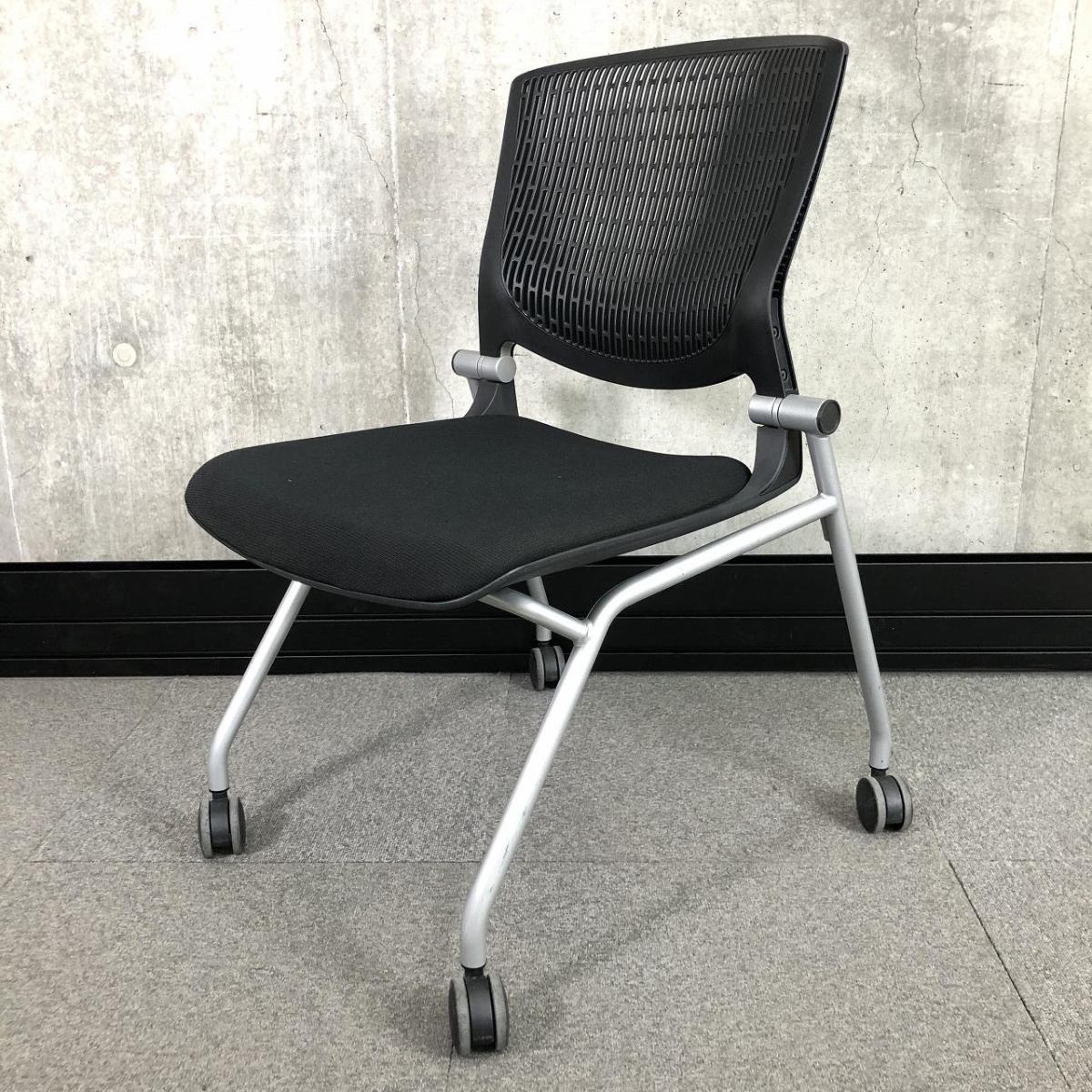 【会議・打ち合わせにおすすめです!】ネスティングチェア オカムラ グラータ ブラック 【使わないときは収納可能!】【AD】