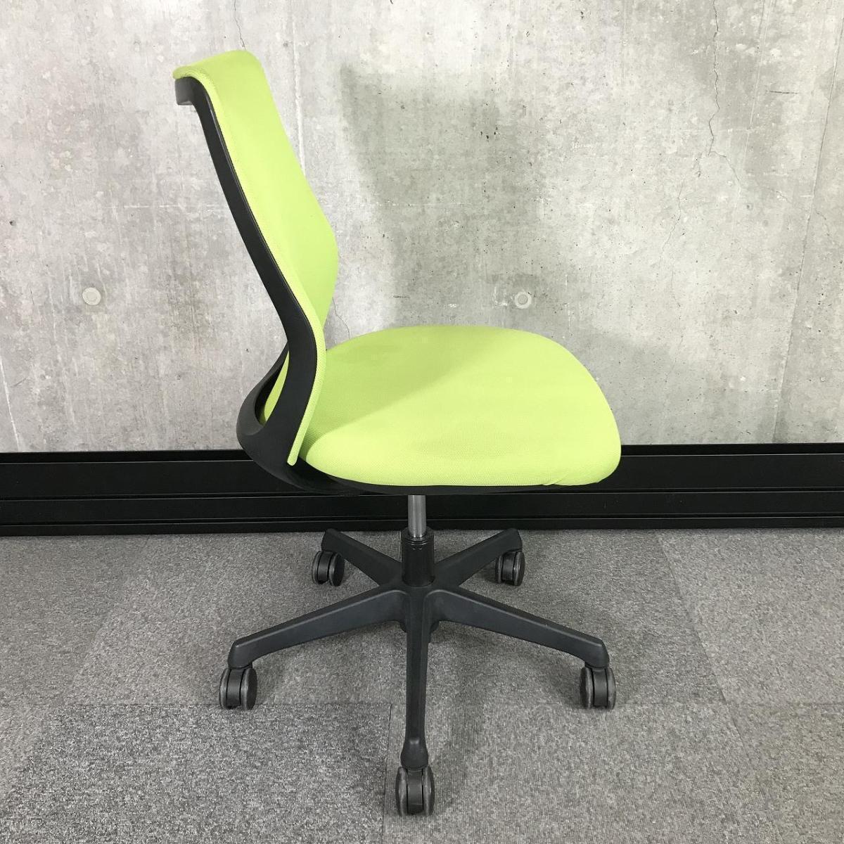 【在庫入替セール品】【やわらかな座り心地を実現!腰への負担を減らすS字形状!】■オカムラ(okamura)製 CG-Mチェア 肘無ローバックチェア パッド仕様 ■ライムグリーン【弊社使用欄:A01006389 K】