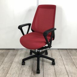 【座りやすくてコンパクト!肩回りが動かしやすい背面メッシュの人気チェア!】■イトーキ(ITOKI) ノナ(nona)チェア ハイバック 肘付き ■サークル肘 ■背面メッシュ ■ラズベリーレッド × ホワイトフレーム【K9】