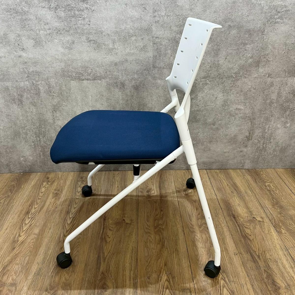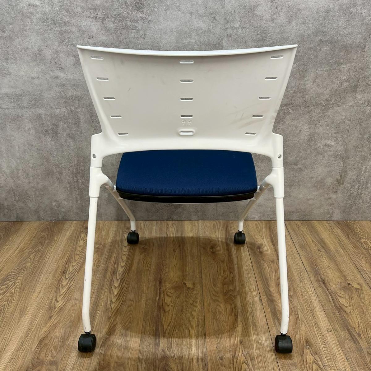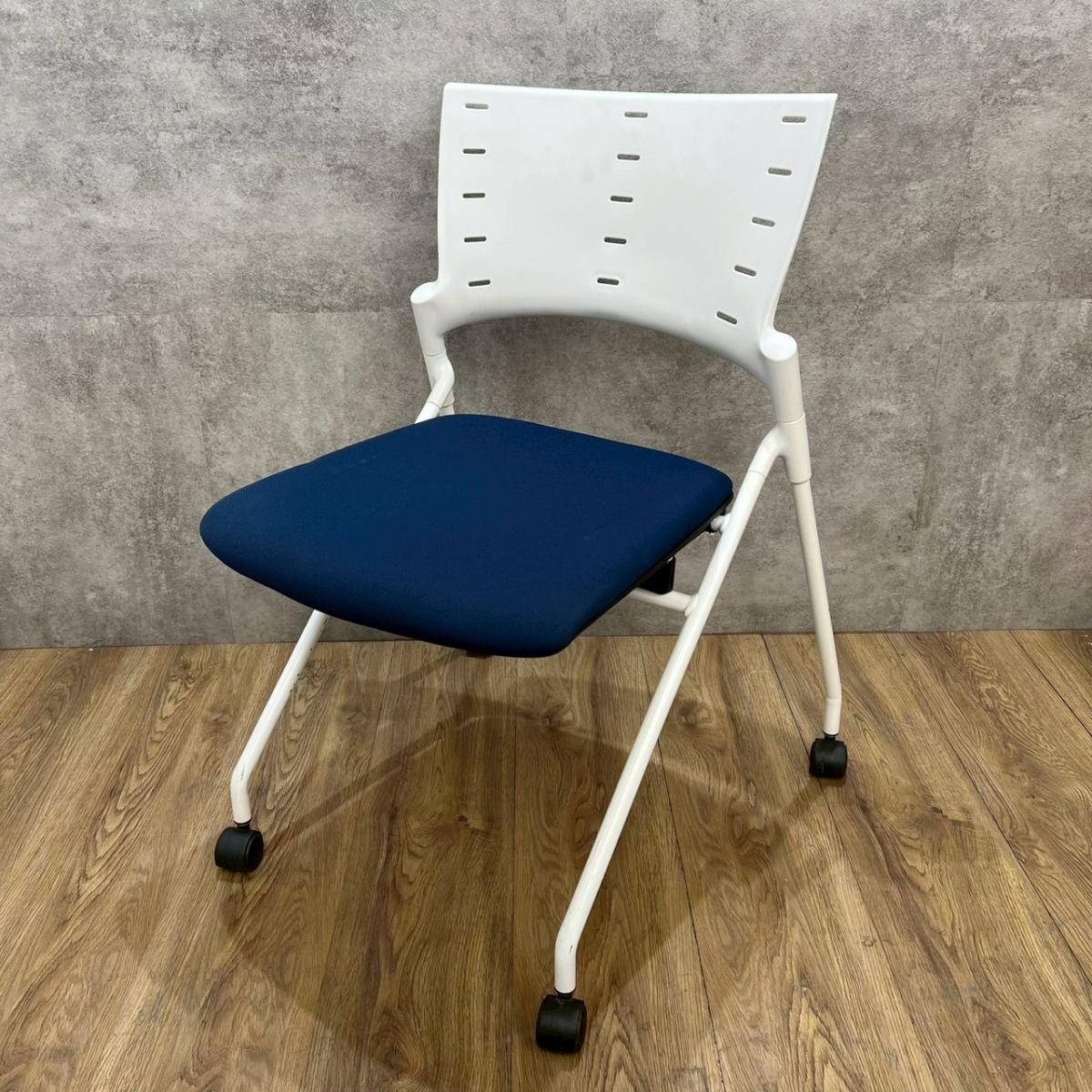 【キャスター付でスイスイ動かせる!省スペースで収納可能!会議や研修にオススメ!】■イトーキ製 マノス(MANOSS) ネスティングチェア 背面パッド無し ■ストロングブルー ■オフィスバスターズ東大阪店 【W】