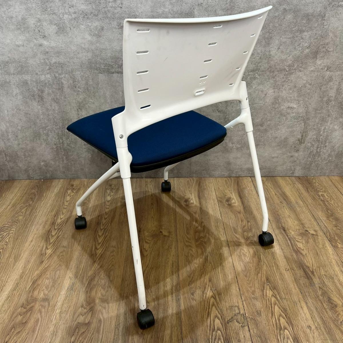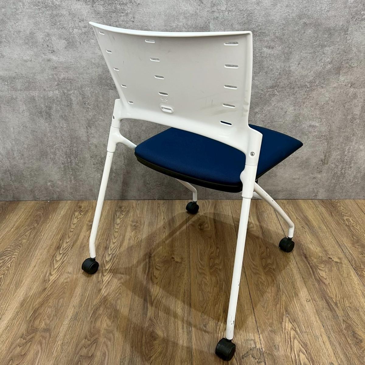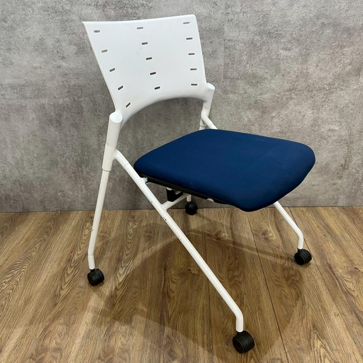 【キャスター付でスイスイ動かせる!省スペースで収納可能!会議や研修にオススメ!】■イトーキ製 マノス(MANOSS) ネスティングチェア 背面パッド無し ■ストロングブルー ■オフィスバスターズ東大阪店 【W】