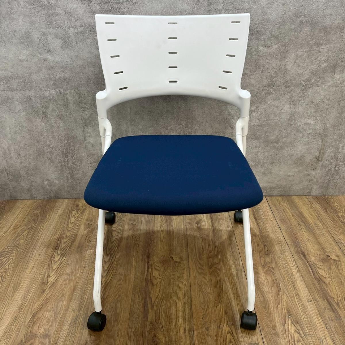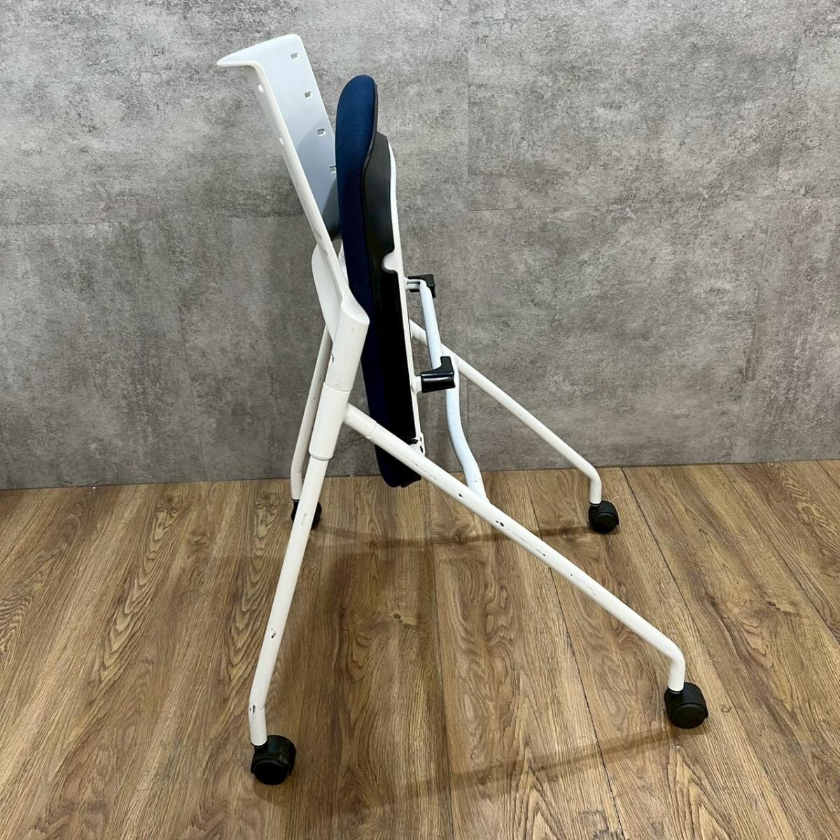 【セミナーや会議用にオススメ!平行ネスティングで省スペース化!】■イトーキ製 マノス ネスティングチェア ■背パッド付 キャスター付き ■ネイビーブルー オフィスバスターズ心斎橋店 ロット在庫