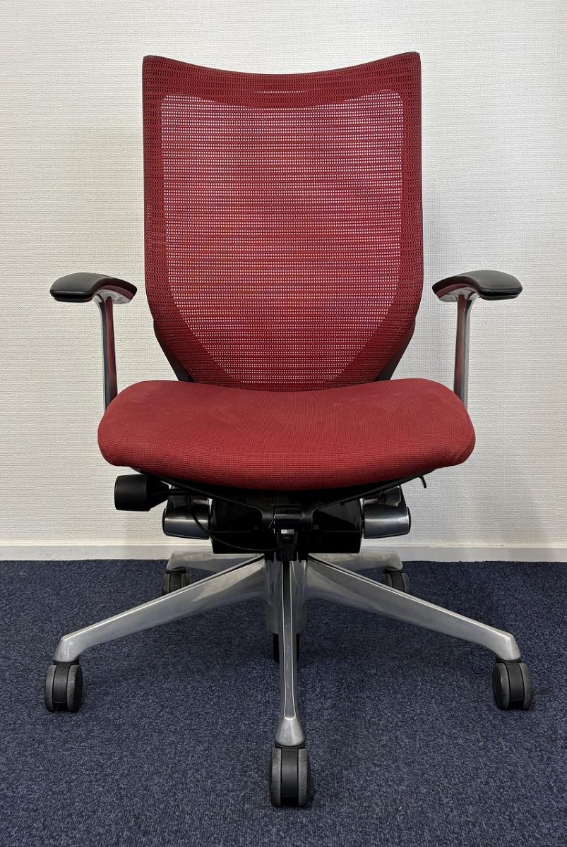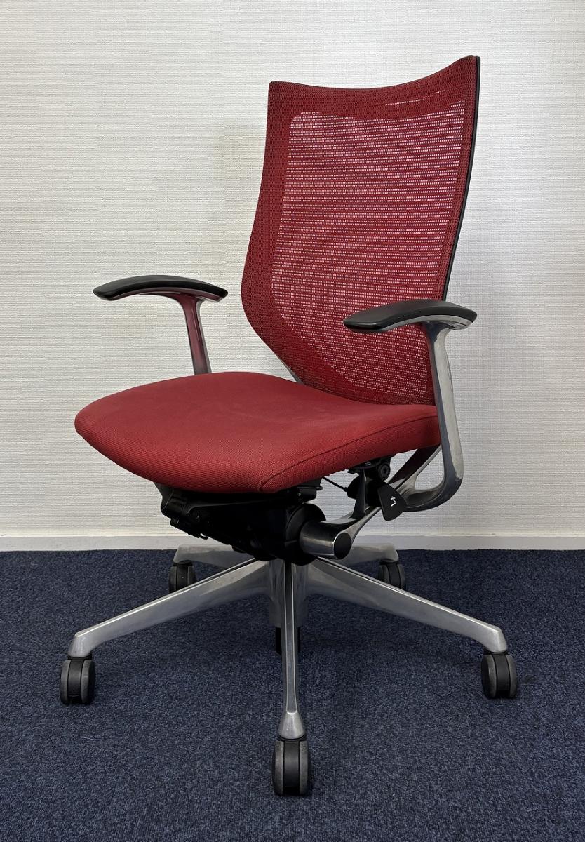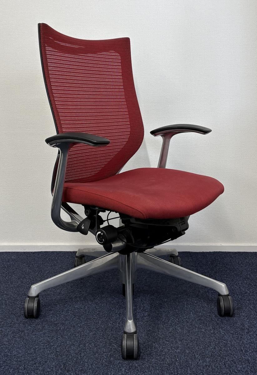 【ベストなポジションが得られる人間工学に基づいた先進設計!】不動の人気を誇る高級メッシュチェアが入荷! ■オカムラ/バロン/レッド シルバー 【弊社使用欄:A01011407】