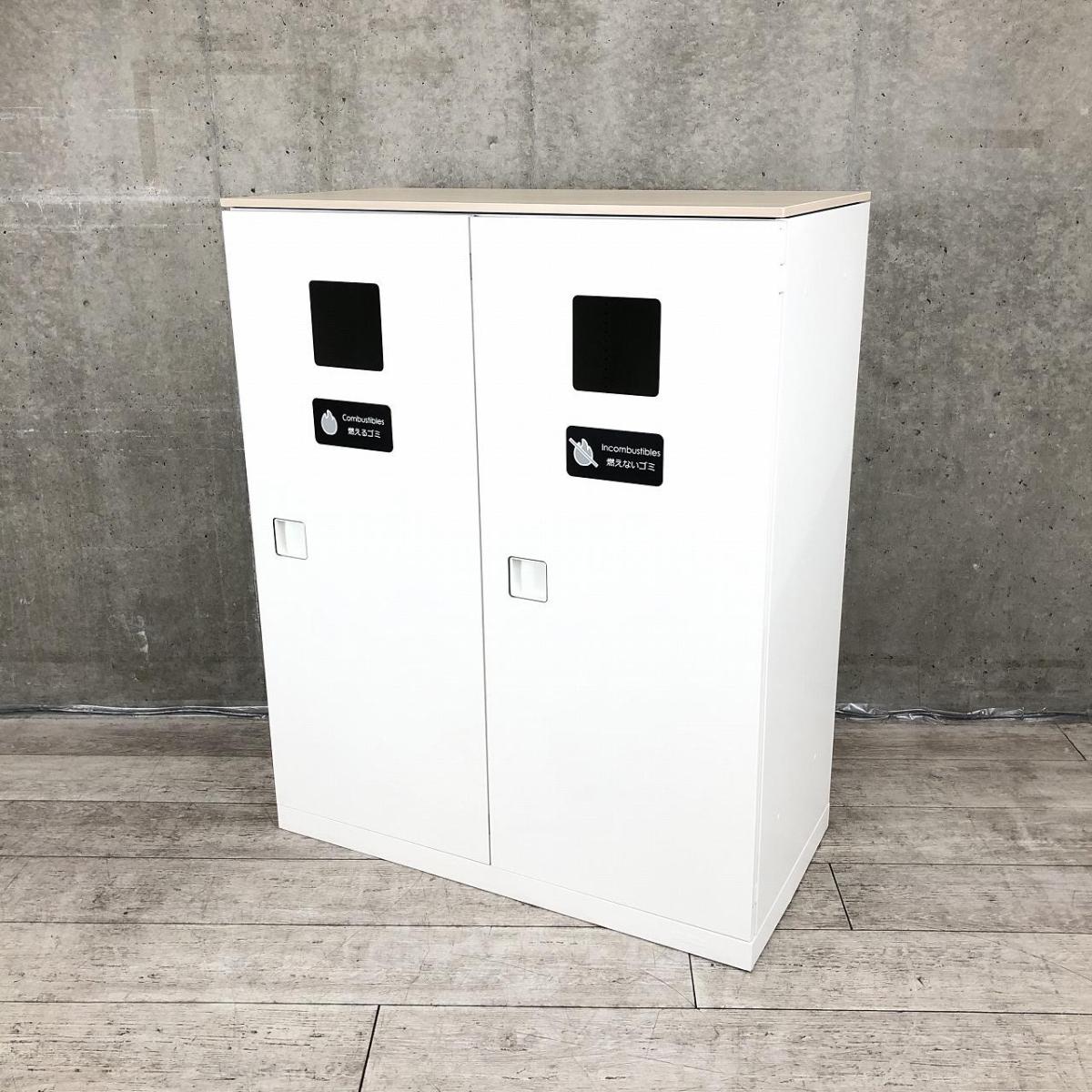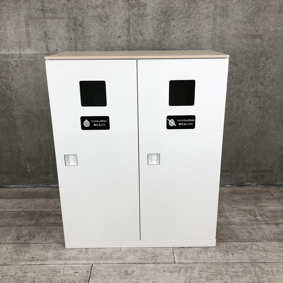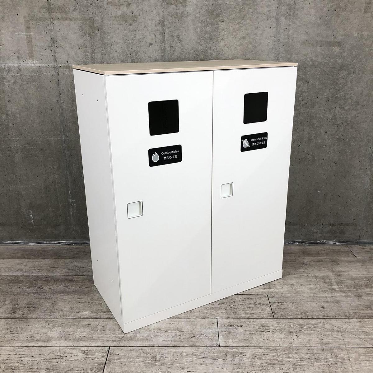 【投函口が2か所!なかなか入荷のないトラッシュボックス!】■オカムラ(okamura) レクトライン ダストボックス ゴミ箱 ■天板付き:ナチュラル木目調 ■ホワイト 【弊社使用欄:A01006808】- 日本橋店