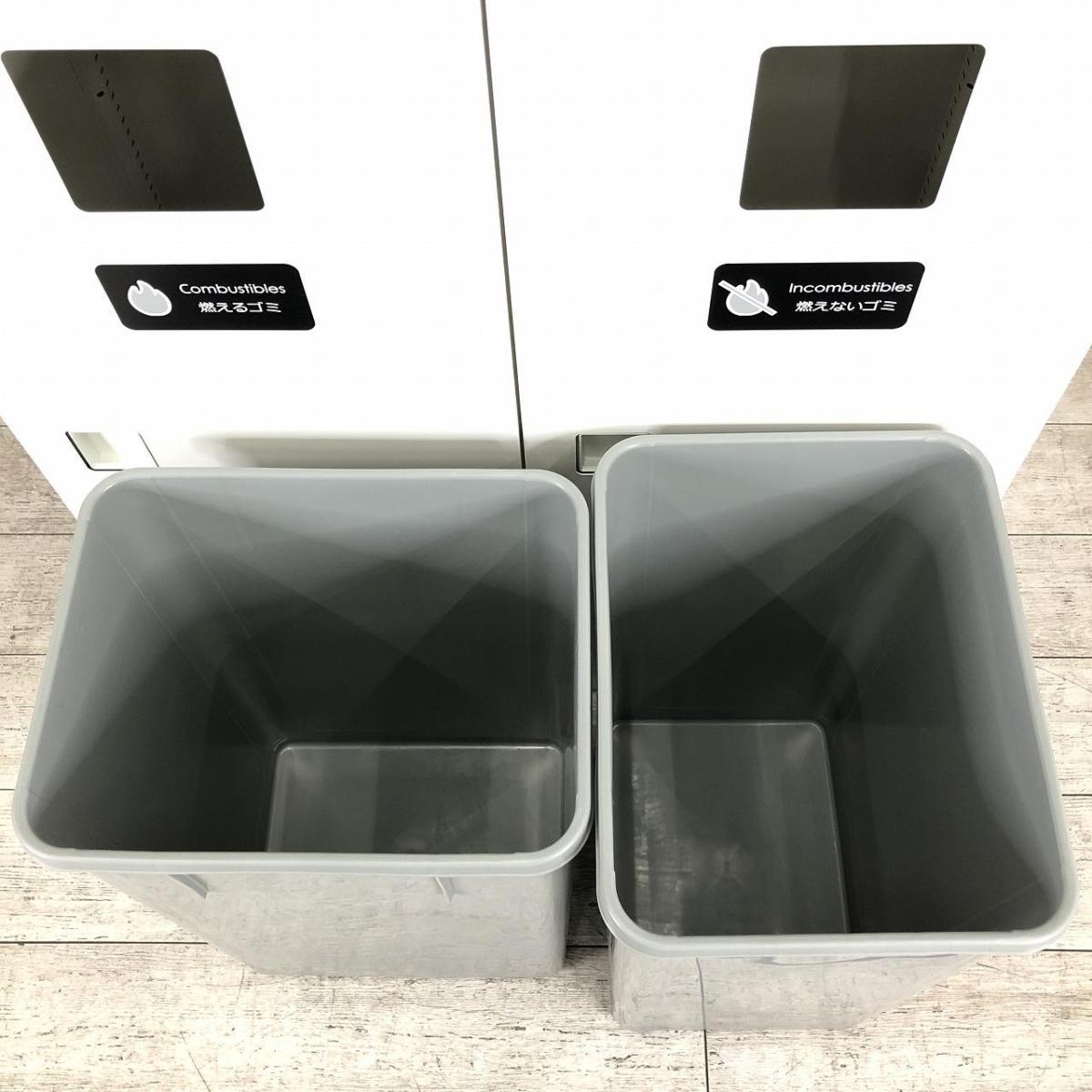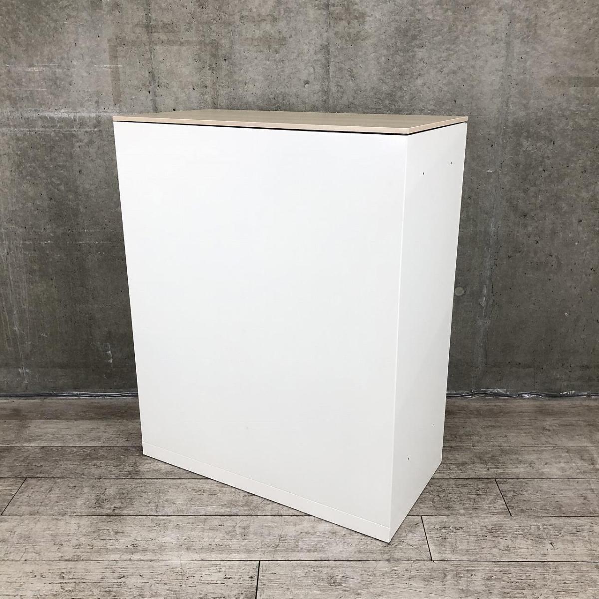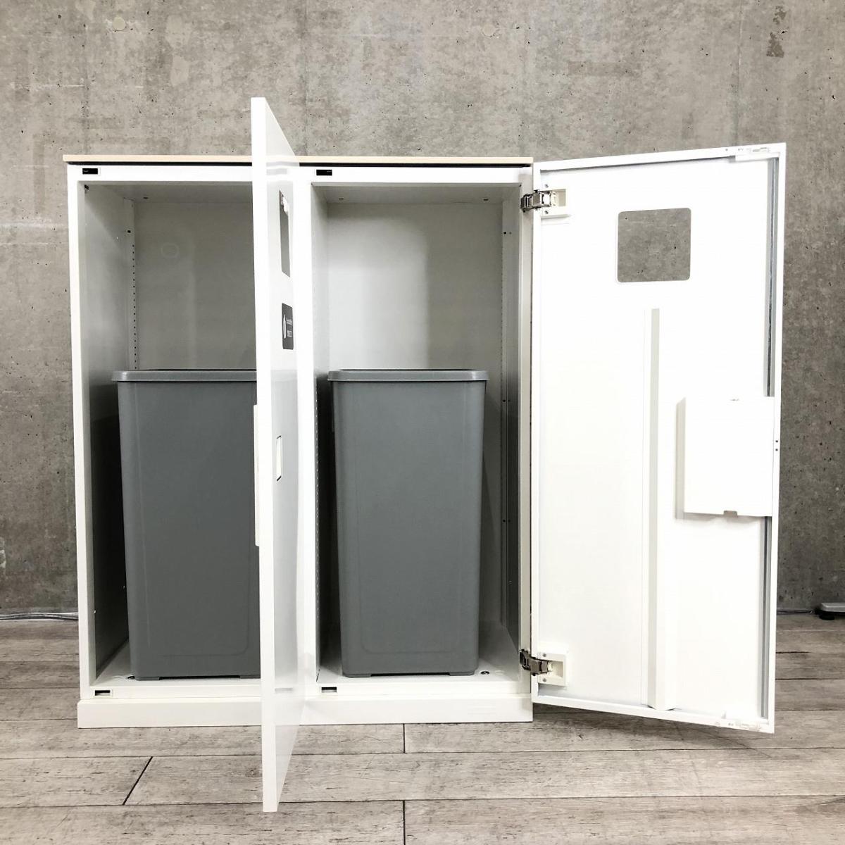 【投函口が2か所!なかなか入荷のないトラッシュボックス!】■オカムラ(okamura) レクトライン ダストボックス ゴミ箱 ■天板付き:ナチュラル木目調 ■ホワイト 【弊社使用欄:A01006808】- 日本橋店