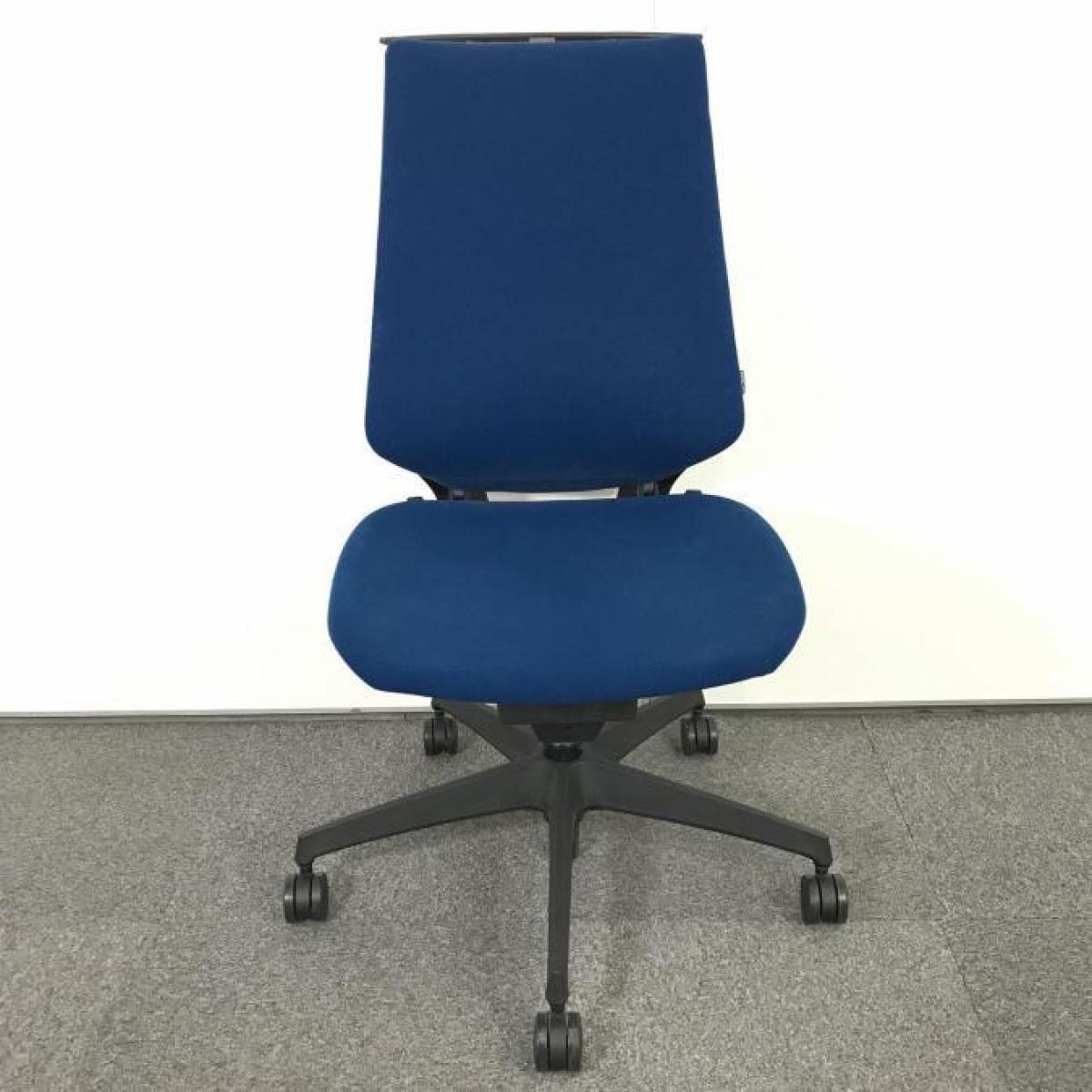 【在庫入替セール】コクヨ デュオラ 肘無しモデル クッションタイプ ブルー×ブラックフレームの定番のカラーリング コートハンガー付き ※背もたれに破れ有り【T9】