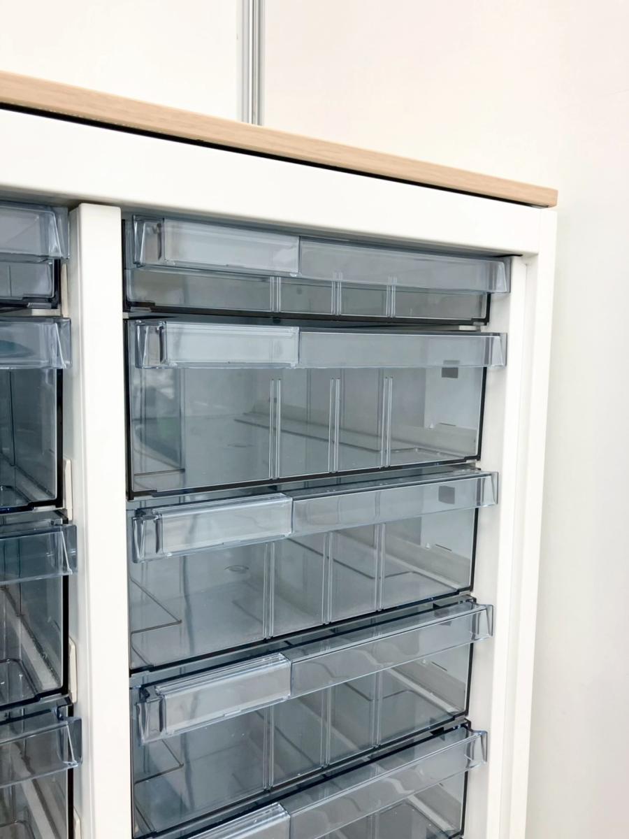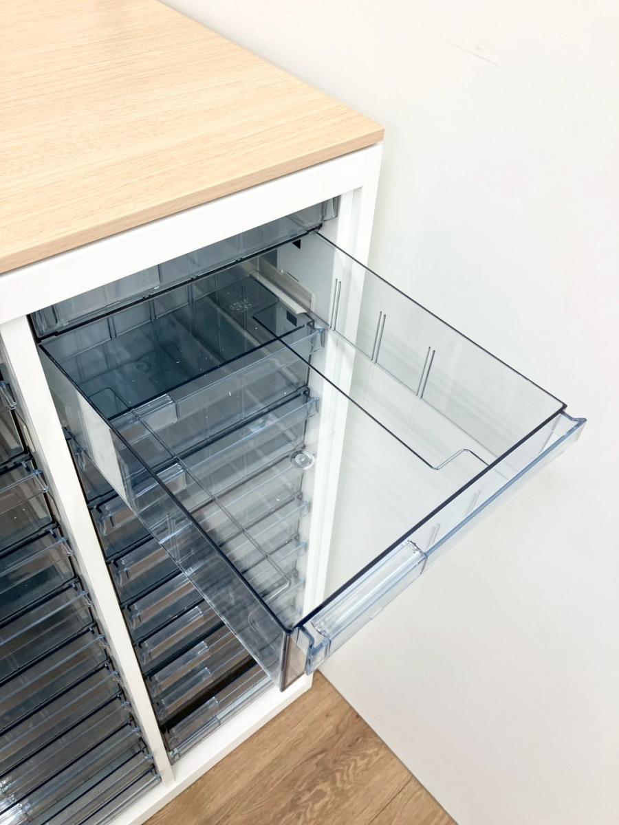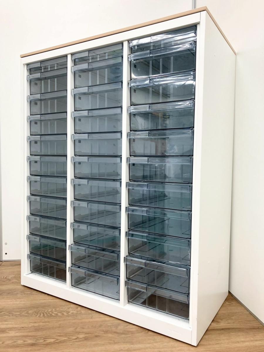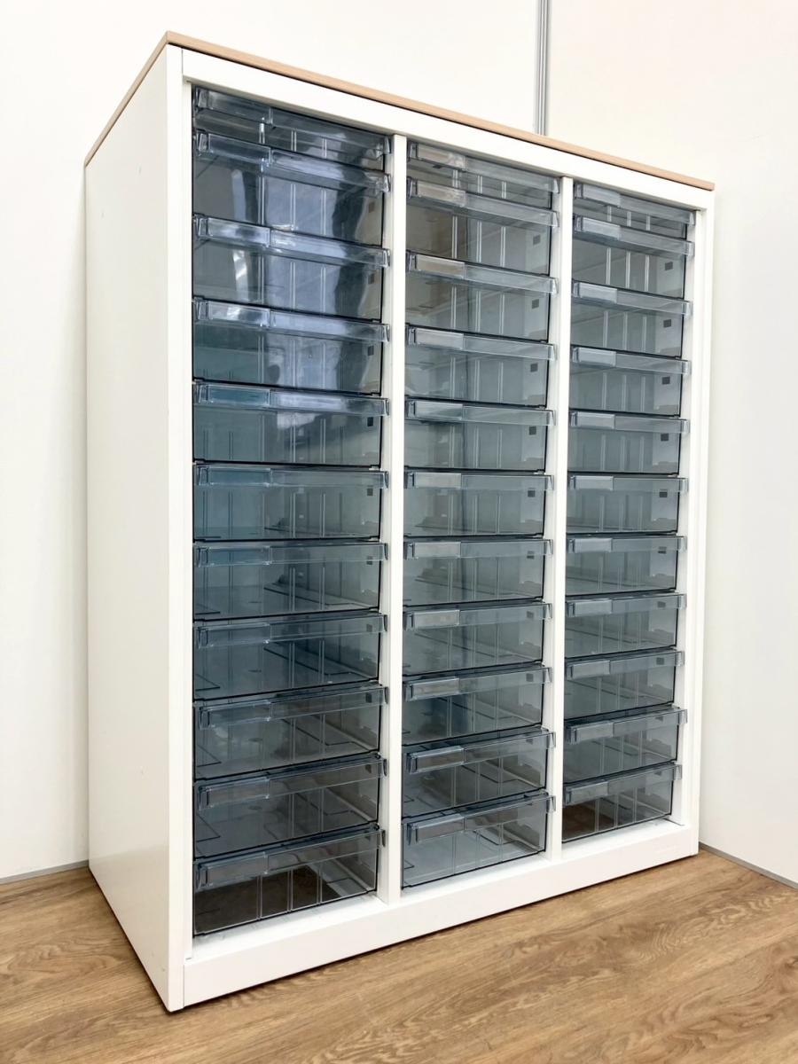 【書類・備品整理の必需品!書類や備品のストックにピッタリ!※1段目のみ浅型仕様】オカムラ レクトライン クリスタルトレー 書類 引き出し 透明 ケース ローキャビネット 整理 中古家具 オフィス家具 福岡 九州最大級《オフィスバスターズ福岡博多店は、福岡を拠点として、日本全国へ中古オフィス用品・オフィス家具を提供しております》