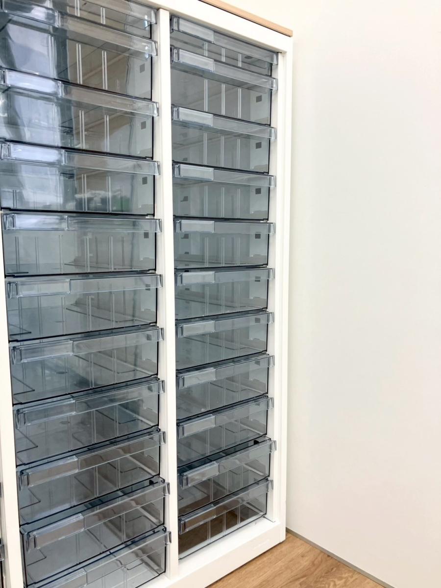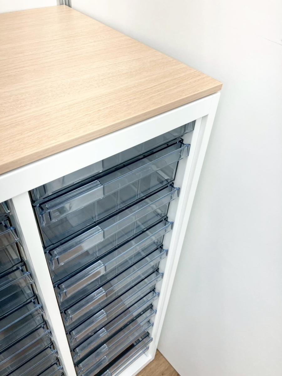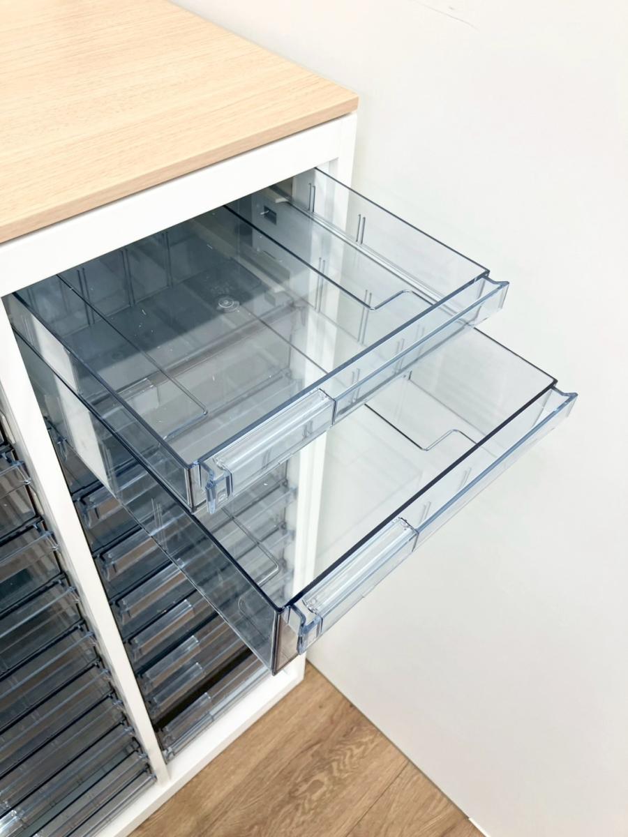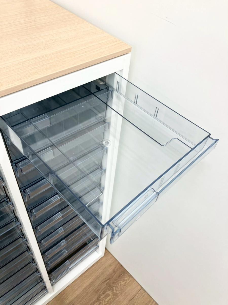【書類・備品整理の必需品!書類や備品のストックにピッタリ!※1段目のみ浅型仕様】オカムラ レクトライン クリスタルトレー 書類 引き出し 透明 ケース ローキャビネット 整理 中古家具 オフィス家具 福岡 九州最大級《オフィスバスターズ福岡博多店は、福岡を拠点として、日本全国へ中古オフィス用品・オフィス家具を提供しております》