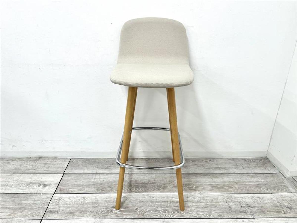 【在庫セール品】【定価約8万円】【ファブリック性の座面と木製の脚が温かみのあるオシャレナ空間を演出!】■オカムラ/L114シリーズ ■カウンターチェア ■アイボリー ■座面布製/脚木製- 在庫数