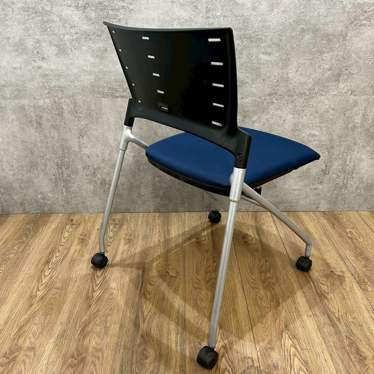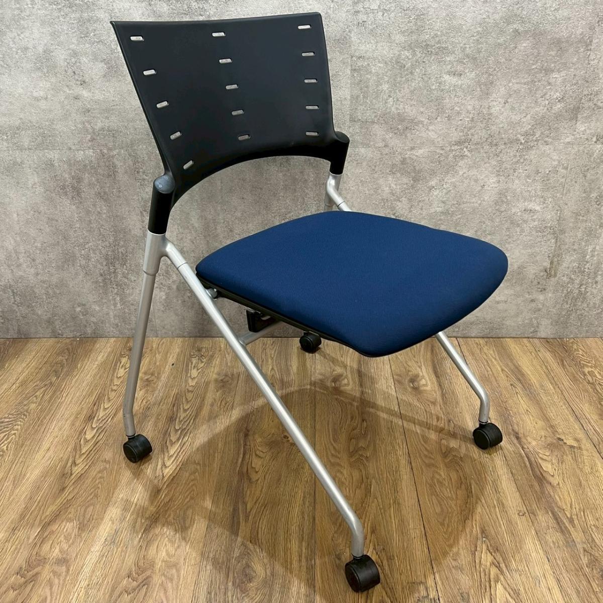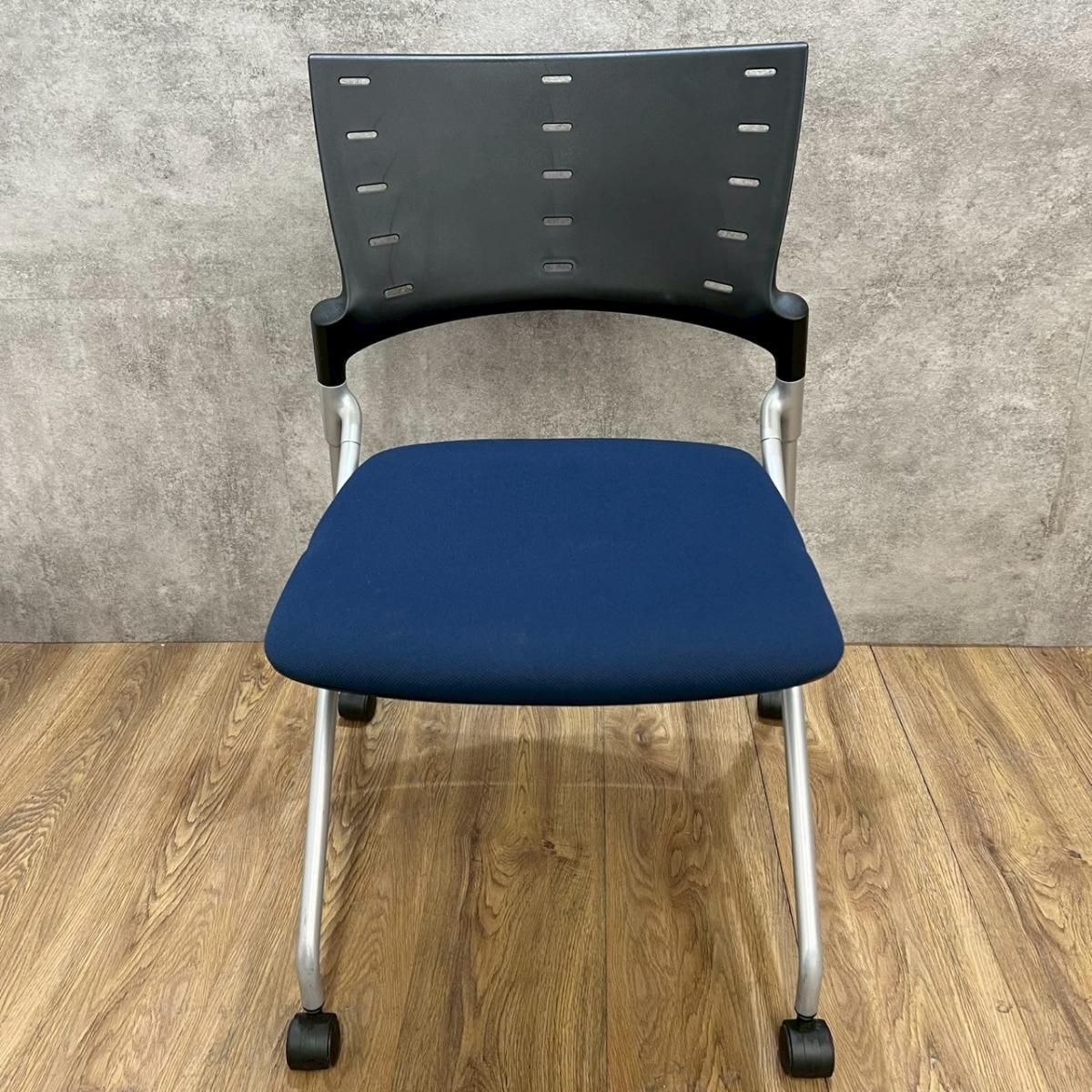 【セミナーや会議用にオススメ!平行ネスティングで省スペース化!】■イトーキ製 マノス ネスティングチェア ■背パッド付 キャスター付き ■ネイビーブルー オフィスバスターズ心斎橋店 ロット在庫