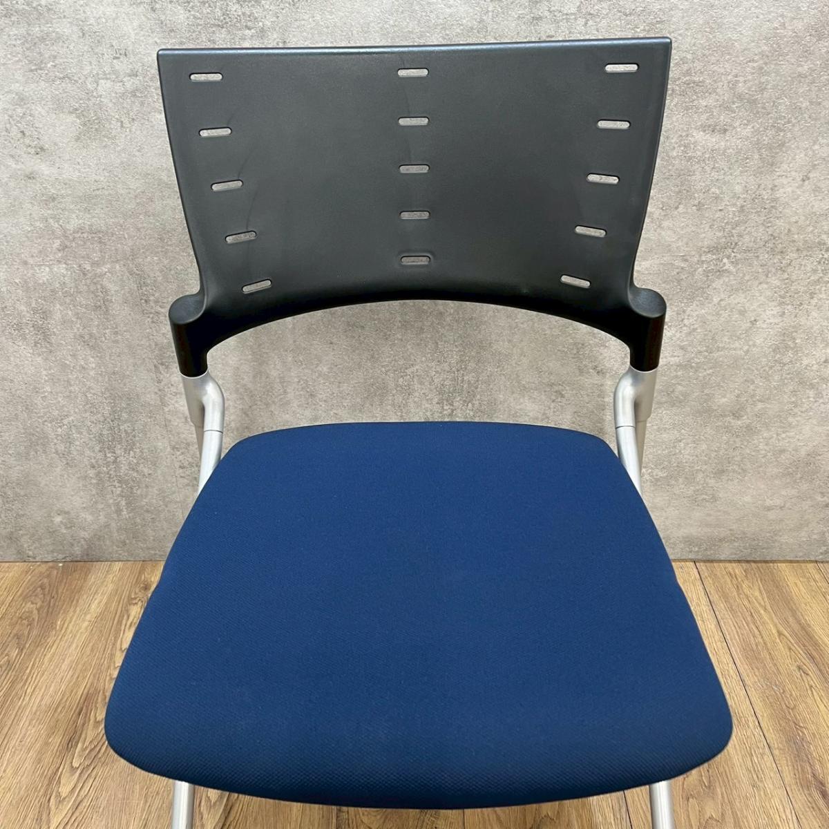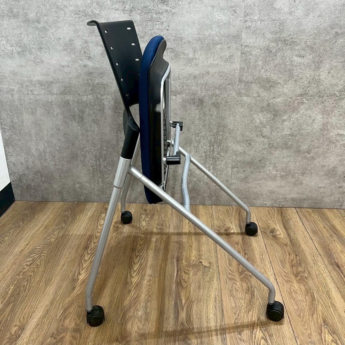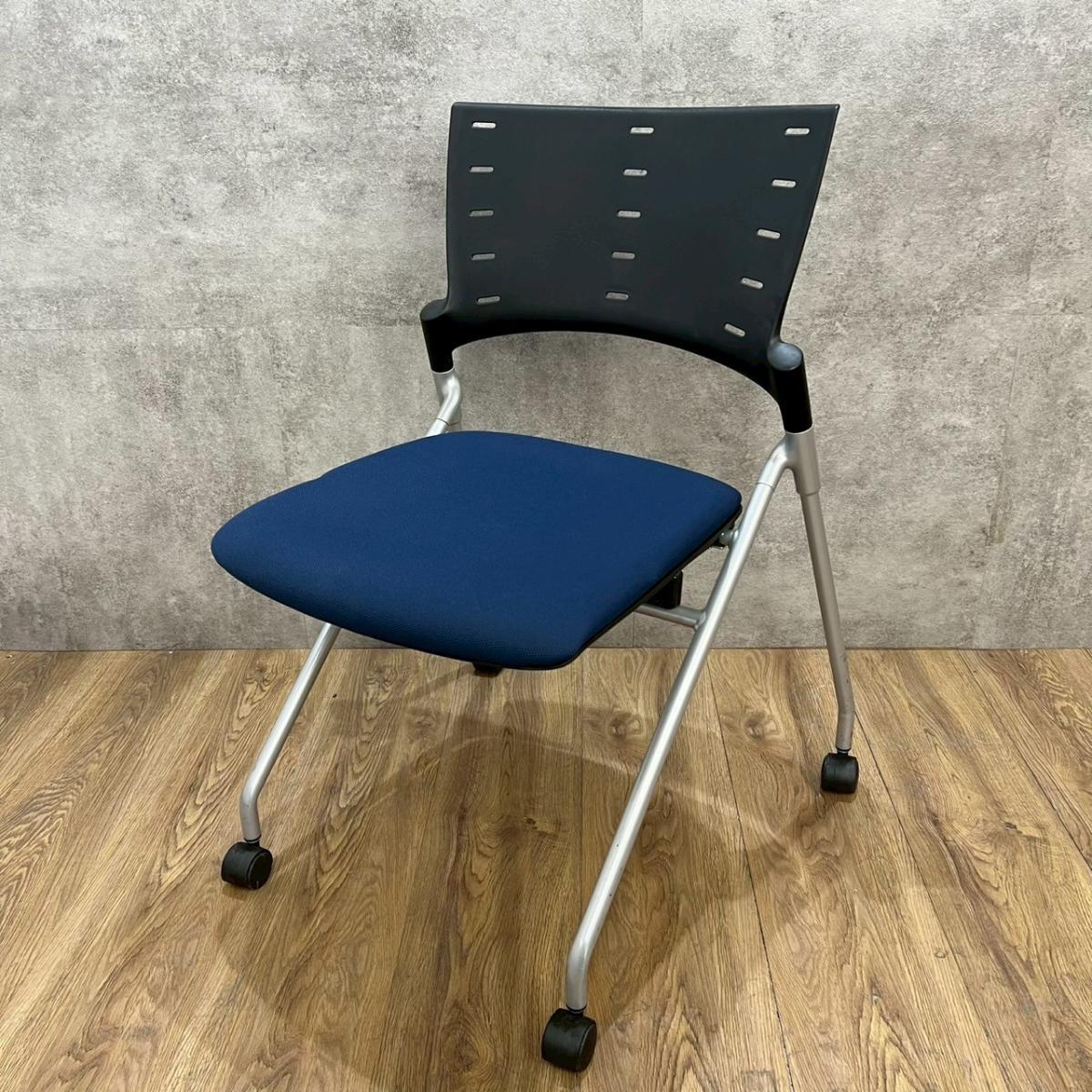 【セミナーや会議用にオススメ!平行ネスティングで省スペース化!】■イトーキ製 マノス ネスティングチェア ■背パッド付 キャスター付き ■ネイビーブルー オフィスバスターズ心斎橋店 ロット在庫
