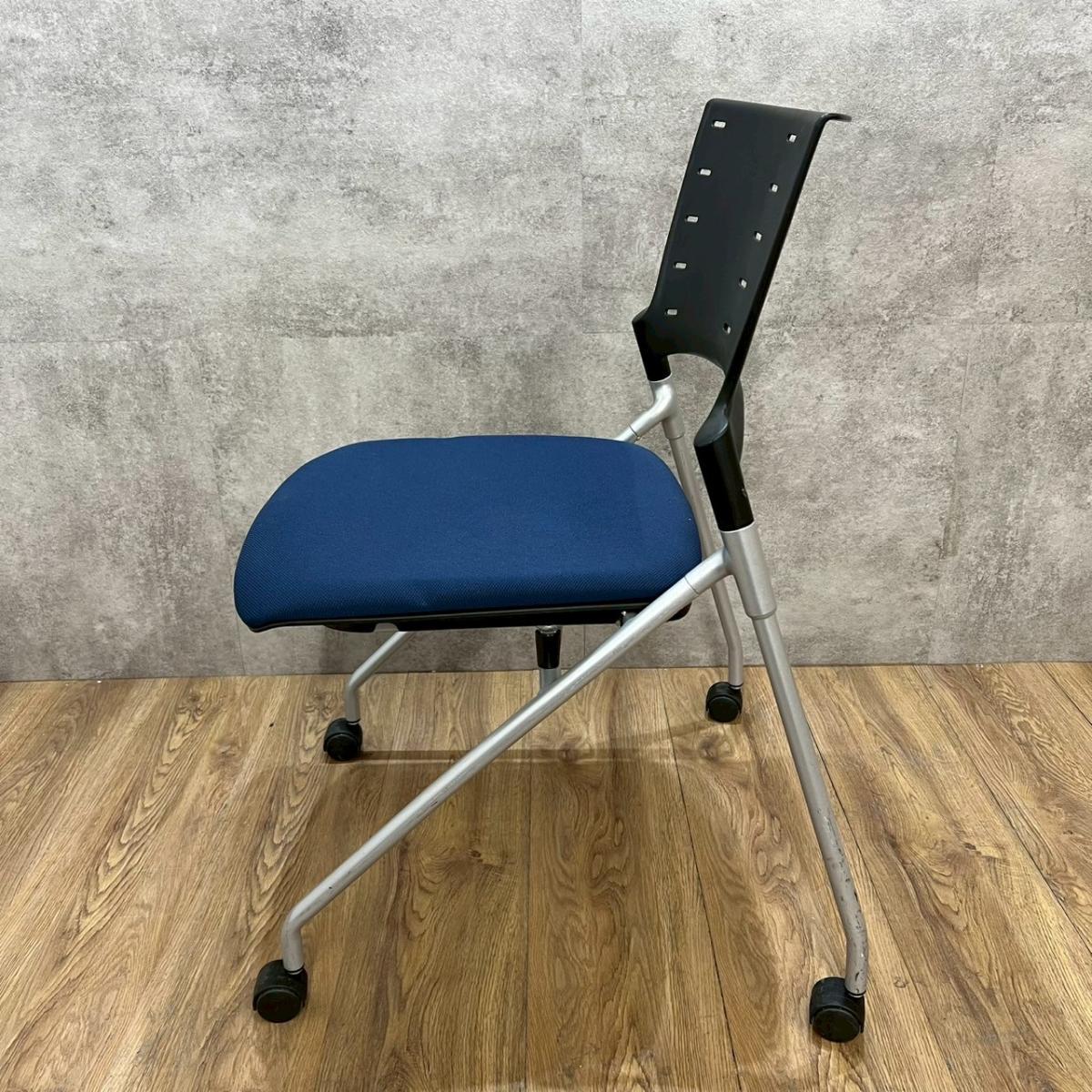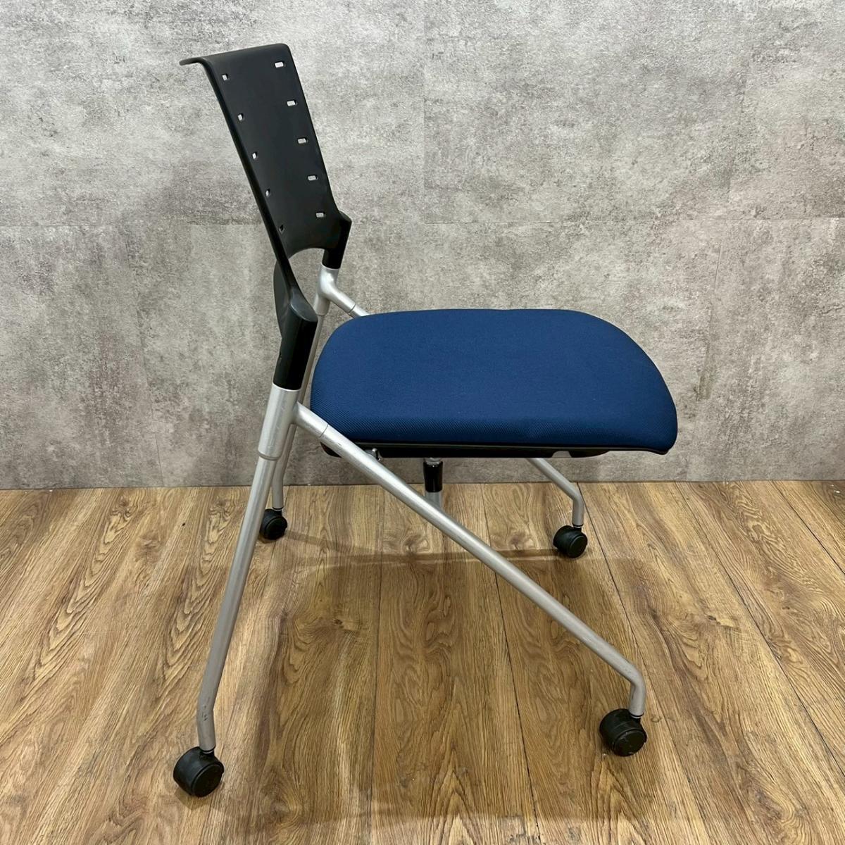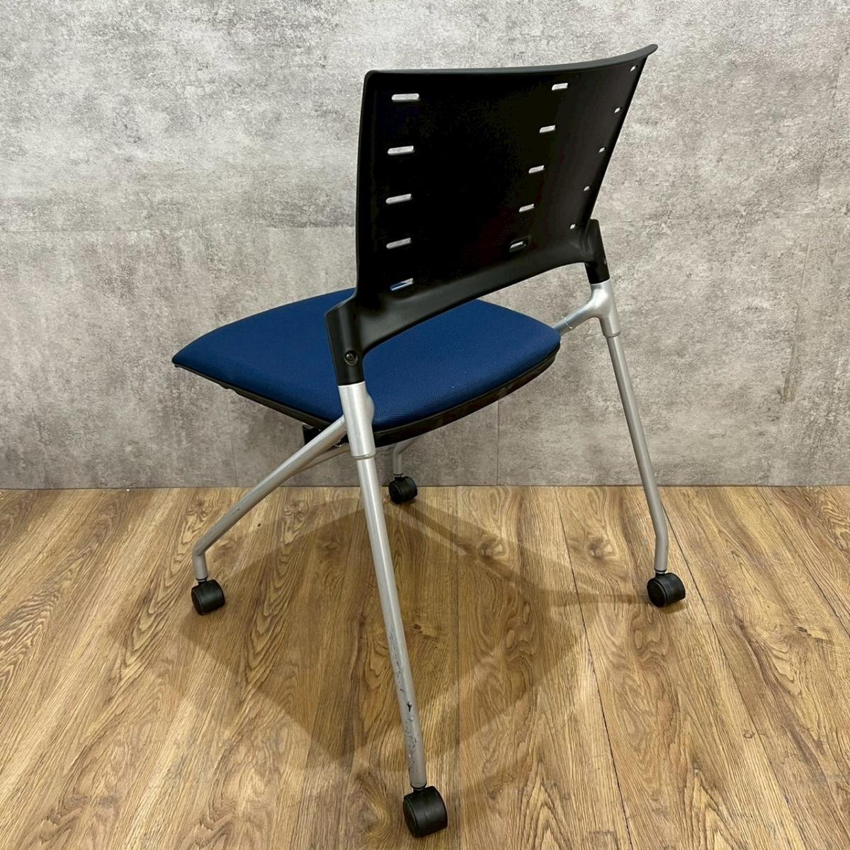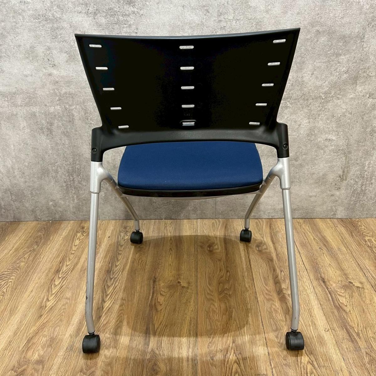 【関東倉庫在庫品】【フレキシブルに使える!平行ネスティングで省スペース化!】■イトーキ(ITOKI)製 マノス(MANOSS) ネスティングチェア ミーティングチェア ■背パッド付 ■キャスター付 ■ブルー【弊社使用欄:A01014525】【ECBMC】
