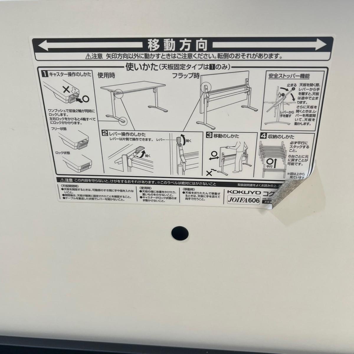 - 一部不具合あり天板歪み、アジャスター無し、キャスター使用不可ようなそのテーブルの本来の効用を果たすための機能以外の一部が使用不可な状態。(例、キャスターロッ ク機能使用不可、棚板無し等がある。)