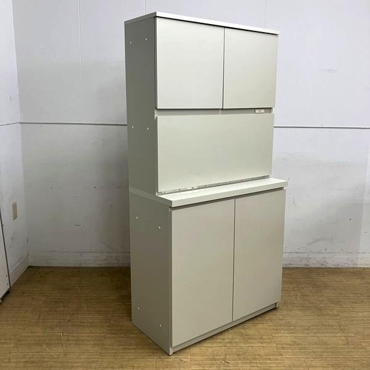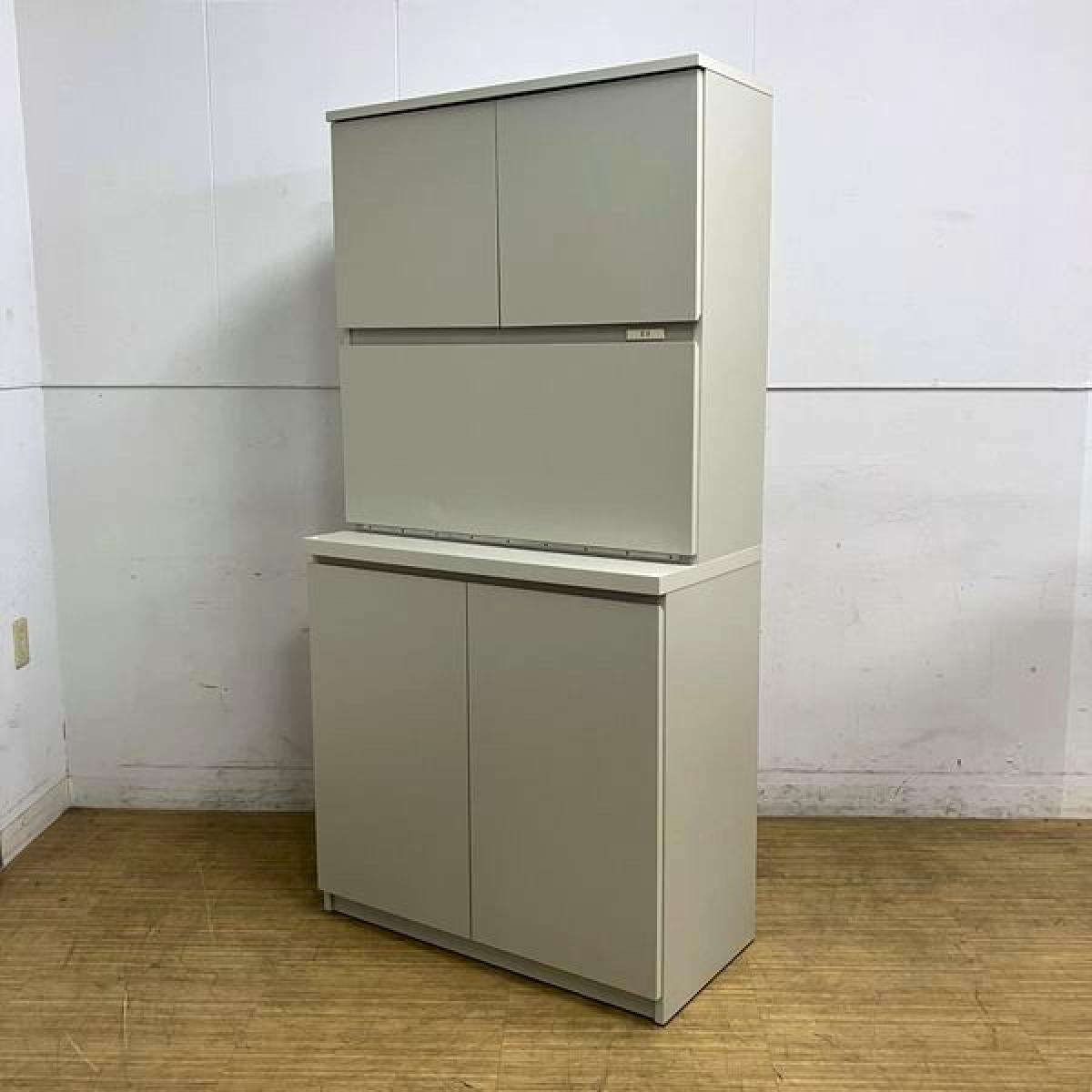 【在庫入替セール】コクヨ キッチンキャビネット 木製食器収納ユニット ニューグレー ※一部棚不足・正面に凹みと割れあり- 名古屋千種店