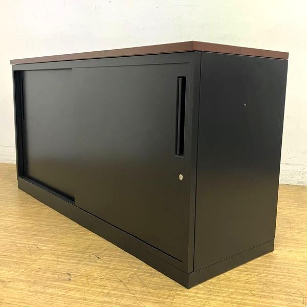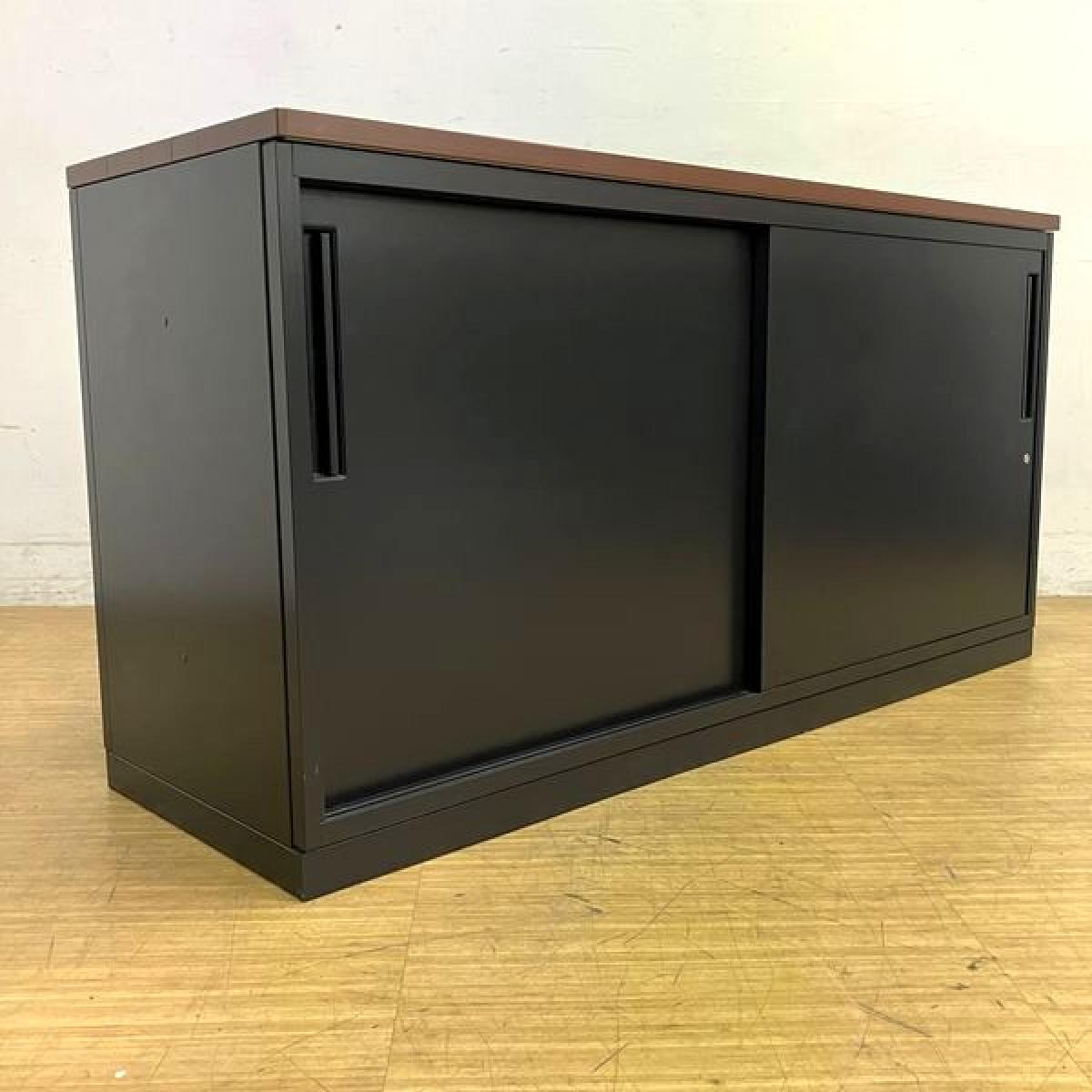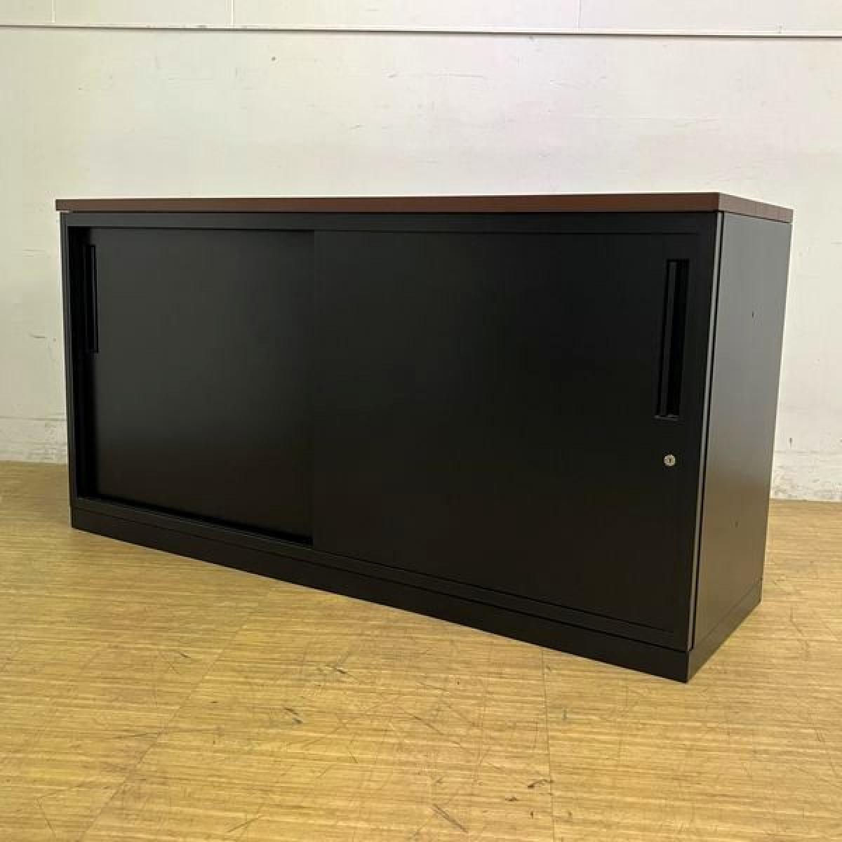 イナバ スチール引き違い書庫 本体:ブラック 天板:ダークブラウン 鍵付き シリンダー錠 役員用・応接用- 名古屋千種店