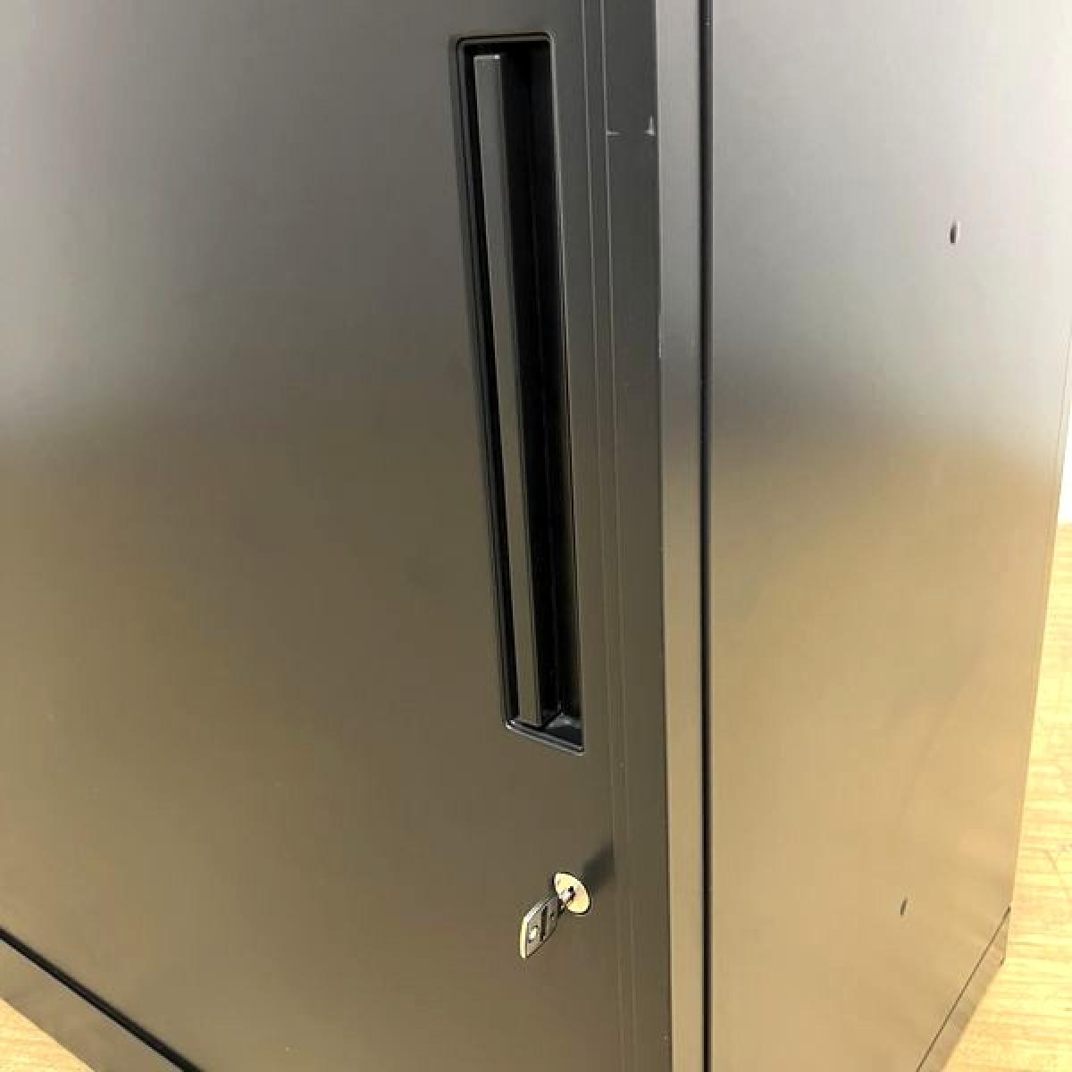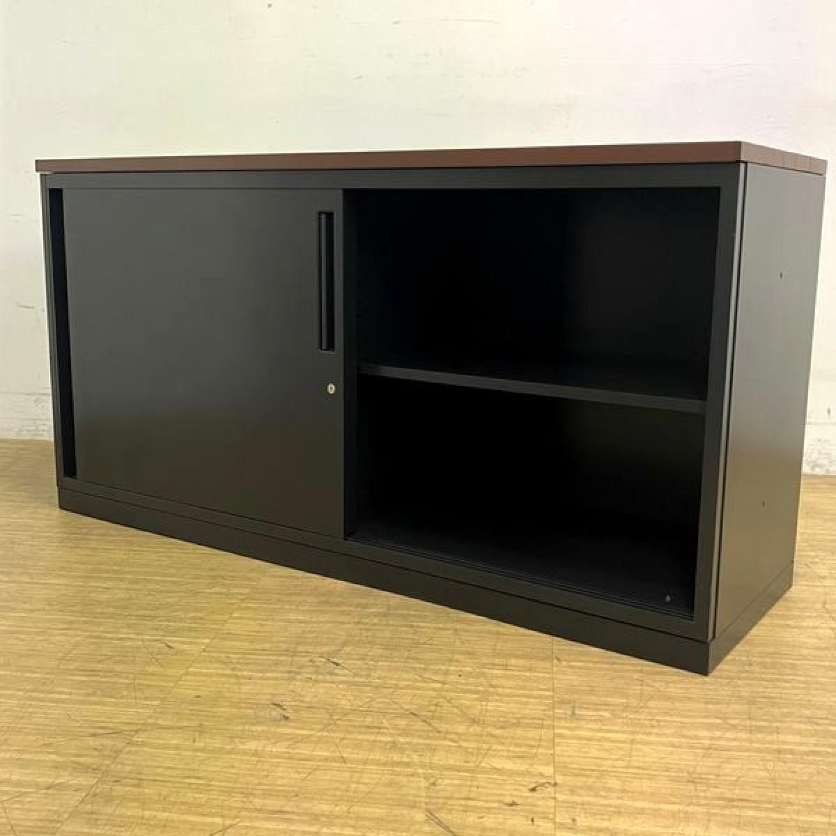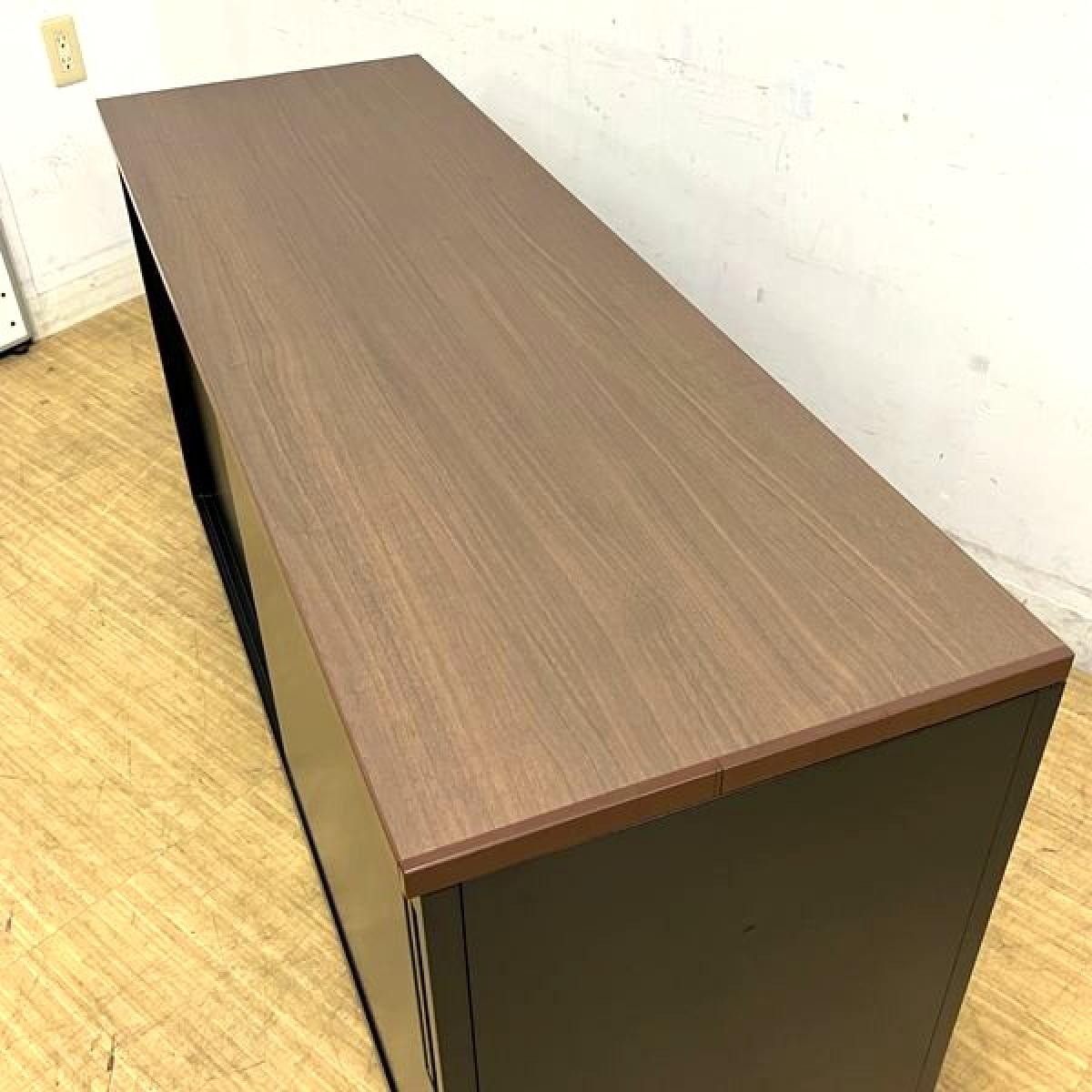 イナバ スチール引き違い書庫 本体:ブラック 天板:ダークブラウン 鍵付き シリンダー錠 役員用・応接用- 名古屋千種店
