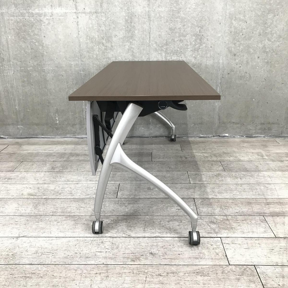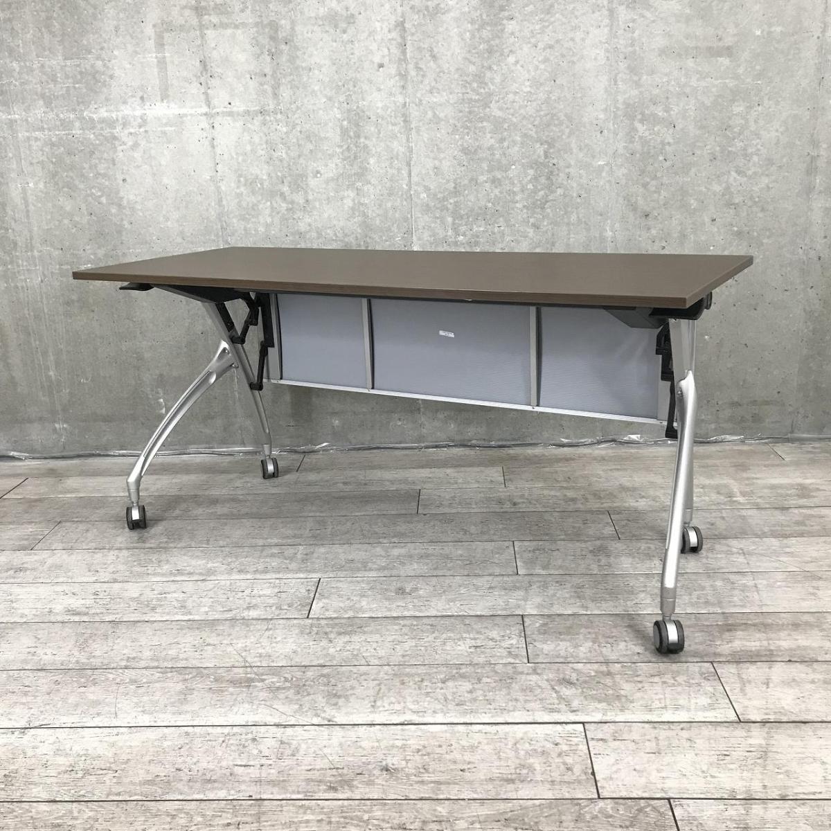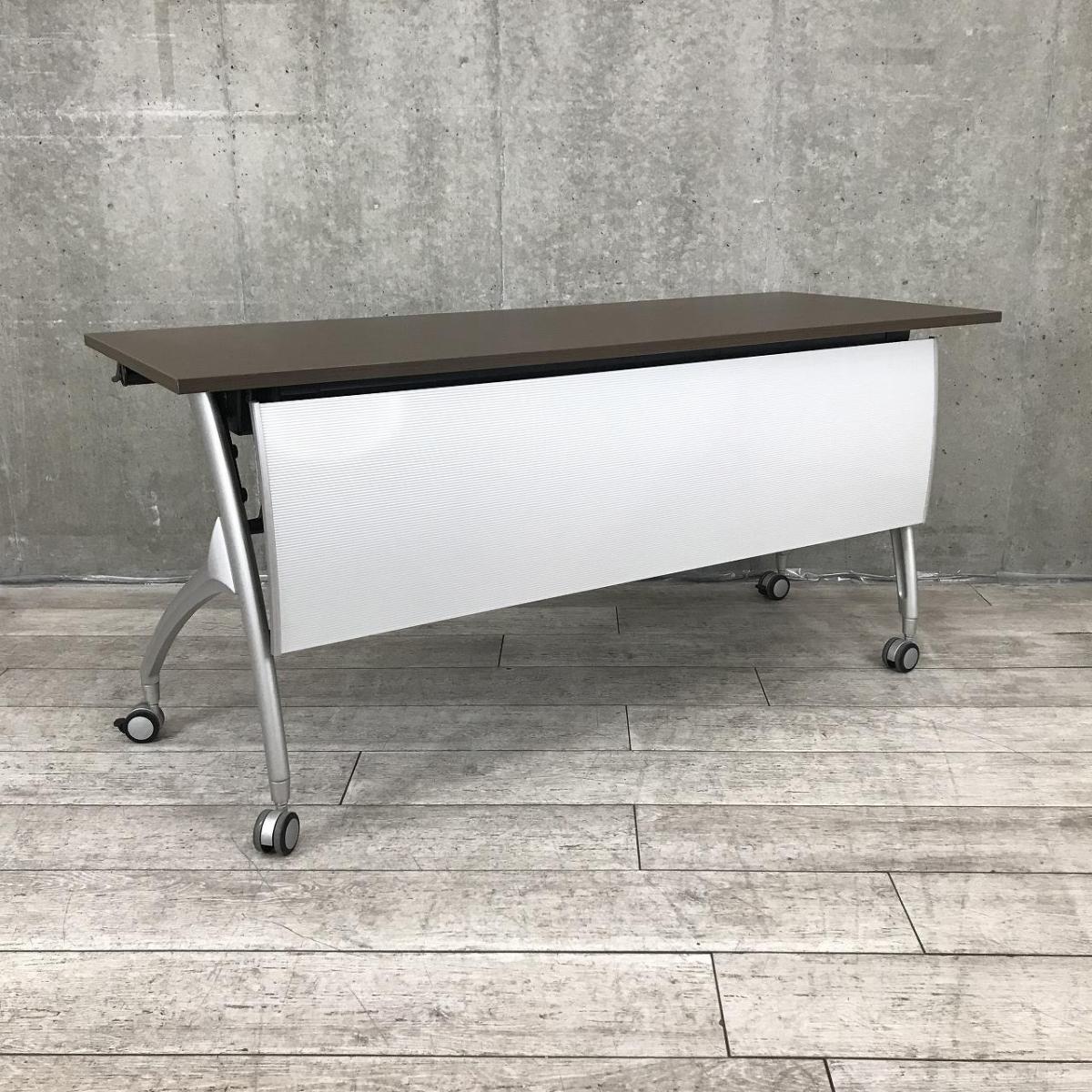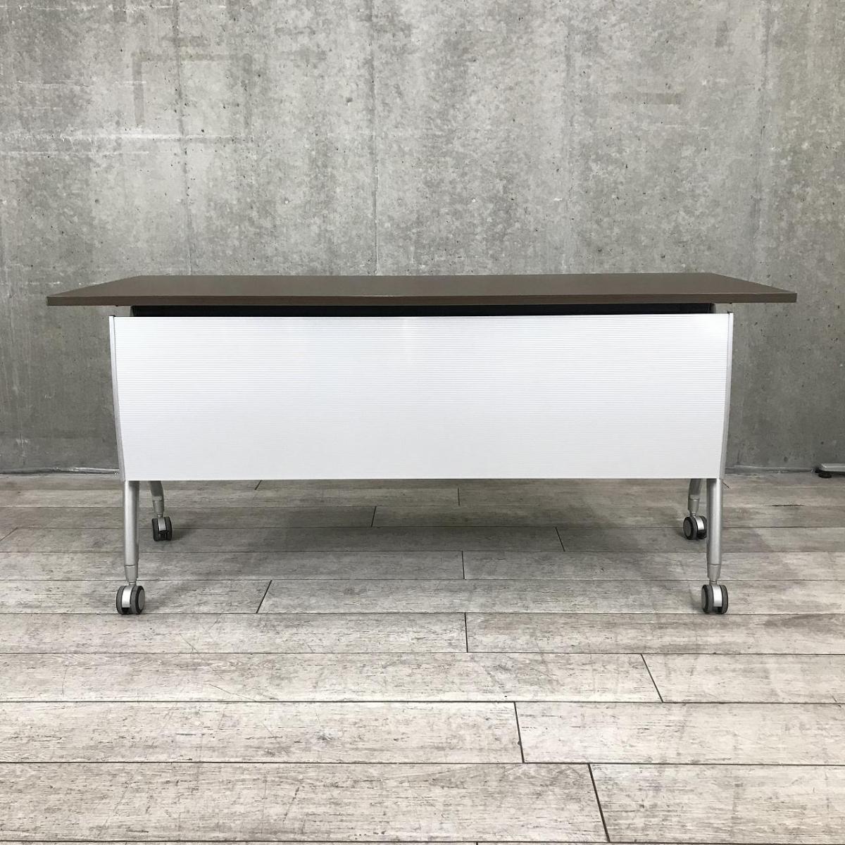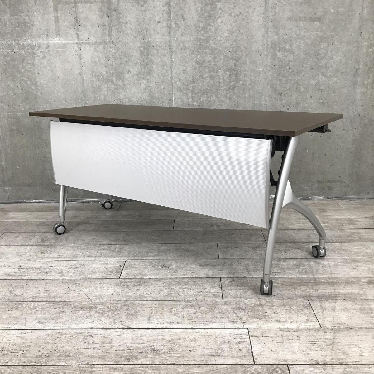 【スタイリッシュで上質なデザイン!】■イトーキ製 サイドスタックテーブル 幕板パネル付 W1500×D600×H700mm ブラウン木目【折りたたみテーブル】【ITOKI LILISH】- 川崎店