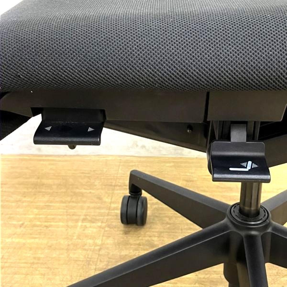 また、個人的にオススメなのは『フルアジャスタブル肘』というアーム部分が斜め前に伸びていくタイプの肘置きを搭載したモデルです。高さを上げれば上げるほどパッドが前方に迫り出していくので、デスクワークの際にちょうど肘を置きたい場所に肘置きがきます。これがとても快適なので、ぜひ一度お試しいただきたいです!*エルフィチェアの肘パーツはフルアジャスタブル肘の他に、固定肘、アジャスタブル肘などがあります。