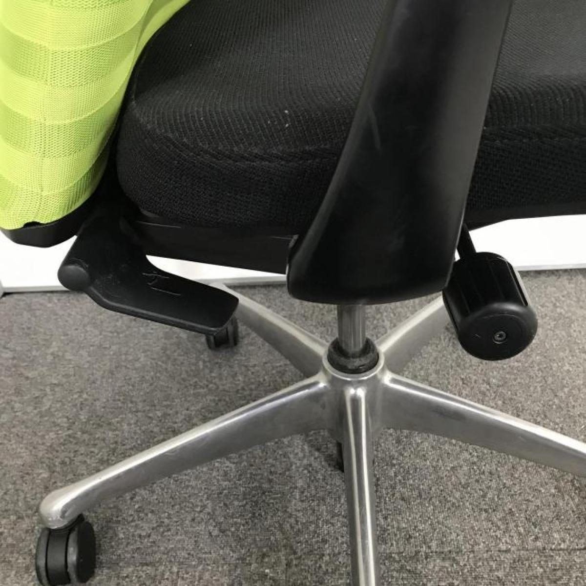 【快適な座り心地で作業効率アップ!】■オカムラ フィーゴチェア 可動肘付 シームレスタイプ ライムグリーン ハンガー付 ※肘に擦れ・削れ・欠けありのためお安く!