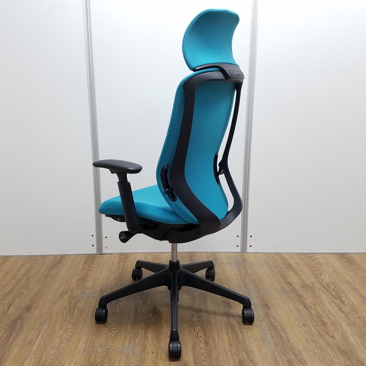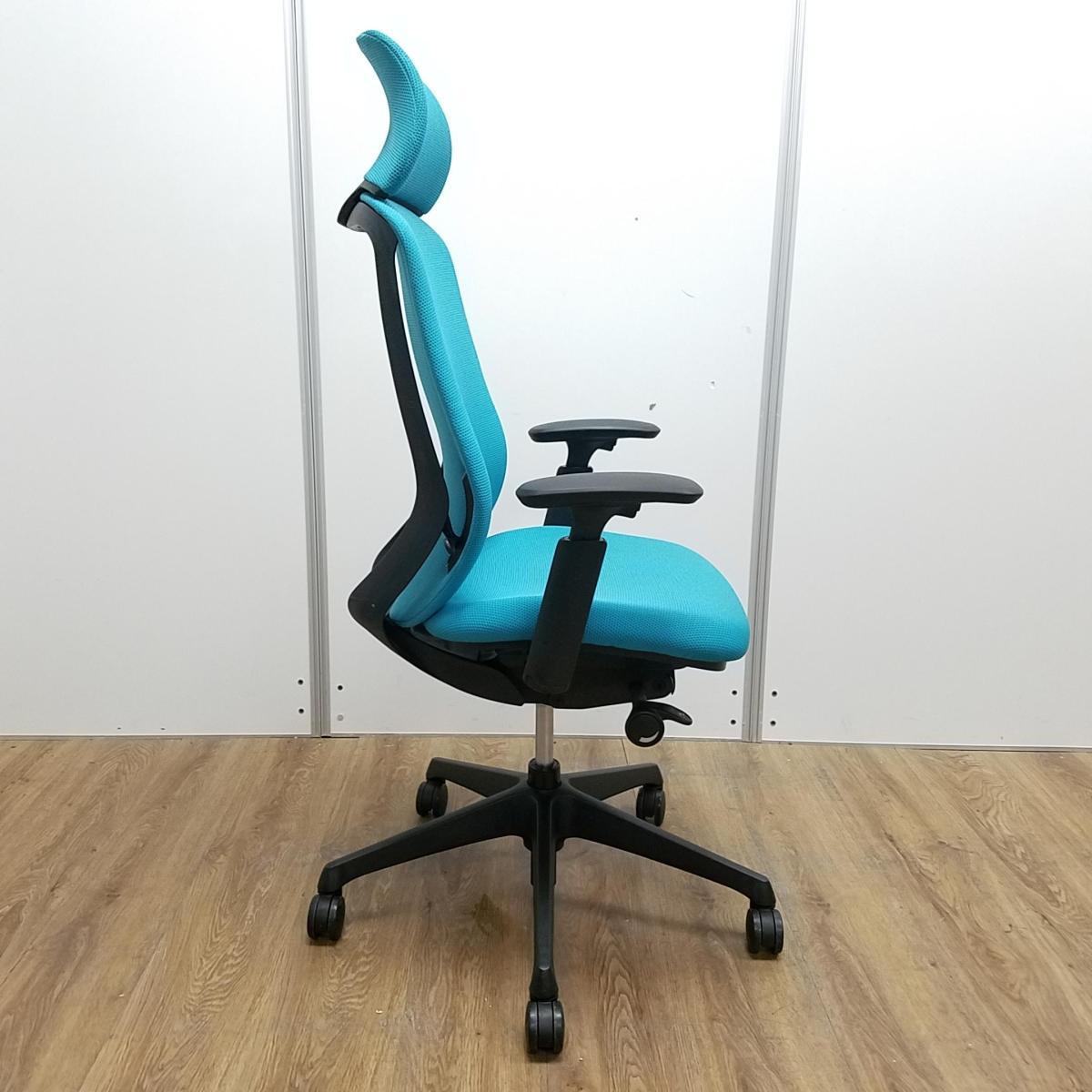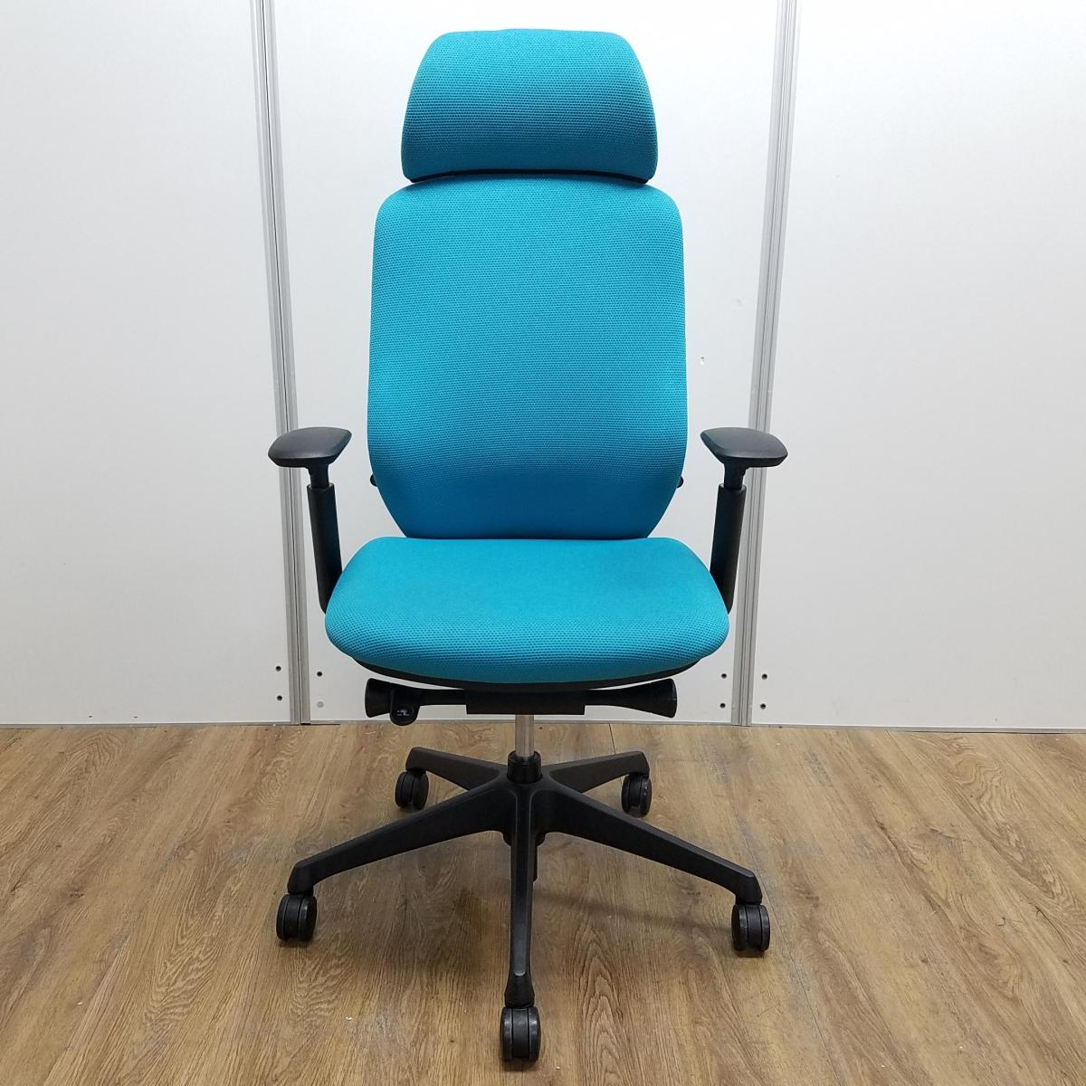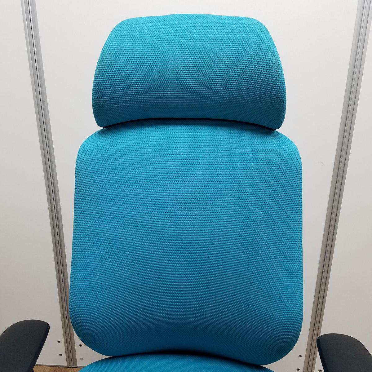 オカムラ製 シルフィーシリーズ ブルーグリーン ヘッドレスト アジャスタブル※可動肘 樹脂脚 肘付きハイバックチチェア!!- 京都東寺店