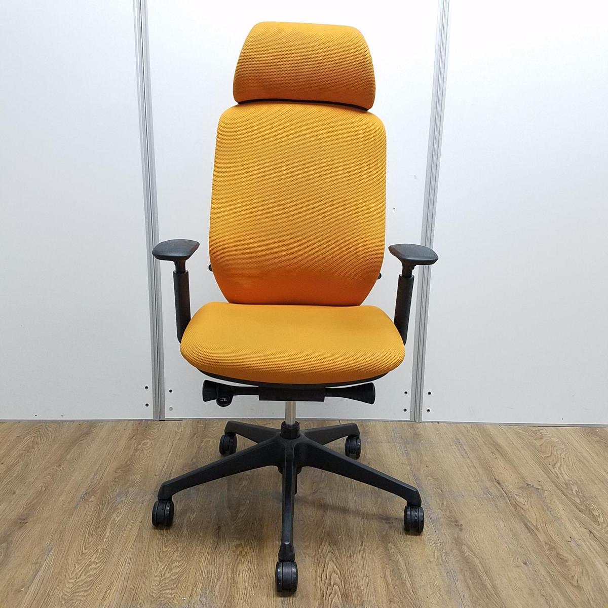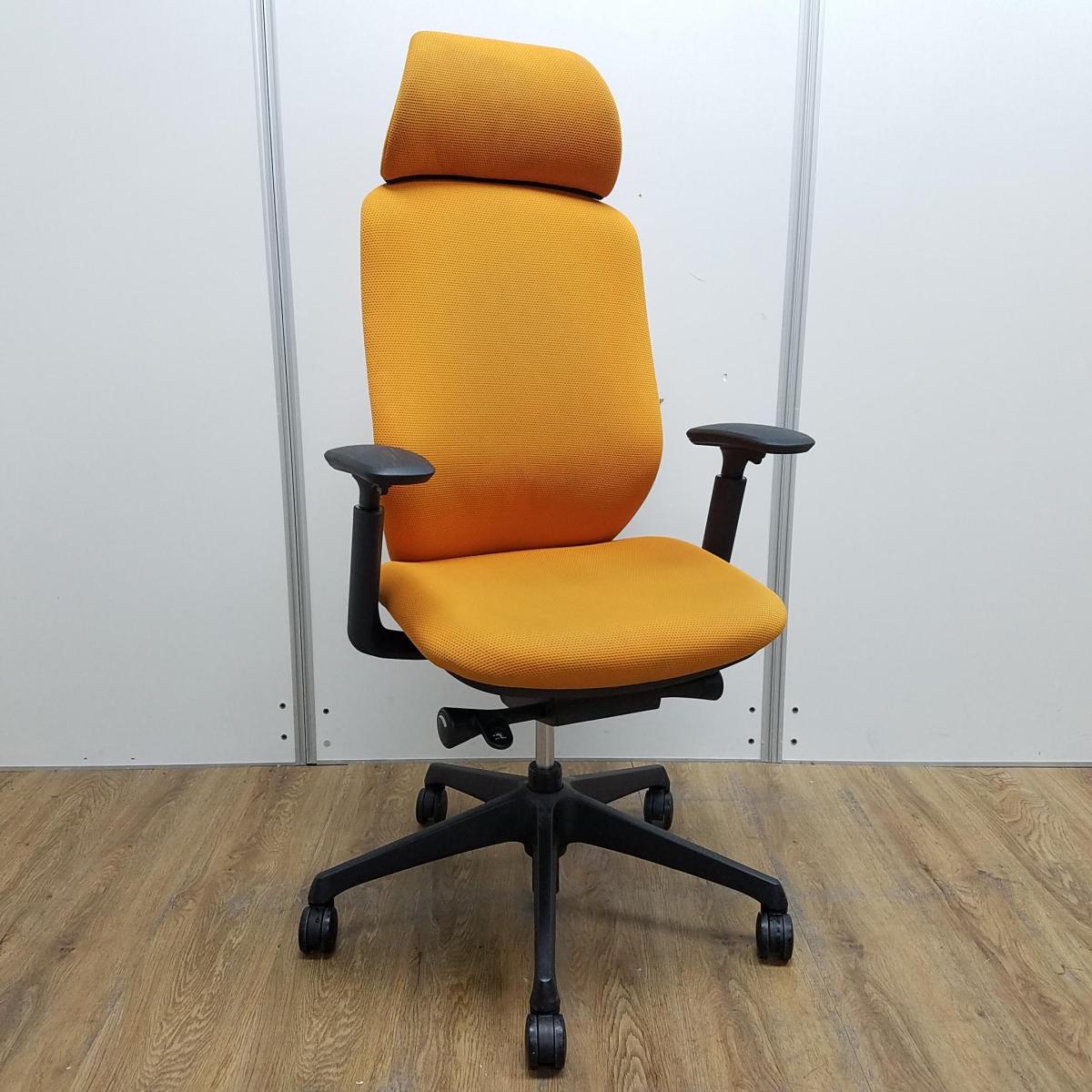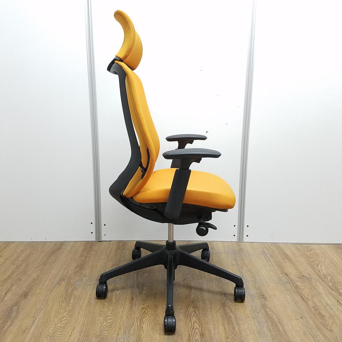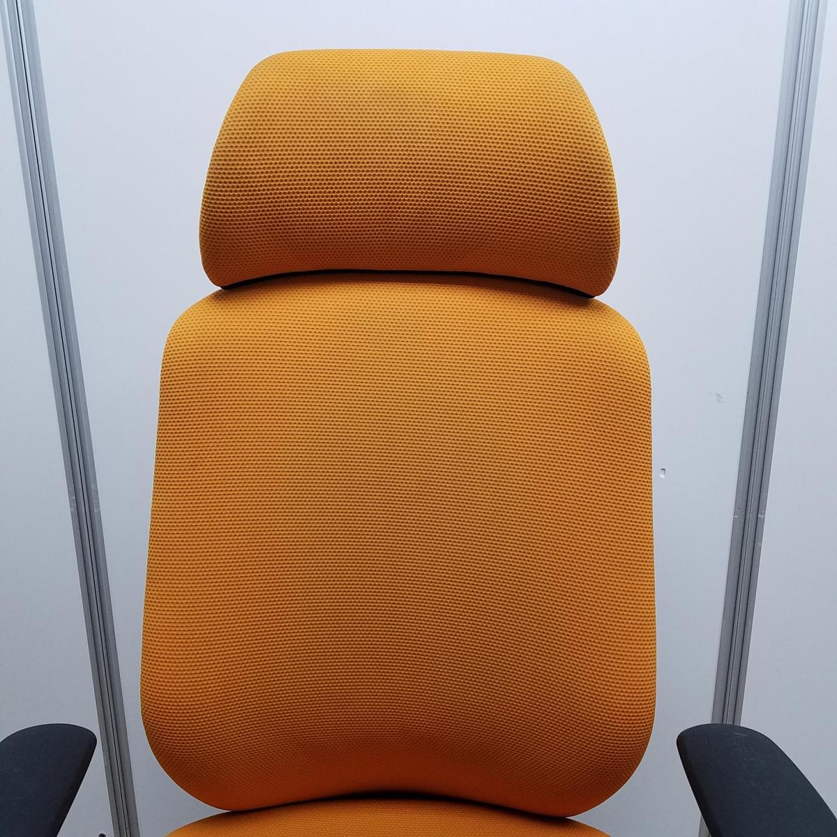 オカムラ製 シルフィーシリーズ オレンジ 背もたれクロス ヘッドレスト アジャスタブル※可動肘 樹脂脚 肘付きハイバックチチェア!!- 京都東寺店
