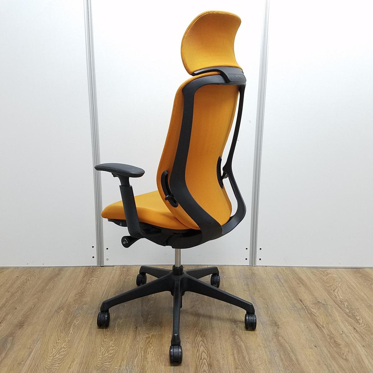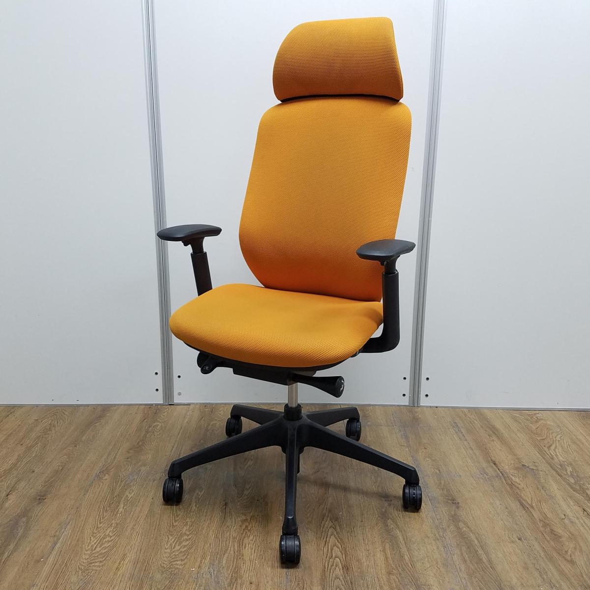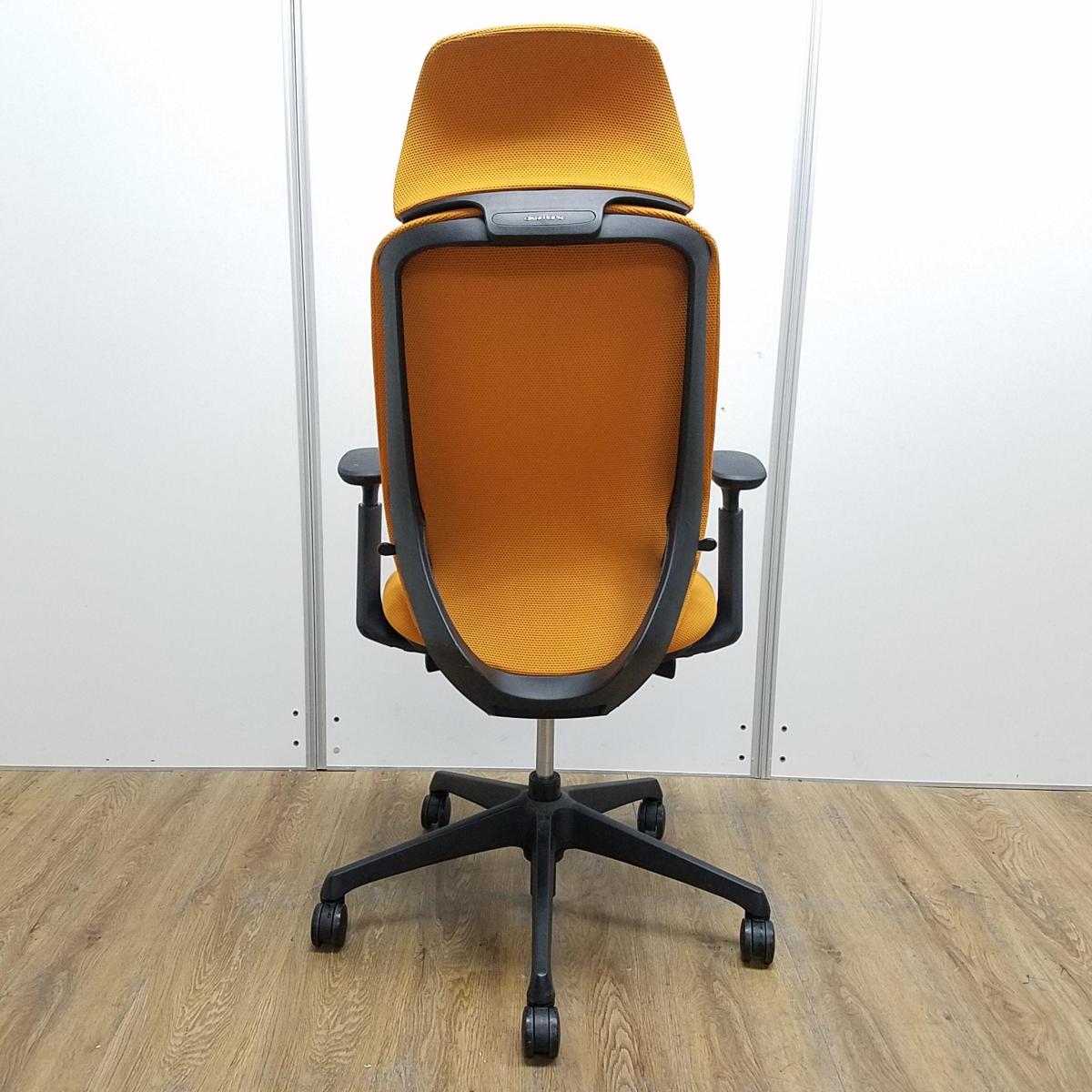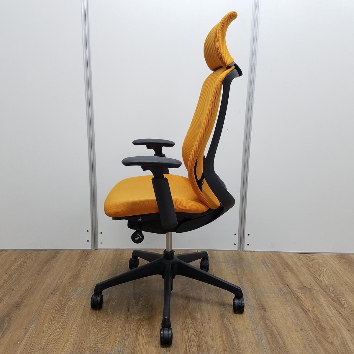 オカムラ製 シルフィーシリーズ オレンジ 背もたれクロス ヘッドレスト アジャスタブル※可動肘 樹脂脚 肘付きハイバックチチェア!!- 京都東寺店
