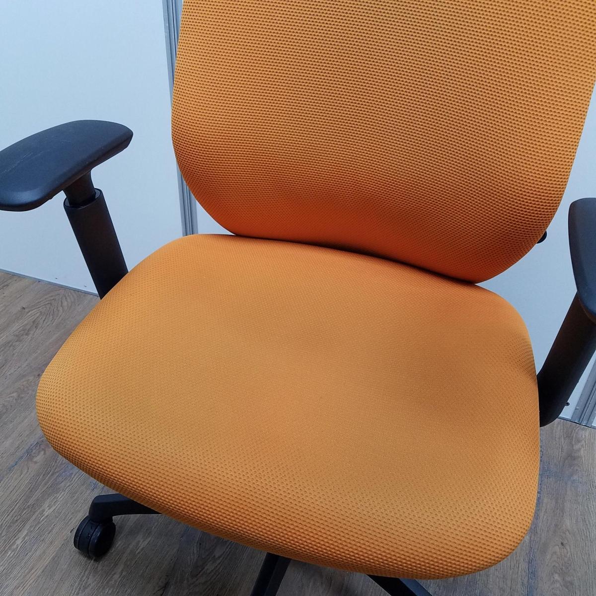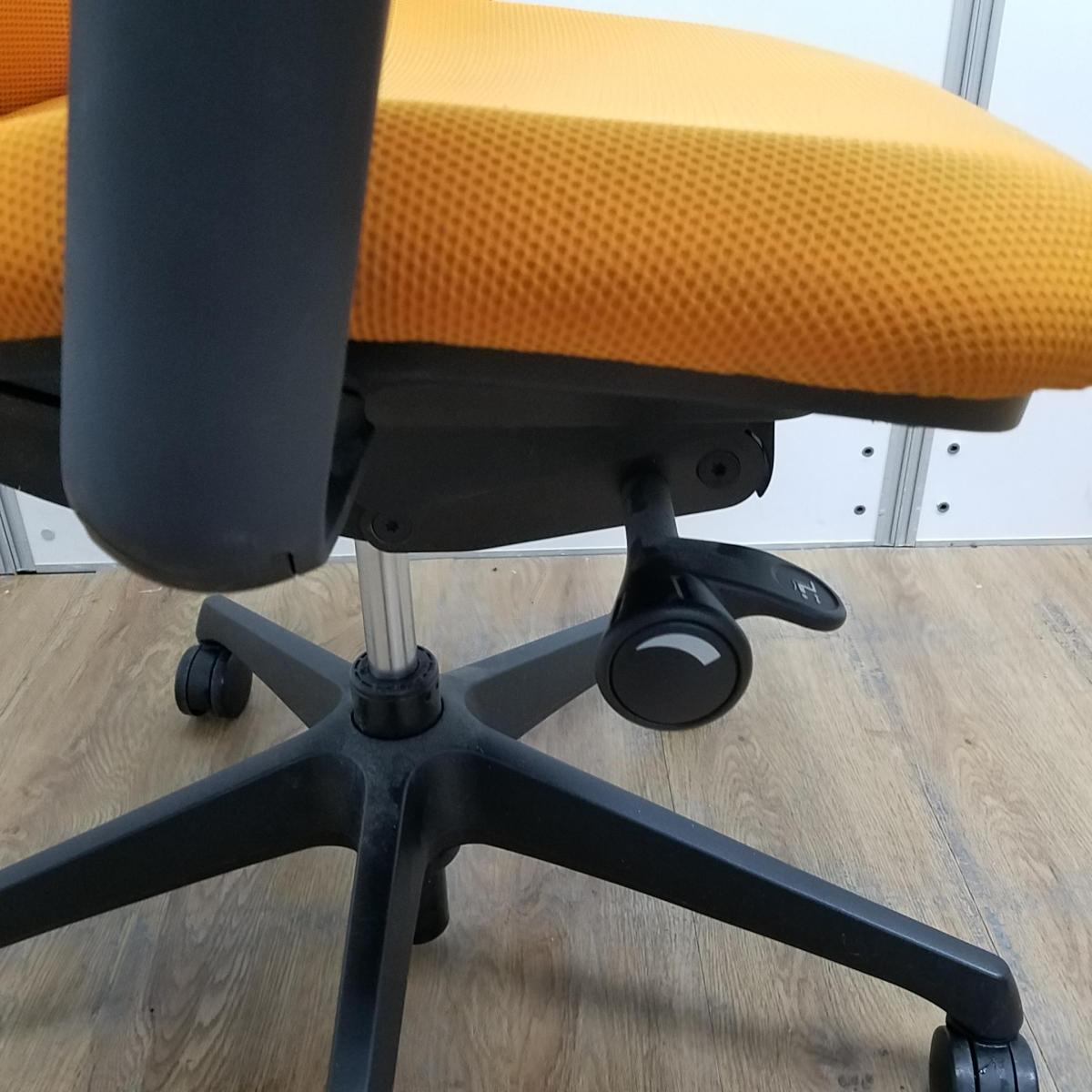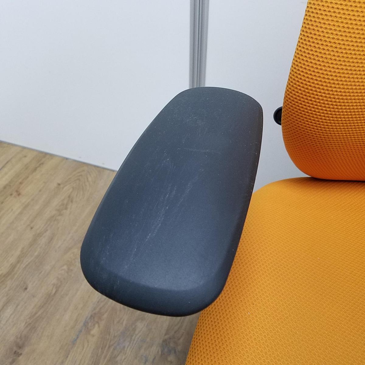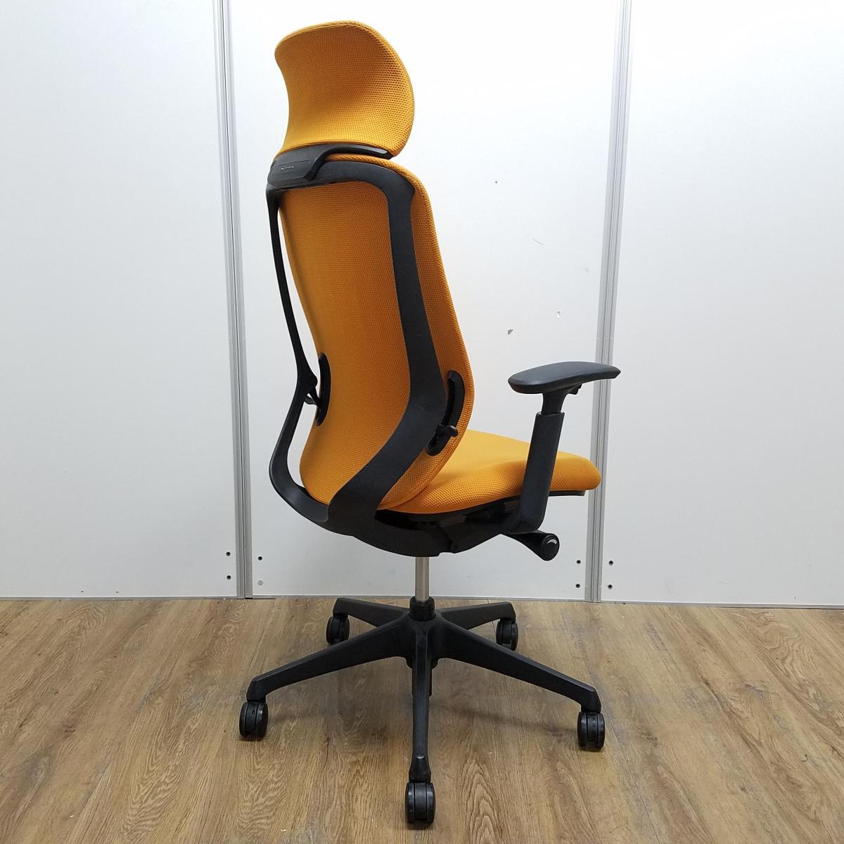 オカムラ製 シルフィーシリーズ オレンジ 背もたれクロス ヘッドレスト アジャスタブル※可動肘 樹脂脚 肘付きハイバックチチェア!!- 京都東寺店