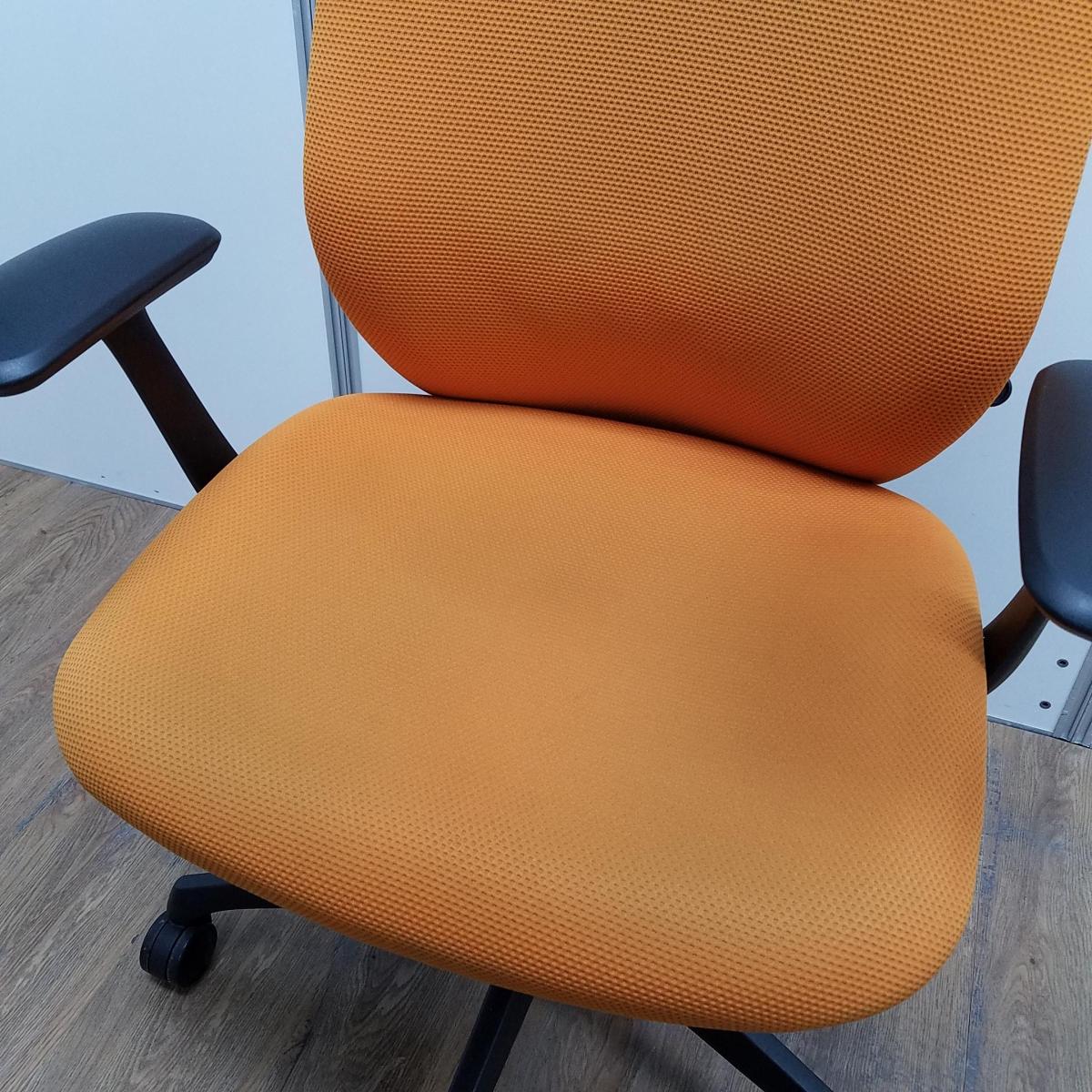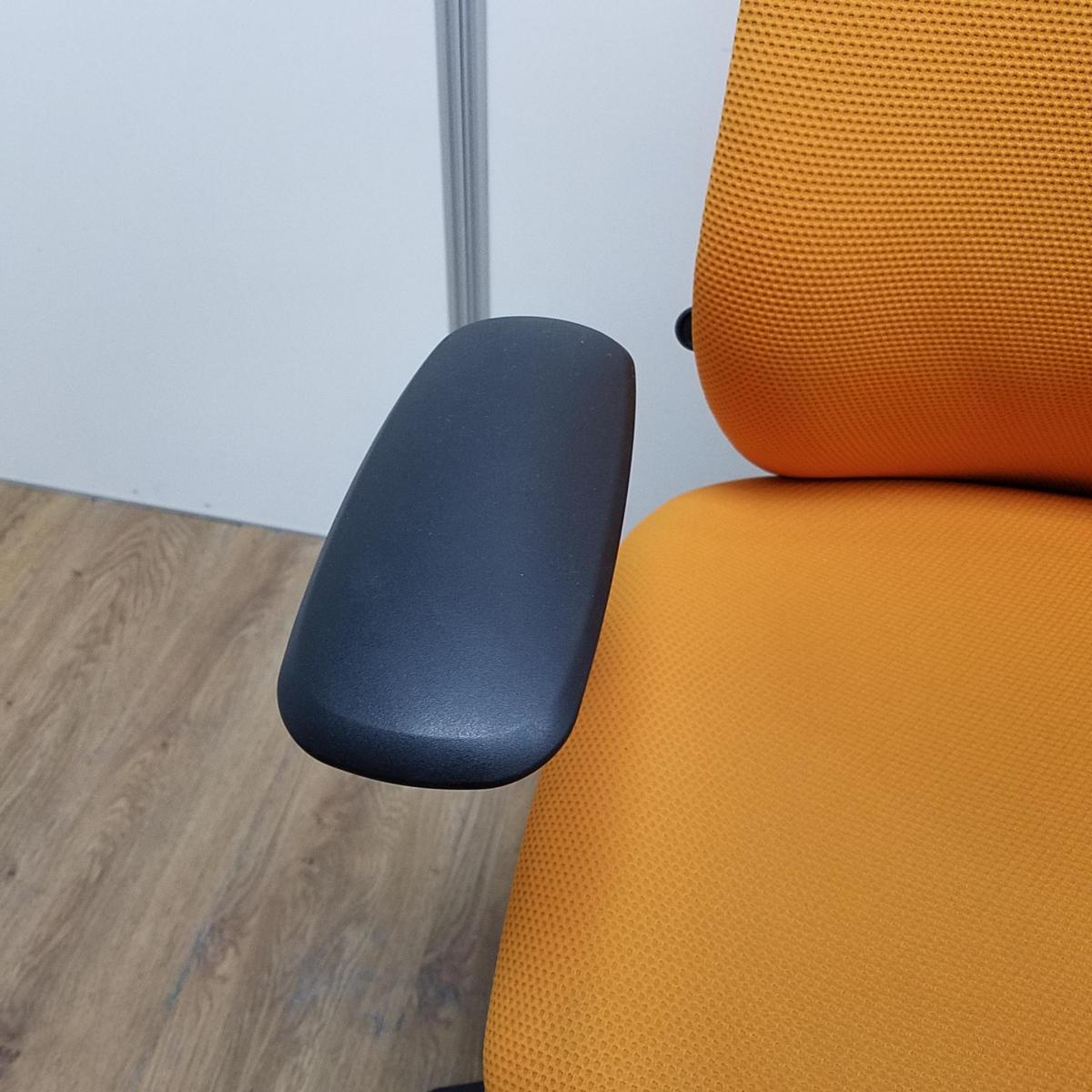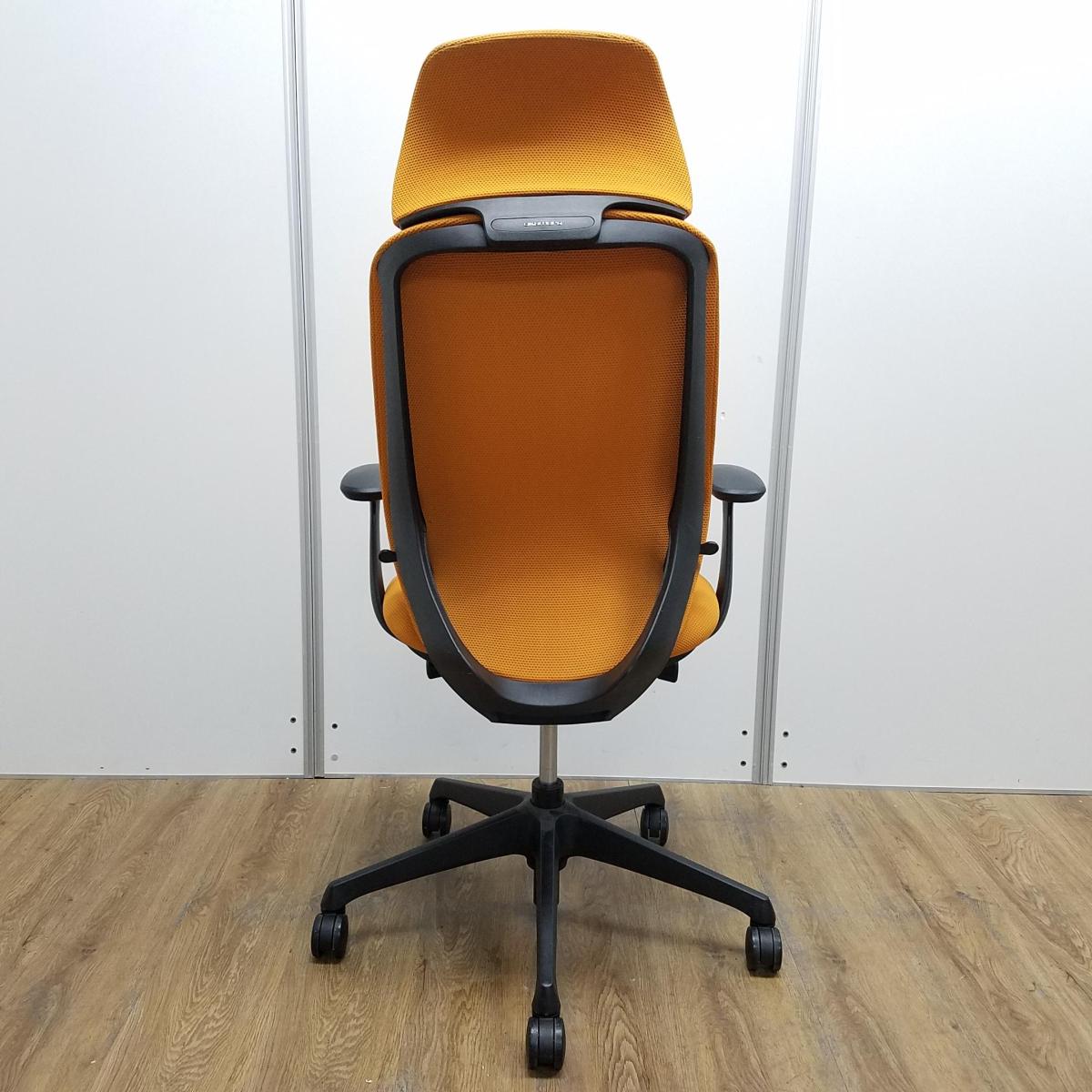 【商品入替のため、残り1脚限り】オカムラ製 シルフィーシリーズ オレンジ ヘッドレスト デザインアーム※固定肘 樹脂脚 肘付きハイバックチチェア!!- 京都東寺店