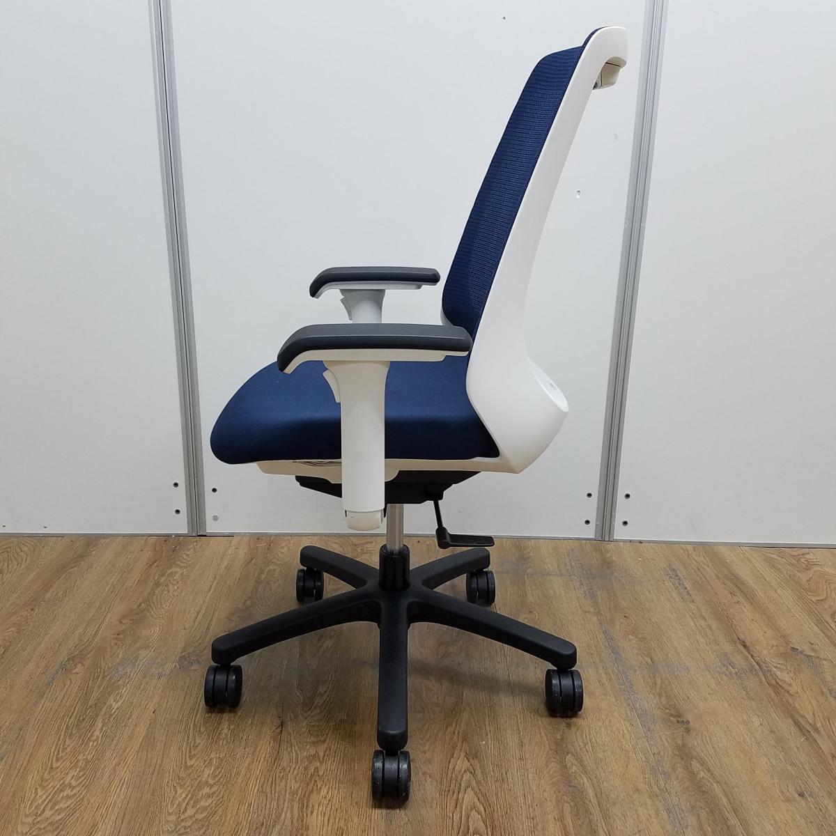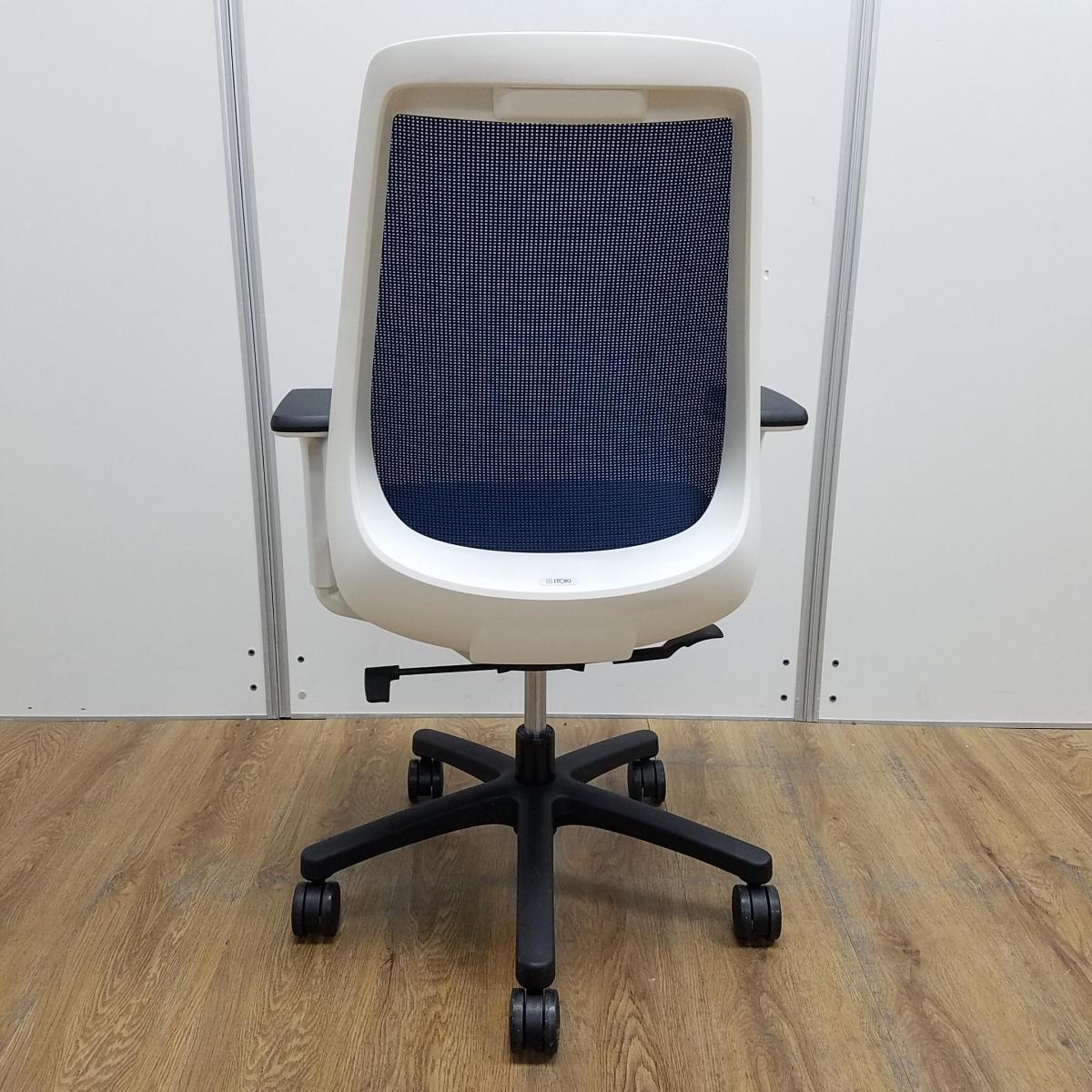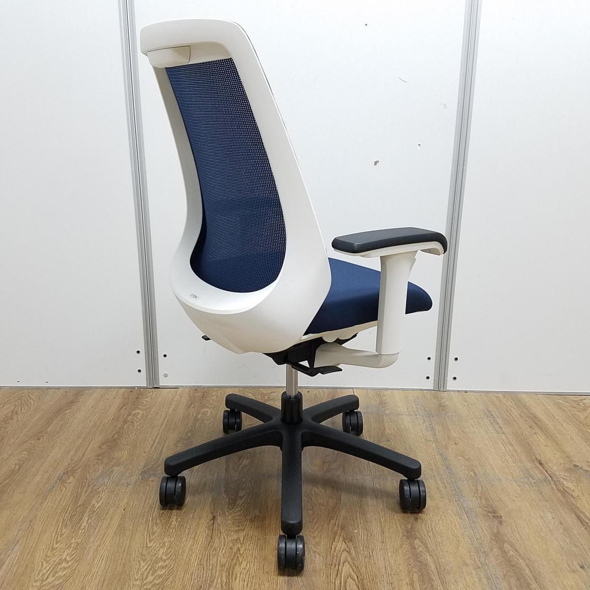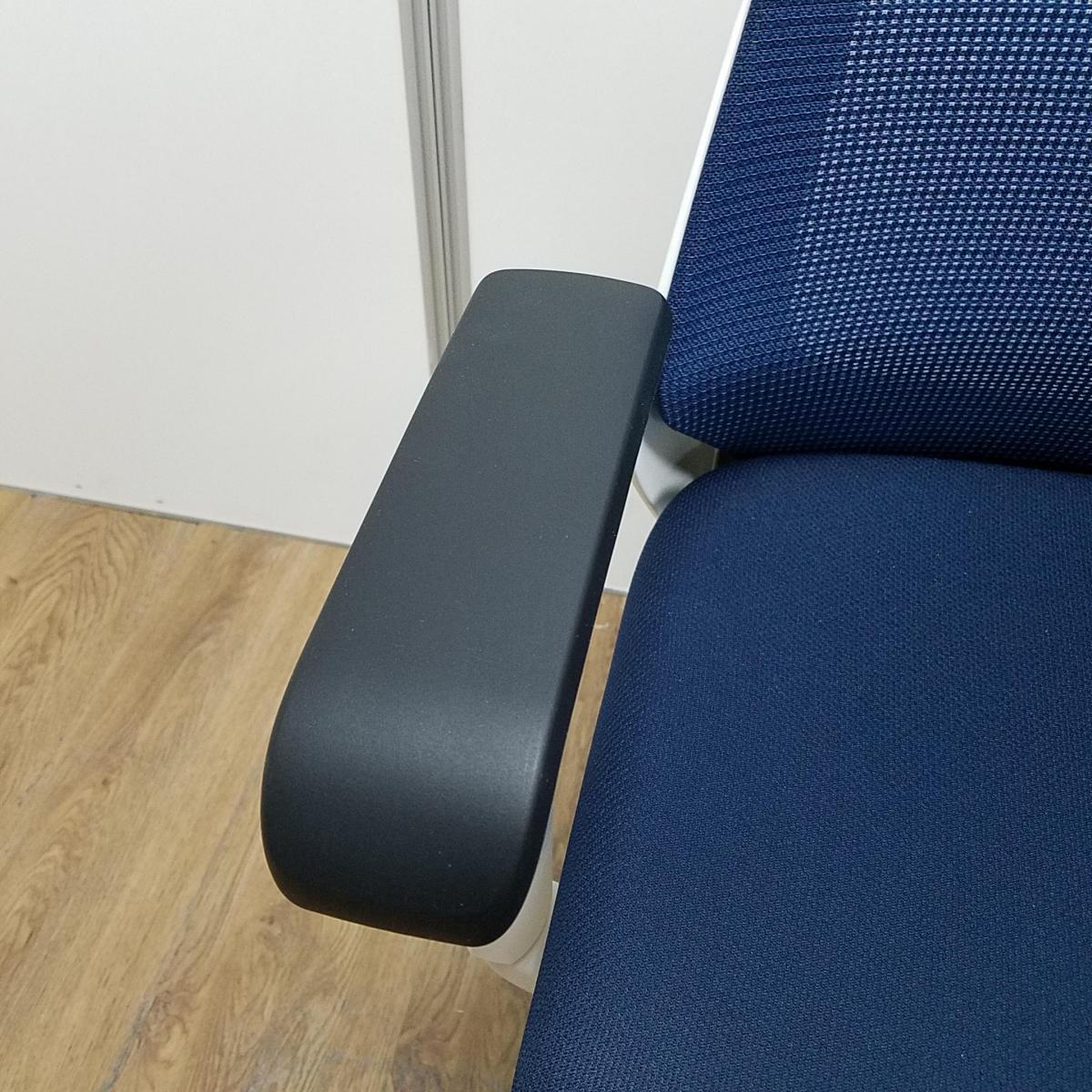 イトーキ製 ノナシリーズェア ネイビーブルー 可動肘 背面メッシュ ホワイトフレーム 座りやすくてコンパクト! 肩回りが動かしやすい背面メッシュの人気チェア! 肘付きハイバックチェア!!- 京都東寺店