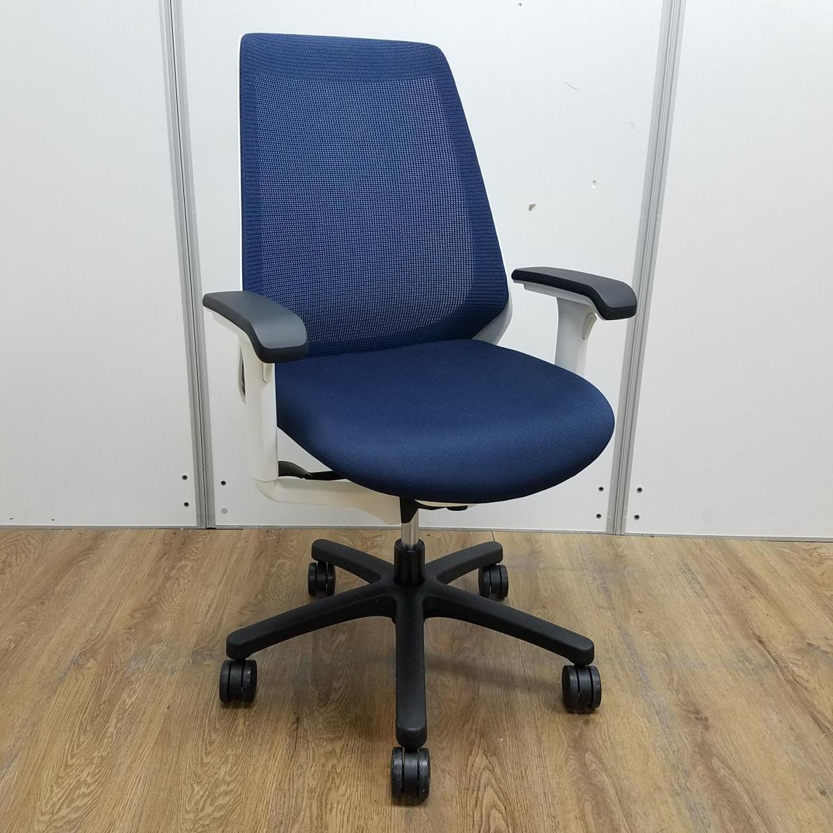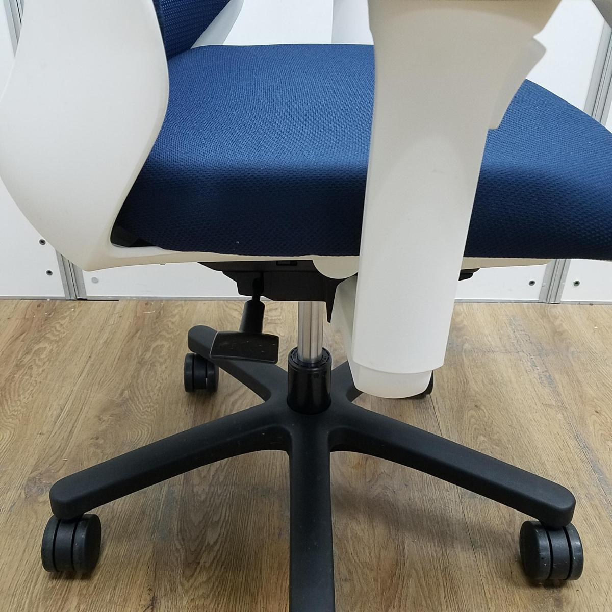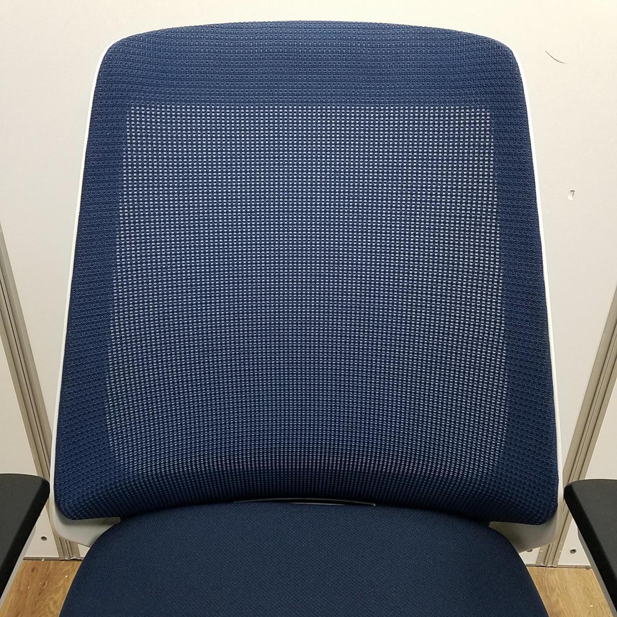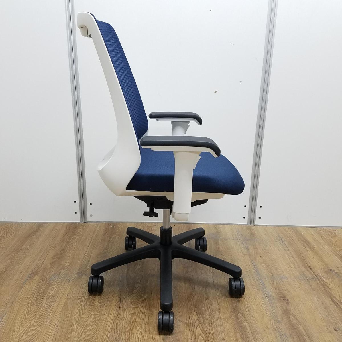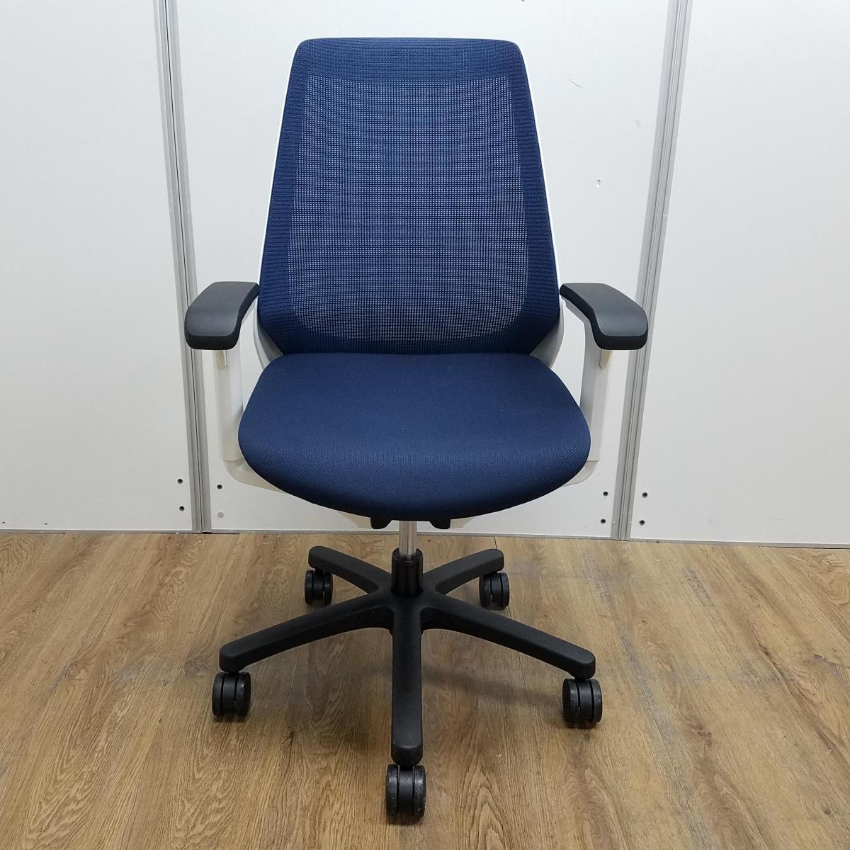 イトーキ製 ノナシリーズェア ネイビーブルー 可動肘 背面メッシュ ホワイトフレーム 座りやすくてコンパクト! 肩回りが動かしやすい背面メッシュの人気チェア! 肘付きハイバックチェア!!- 京都東寺店