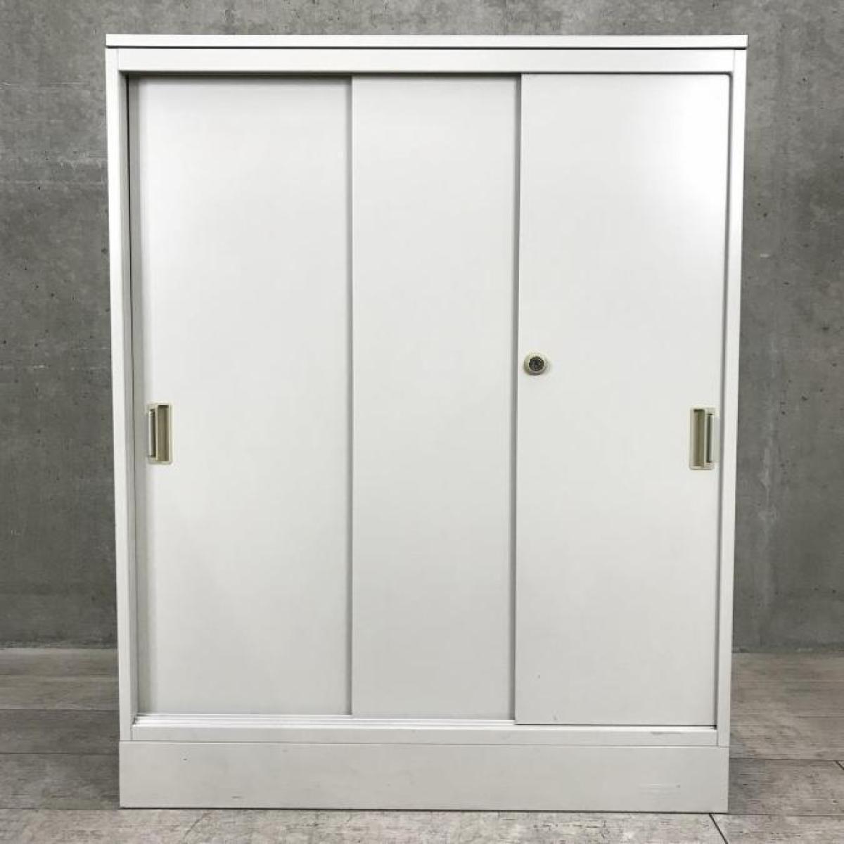 【在庫セール品】【定価約9万円】【引き違いだから扉の開閉スペースの心配なし!狭い空間にも設置が可能!】■オカムラ(okamura) 42ストレージシリーズ ローキャビネット 引き違い 3枚扉 ■グレー ■シリンダー錠 ■天板/ベース付き