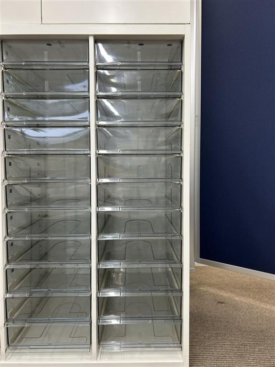 オカムラ製 レクトラインシリーズ 引戸/3列11段深型クリスタルトレーが入荷いたしました!!