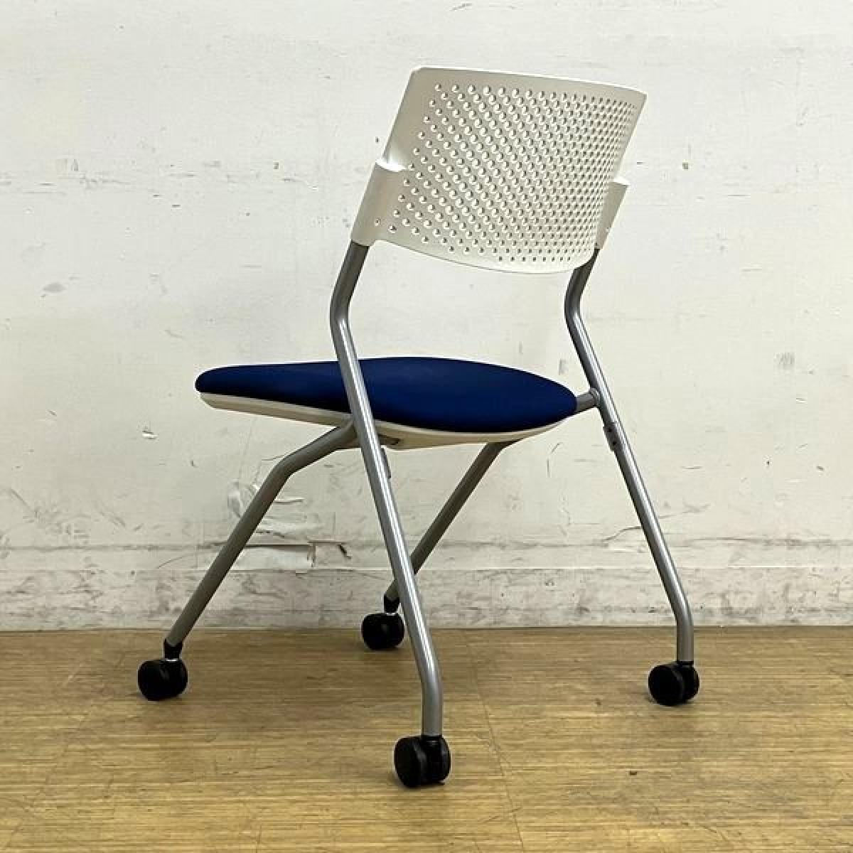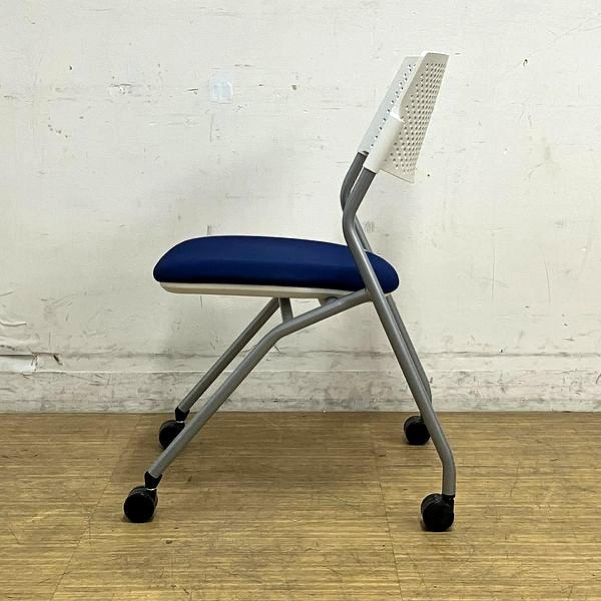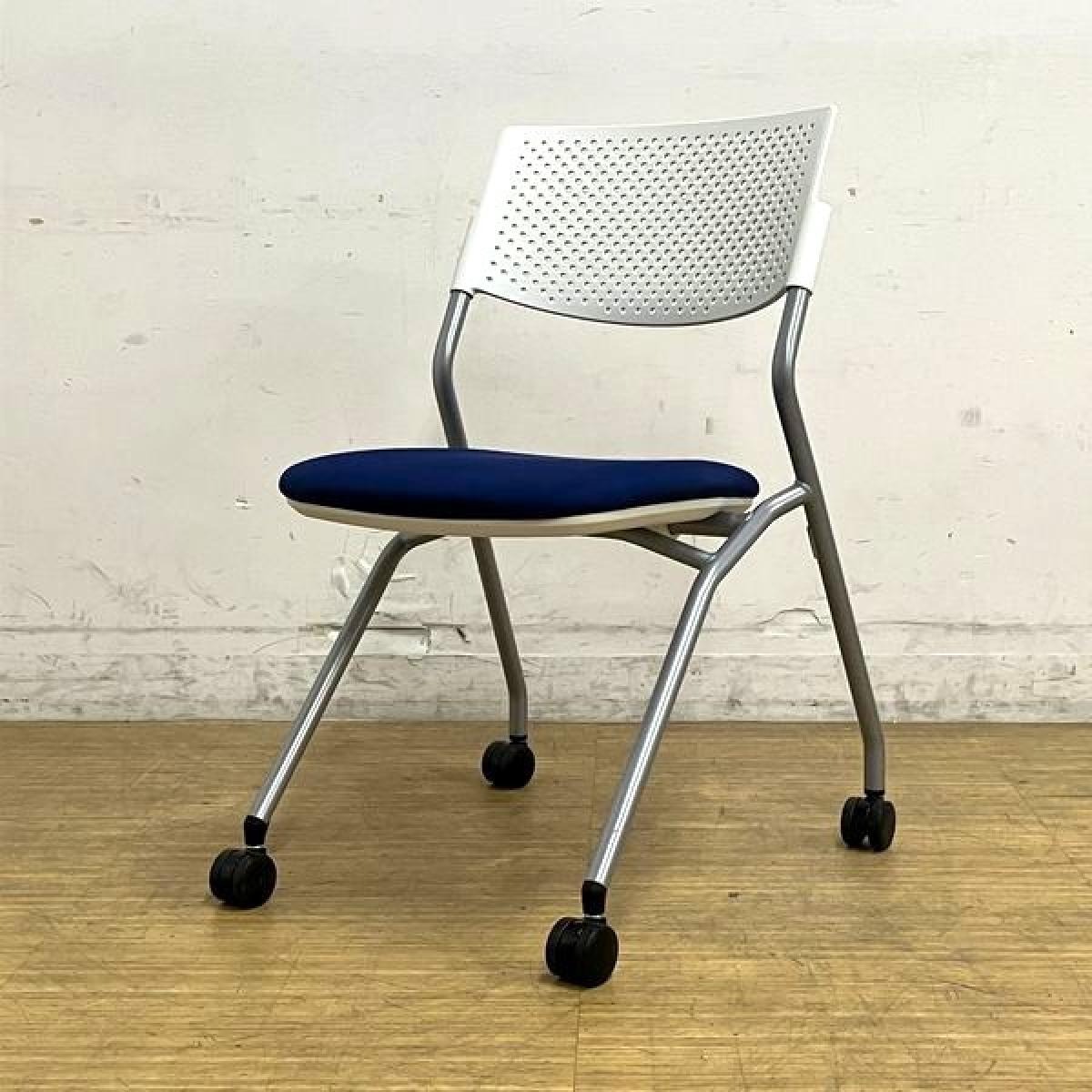 【6脚限定】【在庫入替品】【スタイリッシュなネスティングチェア!シンプルデザインで様々なミーティングシーンにぴったりフィット!】■ウチダ(UCHIDA)製 FM265 ネスティングチェア ■座面ブルー×ホワイト背面 ■キャスター付 ■背面樹脂メッシュ オフィスバスターズ 梅田本店【T9】