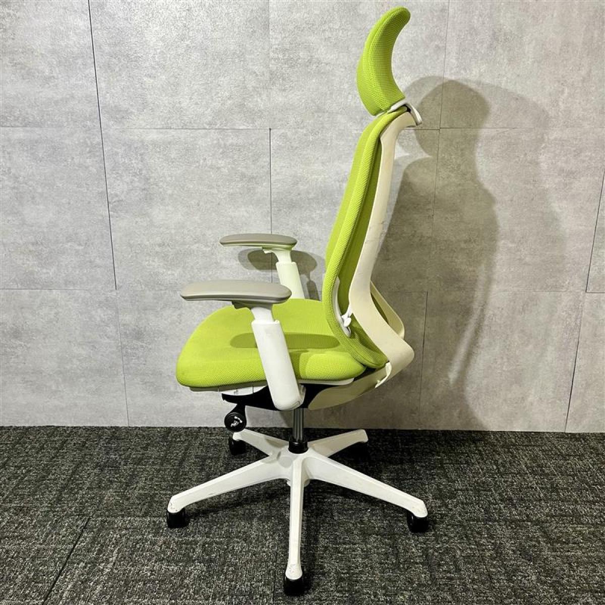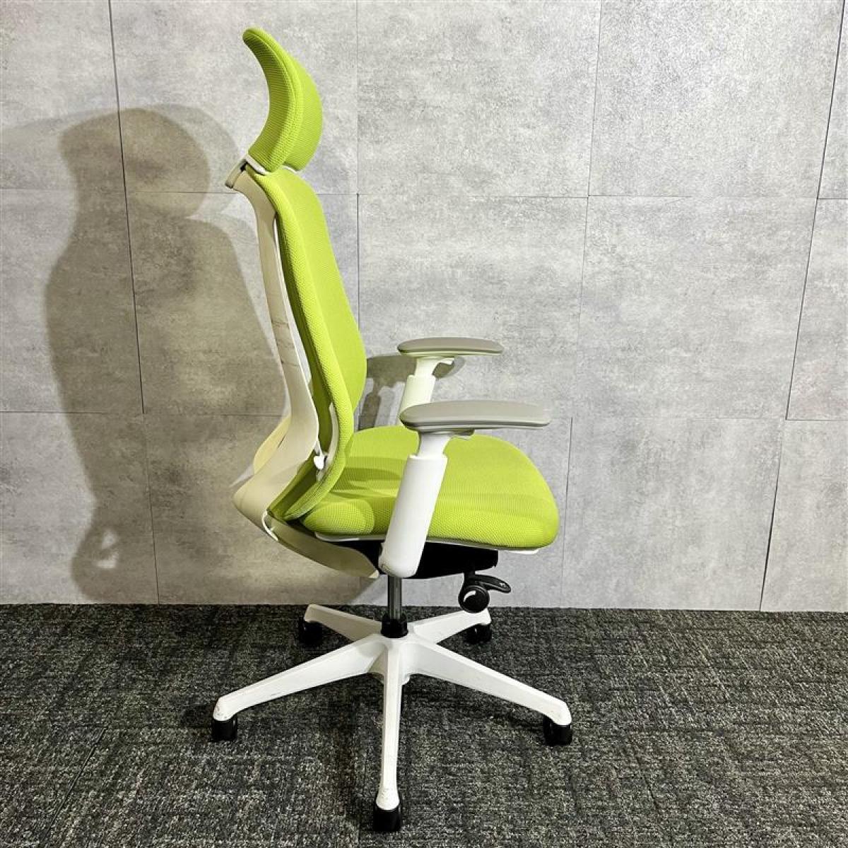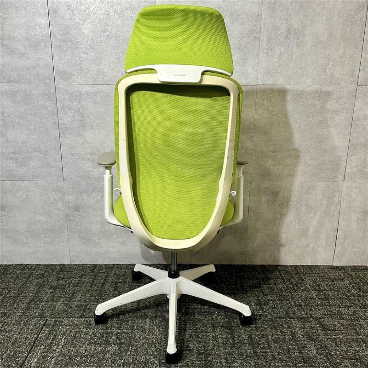 【ワーカーを支える機能を多数持つ人気チェア!優しい座り込みで姿勢も安定!】■オカムラ製 シルフィー 肘付ハイバックチェア 背面メッシュ ■可動肘 ■座面:ライムグリーン 脚:ホワイト オフィスバスターズ 東大阪店 2脚限定!