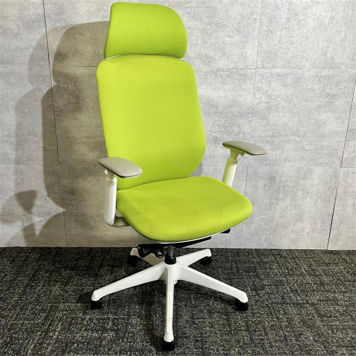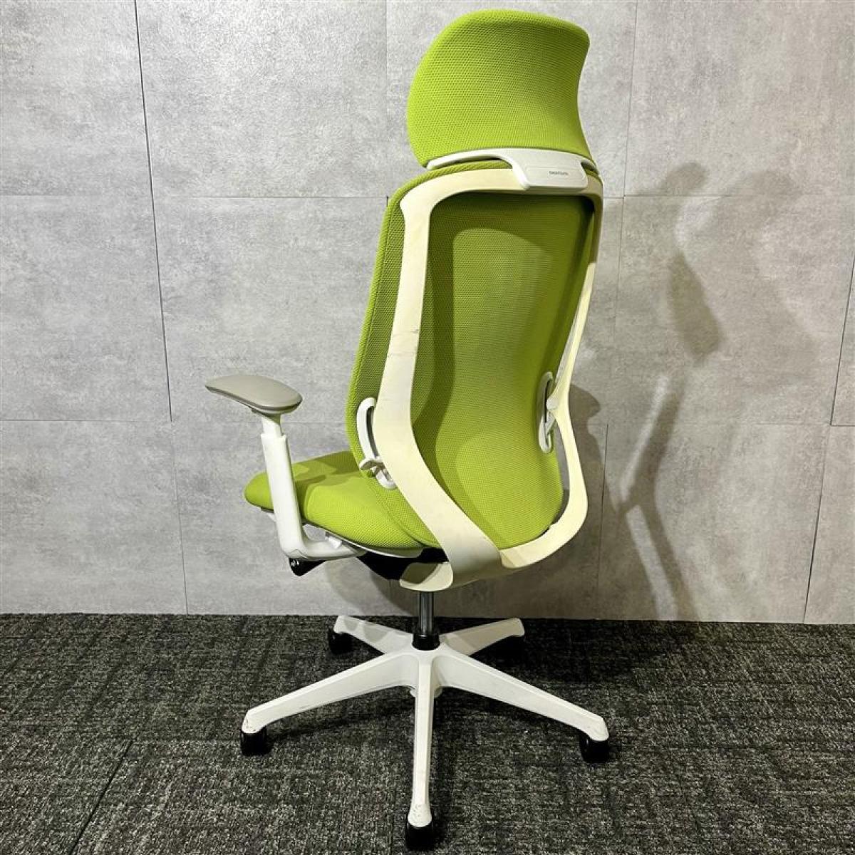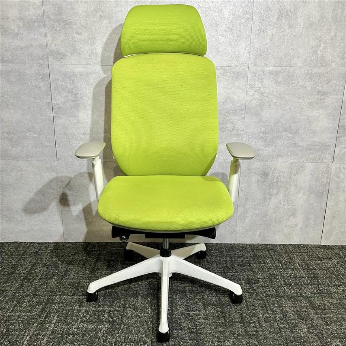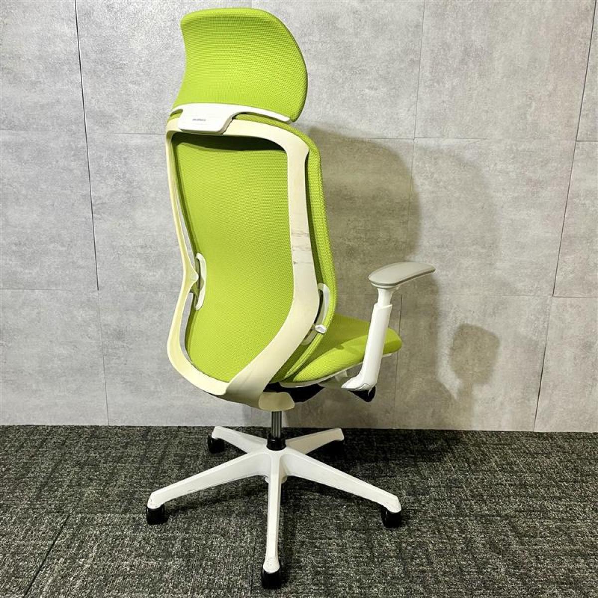 【ワーカーを支える機能を多数持つ人気チェア!優しい座り込みで姿勢も安定!】■オカムラ製 シルフィー 肘付ハイバックチェア 背面メッシュ ■可動肘 ■座面:ライムグリーン 脚:ホワイト オフィスバスターズ 東大阪店 2脚限定!