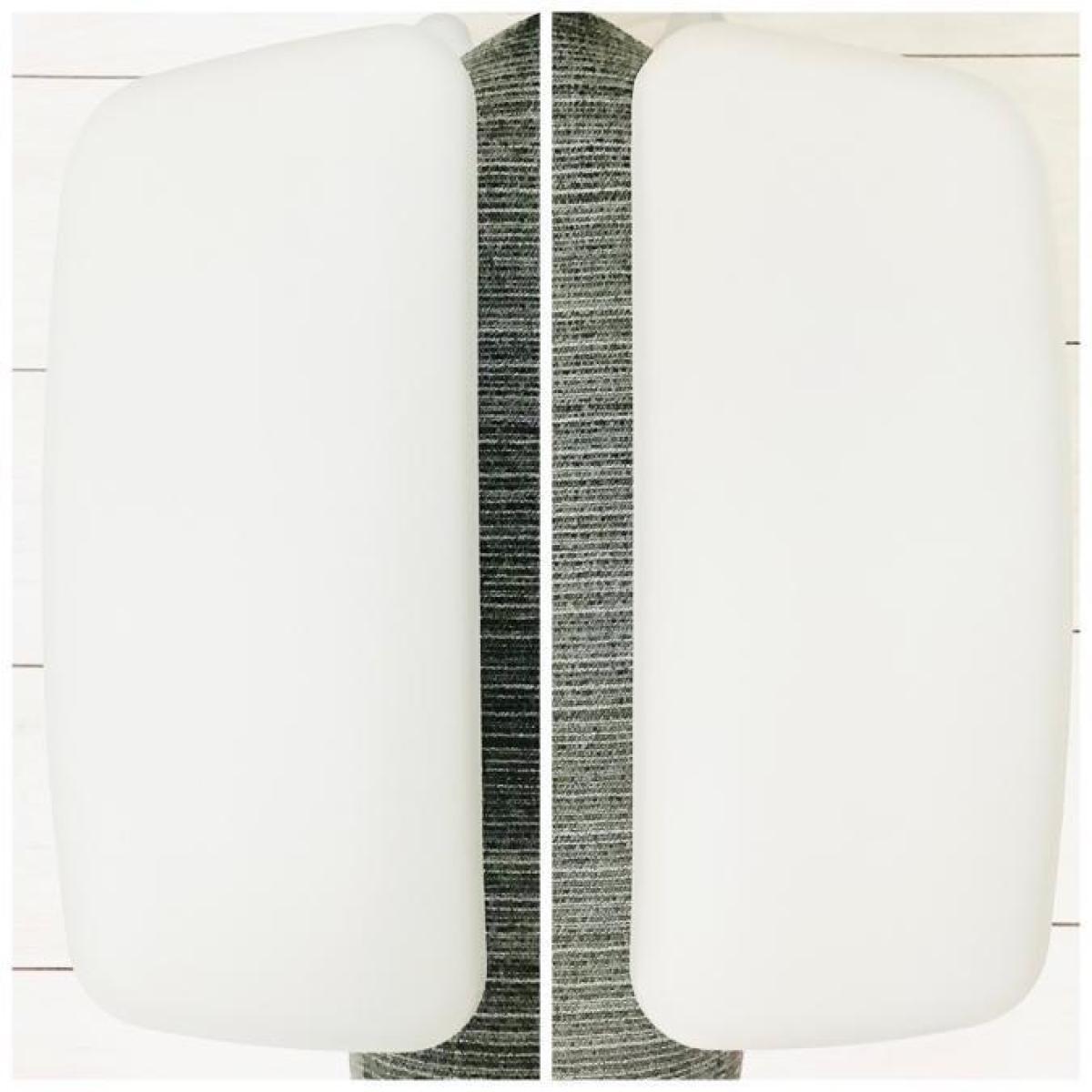 - かなり強い濃い黄ばみ・変色が商品全体にある。(例、座面・背もたれ、脚部等にある。)