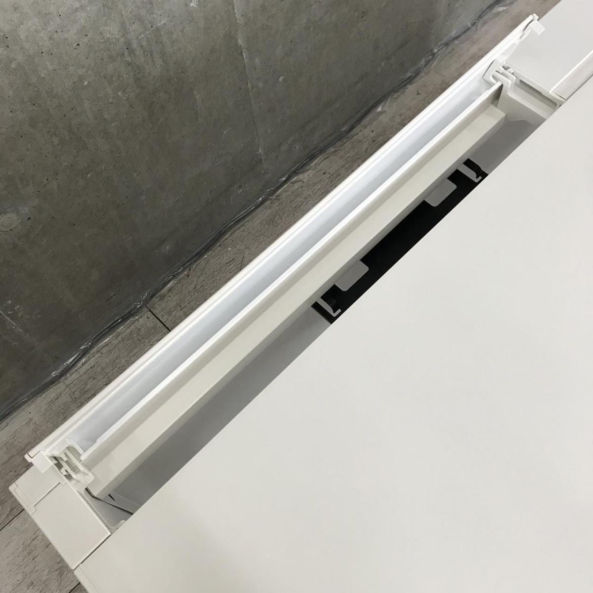 天板奥に一直線に通った大きな配線機能は、開閉カバーが2分割されており、