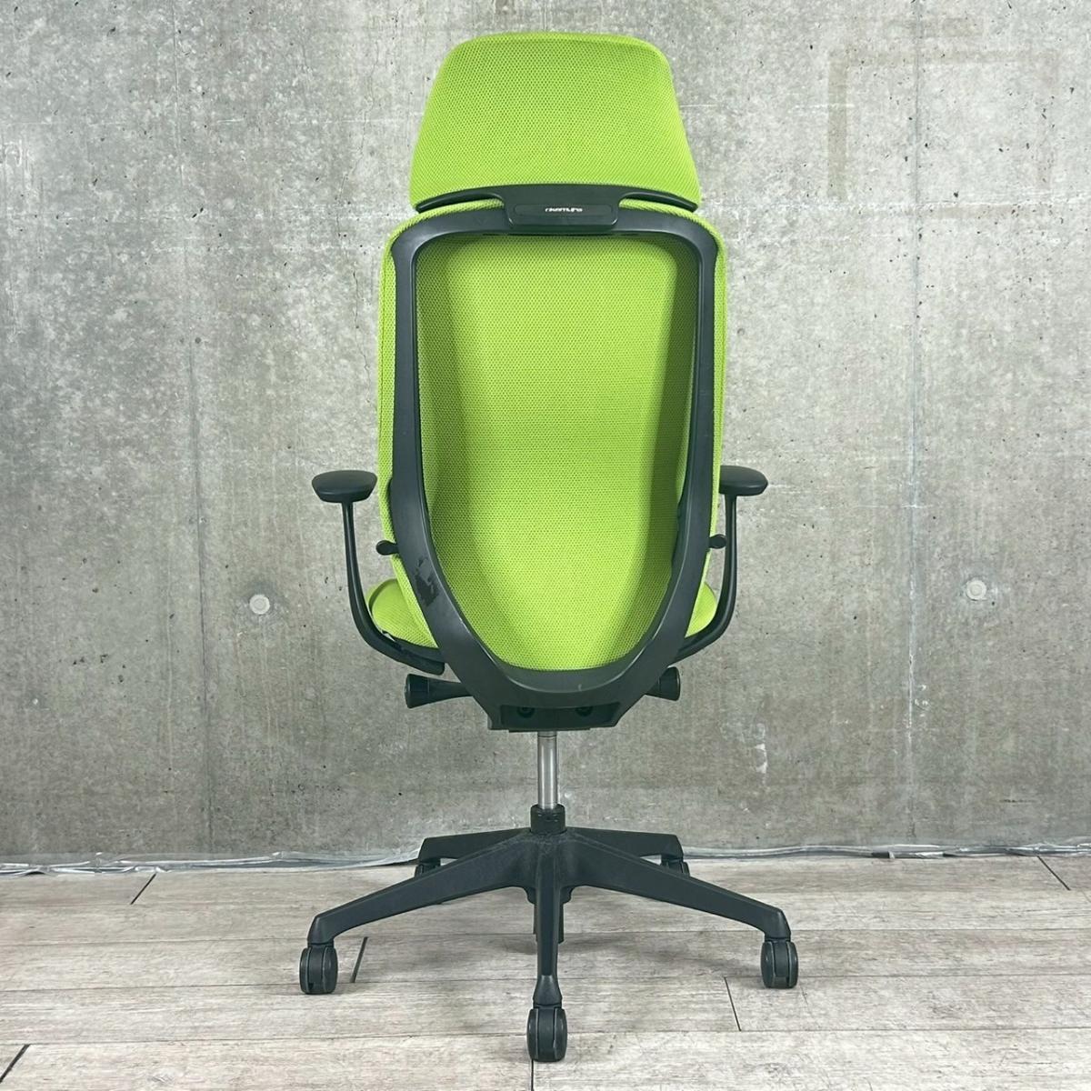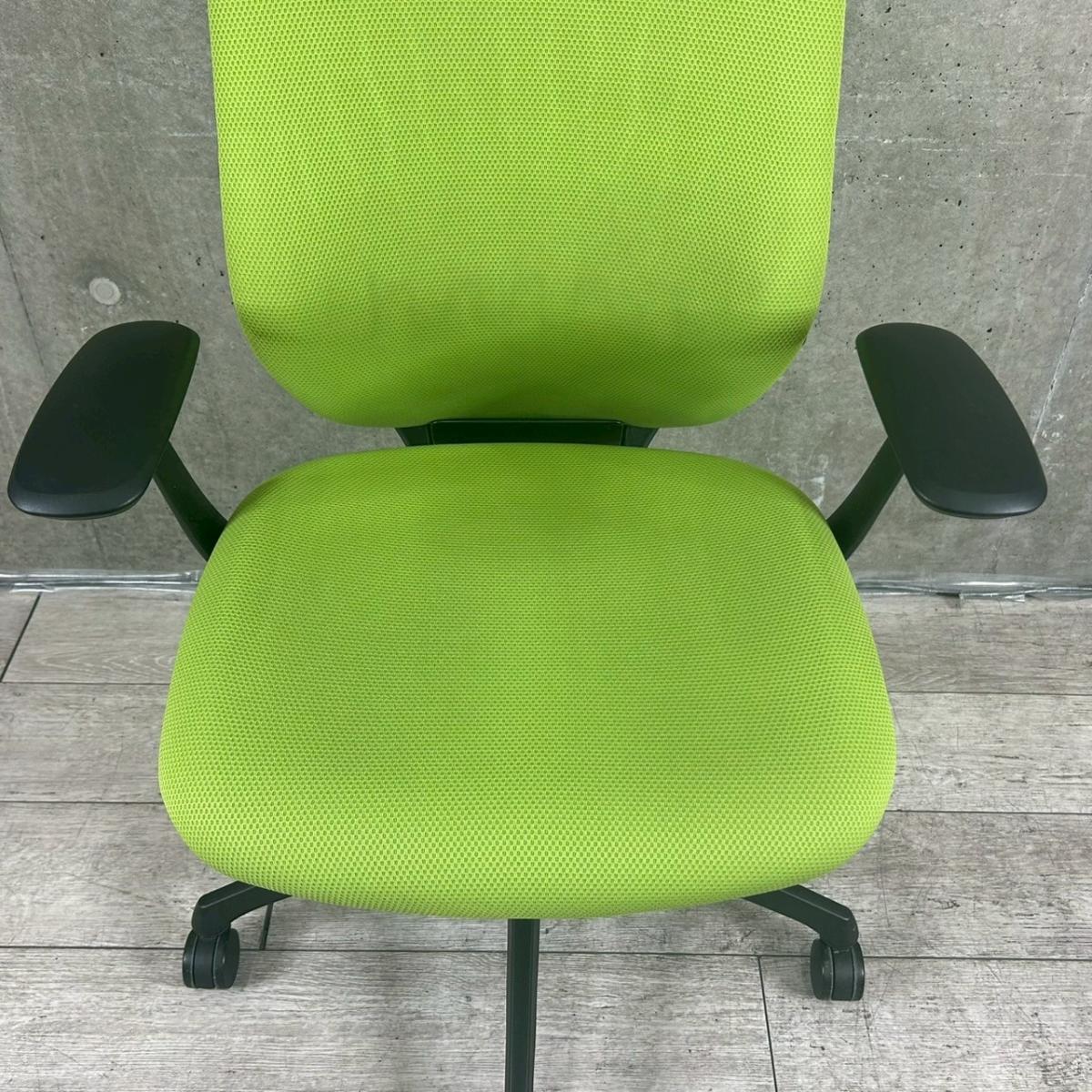 【大人気商品のヘッドレスト付きが入荷しました!】オカムラ(okamura)シルフィ(Sylphy)チェア 色:ライムグリーン ブラック(黒)フレーム エクストラハイバック(固定タイプ) 固定肘 ※ヘッドレスト部分によれが見受けられるのでランクB品としてご案内! 【管理番号:A01011453】サーキュラーバリューCO2削減量の算出について