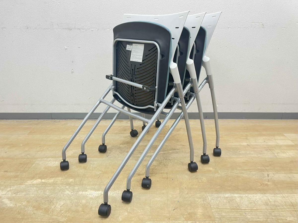【関東倉庫在庫品】【フレキシブルに使える!平行ネスティングで省スペース化!】■イトーキ(ITOKI)製 マノス(MANOSS) ネスティングチェア ミーティングチェア ■背パッド付 ■キャスター付 ■ブルー【弊社使用欄:A01014525】【ECBMC】